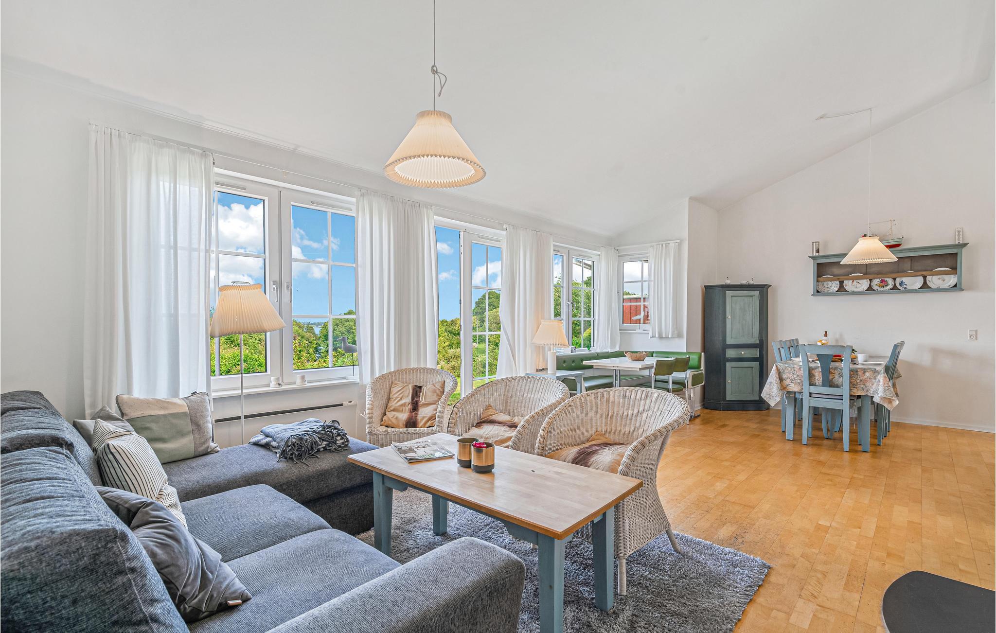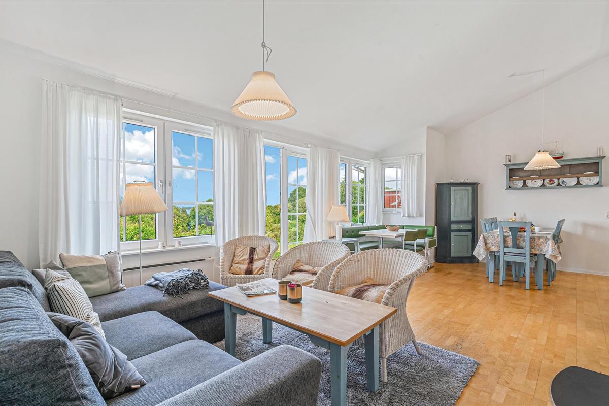 Op een charmante locatie aan het water heet dit ruime vakantiehuis je welkom. Het biedt een comfortabel ingericht interieur dat een heldere, smaakvolle indruk maakt en je de ideale omstandigheden voor rust en welzijn biedt. In de verschillende, gezellige zithoeken van de woonkamer zul je vele gezellige uren doorbrengen met je geliefden, of je nu geniet van een ontbijt met uitzicht op zee, ontspannende leesuurtjes doorbrengt voor de open haard of 's avonds samenkomt rond de lunchtafel. Vanuit de woonkamer stap je op het terras, waar je bij mooi weer buiten kunt eten.