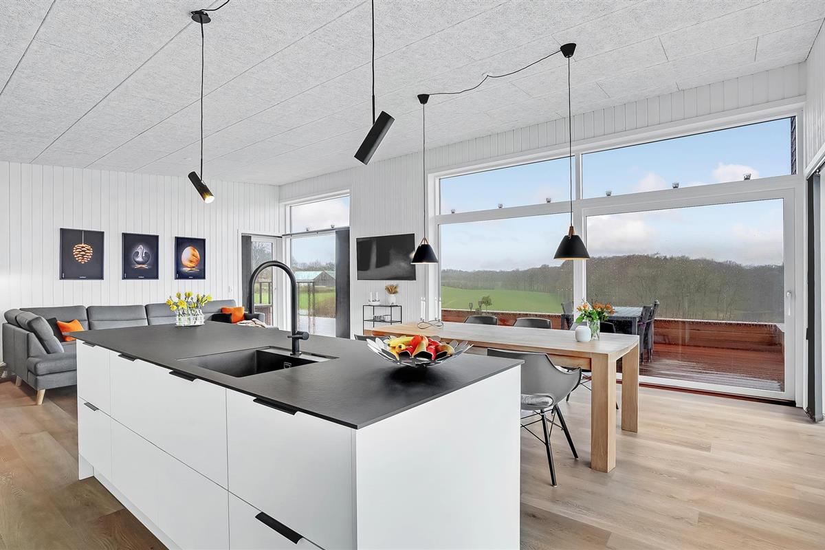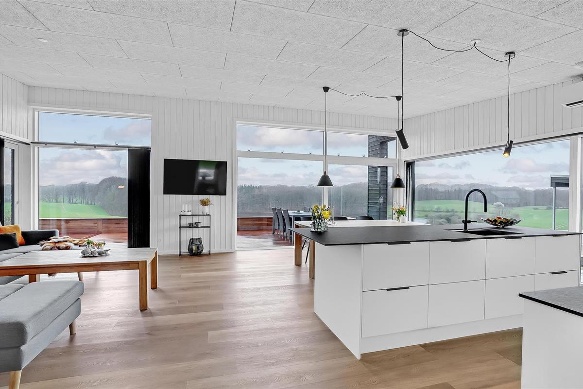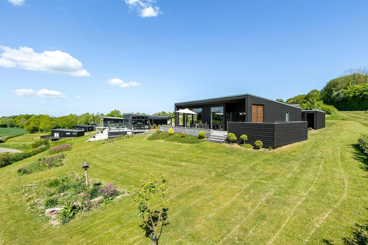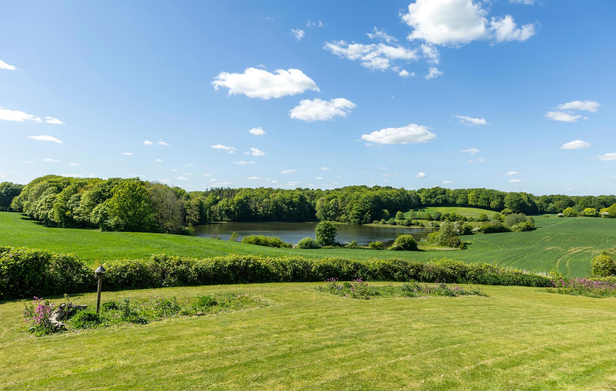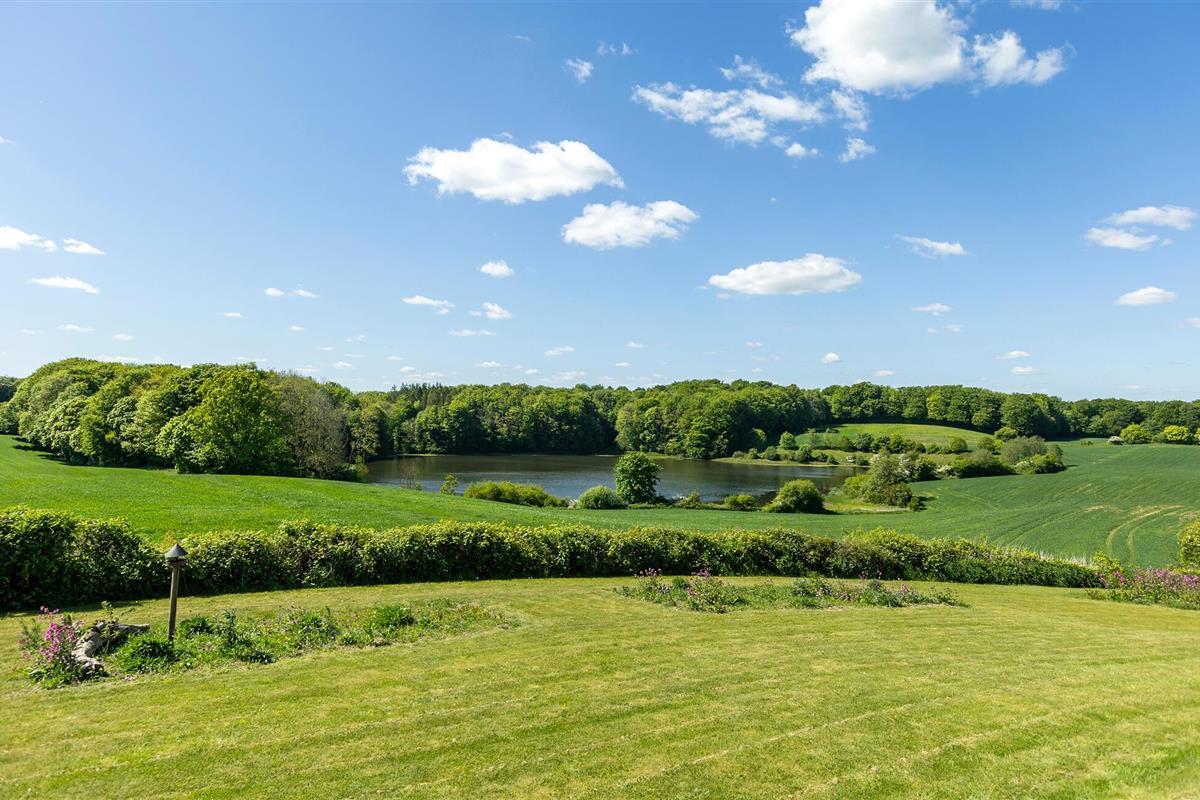Stijlvol vakantiehuis met panoramisch uitzicht op meer, bos en platteland in Aabenraa, Denemarken.