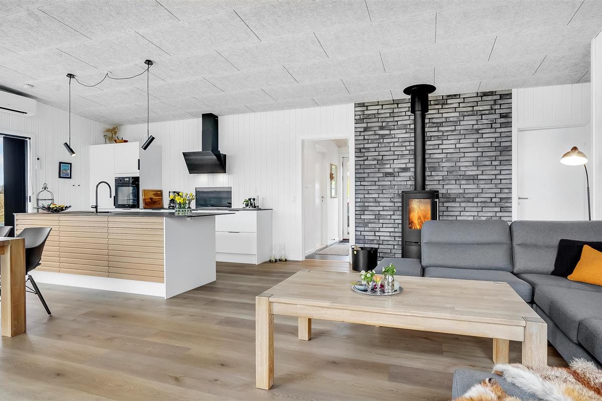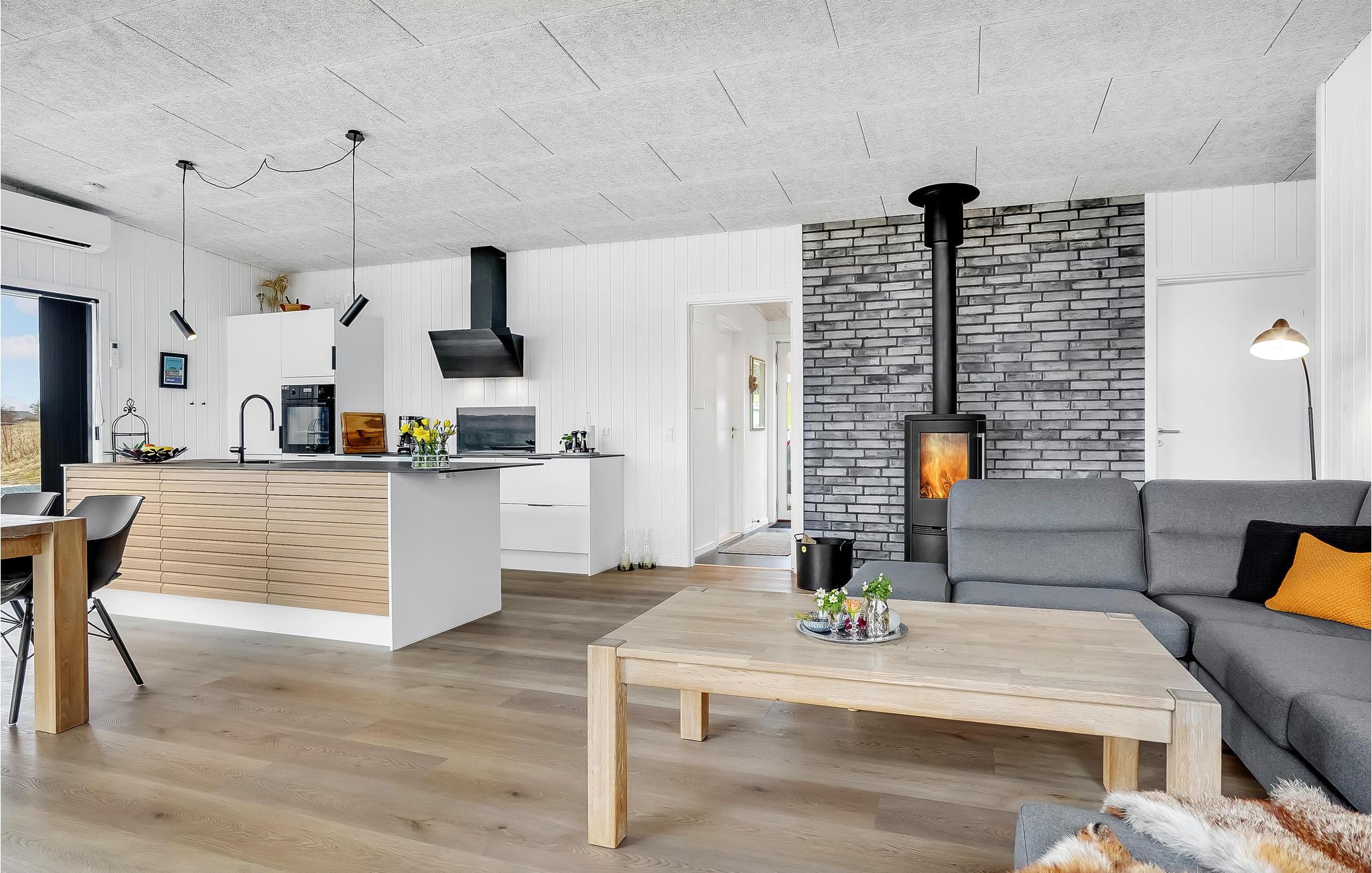 In dit huis met enkele stijlvolle details zult u zich meteen thuis voelen en dit uw tijdelijke thuis noemen. Het interieur wordt overspoeld met daglicht dankzij de grote ramen en biedt u een nette moderne sfeer met een gezellige inrichting. Hier kun je het jezelf gemakkelijk maken met je familie, urenlang samen eten en kaarten, terwijl de open haard gezellige warmte brengt. Stap uit op het open overdekte terras, steek de barbecue aan en sluit uw avonden af met lekkernijen en misschien een glas wijn, of maak van de gelegenheid gebruik om van de zon te genieten op de ligstoelen.