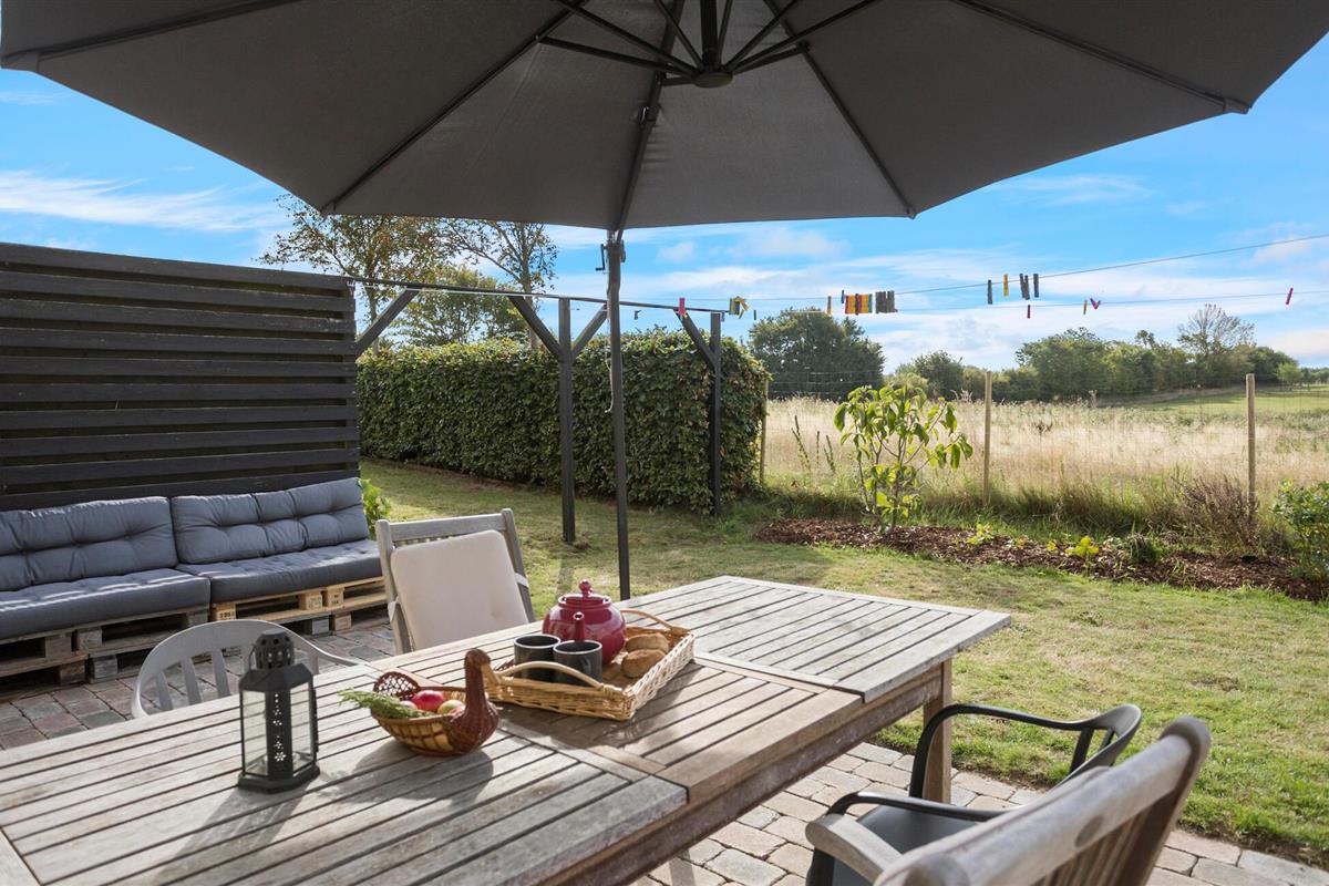 Gezellig en energiezuinig vakantiehuis in landelijke omgeving bij Lökkeby, met terras, tuin en speelruimte voor families.