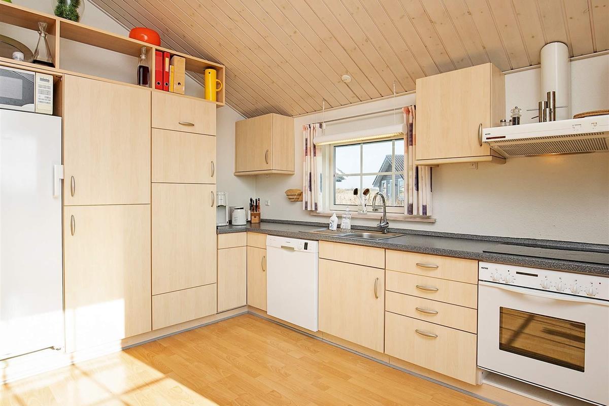 Das 2002 erbaute Ferienhaus wurde seitdem laufend instand gehalten. Es bietet einen hell und freundlich eingerichteten Küchen-/Wohnbereich für das Familienleben. Zudem gibt es vier Schlafzimmern, ein Badezimmer mit Whirlpool und Zugang zu Sauna sowie ein Gäste-WC im Haus, das damit überdurchschnittlich gut ausgestattet ist. Möbel und Dekor sind in typisch, dänischem Design gehalten.