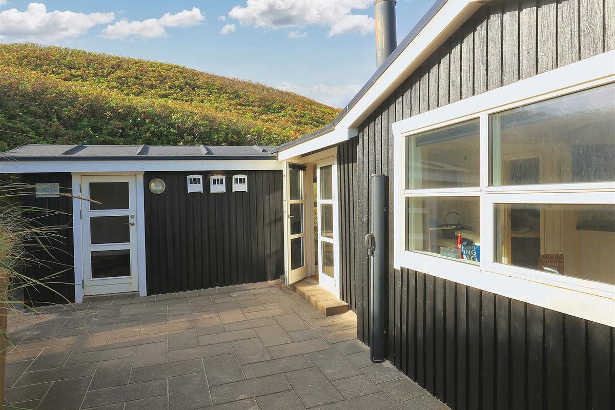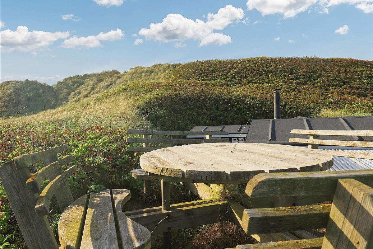 Idyllisch gelegenes Ferienhaus inmitten der Dünenlandschaft, in einem beliebten Ferienhausgebiet ganz nahe der Nordseeküste und unweit des beliebten Ferienortes Løkken. Sie wohnen hier in den Dünen und zugleich nur etwa 25 m vom großartigen Sandstrand entfernt!