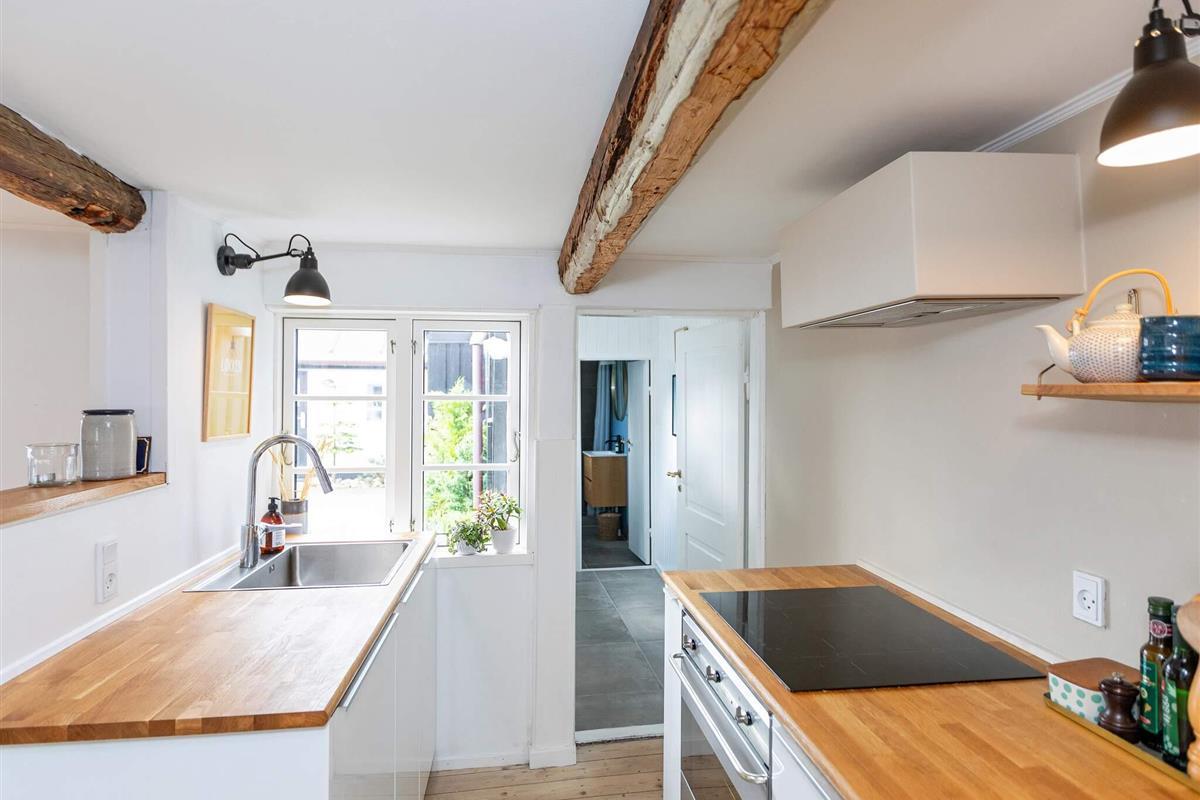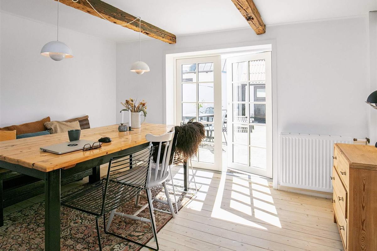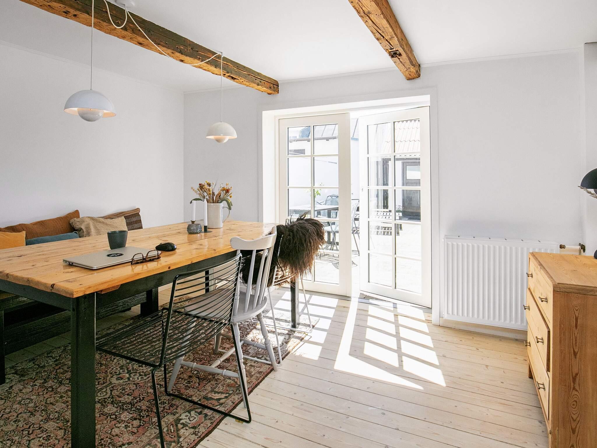 Das historische Stadthäuschen ist in modernem, typisch nordischem Stil und mit viel Liebe zum Detail renoviert und neu eingerichtet worden. Im Erdgeschoss mit sichtbaren Deckenbalken findet man den offenen Küchen-/Essbereich und im Anschluss daran das gemütliche Wohnzimmer mit 2 m zur Decke. Von der Küche führt ein kleiner Flur zum hübschen, kleinen Bad (180 cm Raumhöhe). Es gibt zudem drei Schlafzimmer, von denen sich zwei nebenan im beheizbaren Nebengebäude (Annex) mit praktischem Hauswirtschaftsraum und Waschmaschine befinden. Das dritte Schlafzimmer liegt im Dachgeschoss des Hauses und hat eine Dachgaube, die für schönen Lichteinfall im Zimmer sorgt und außerdem zusätzlichen Raum schafft.