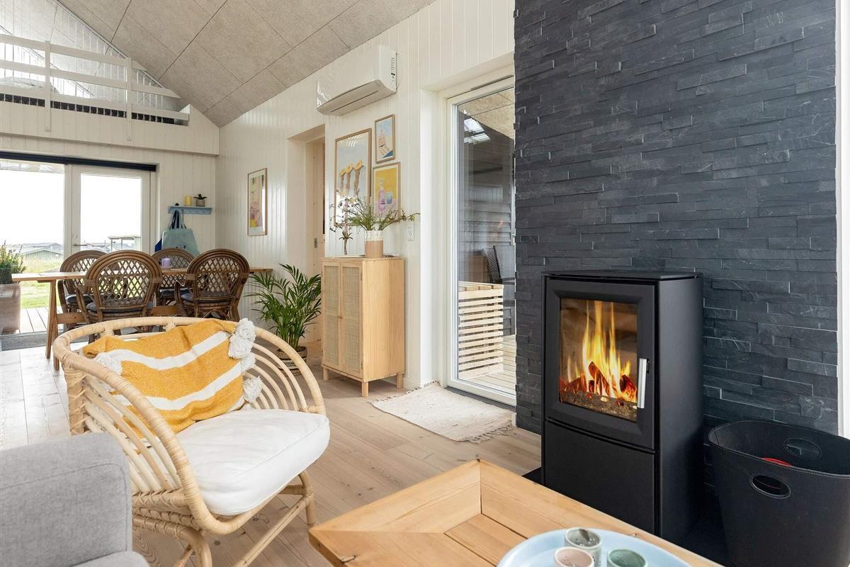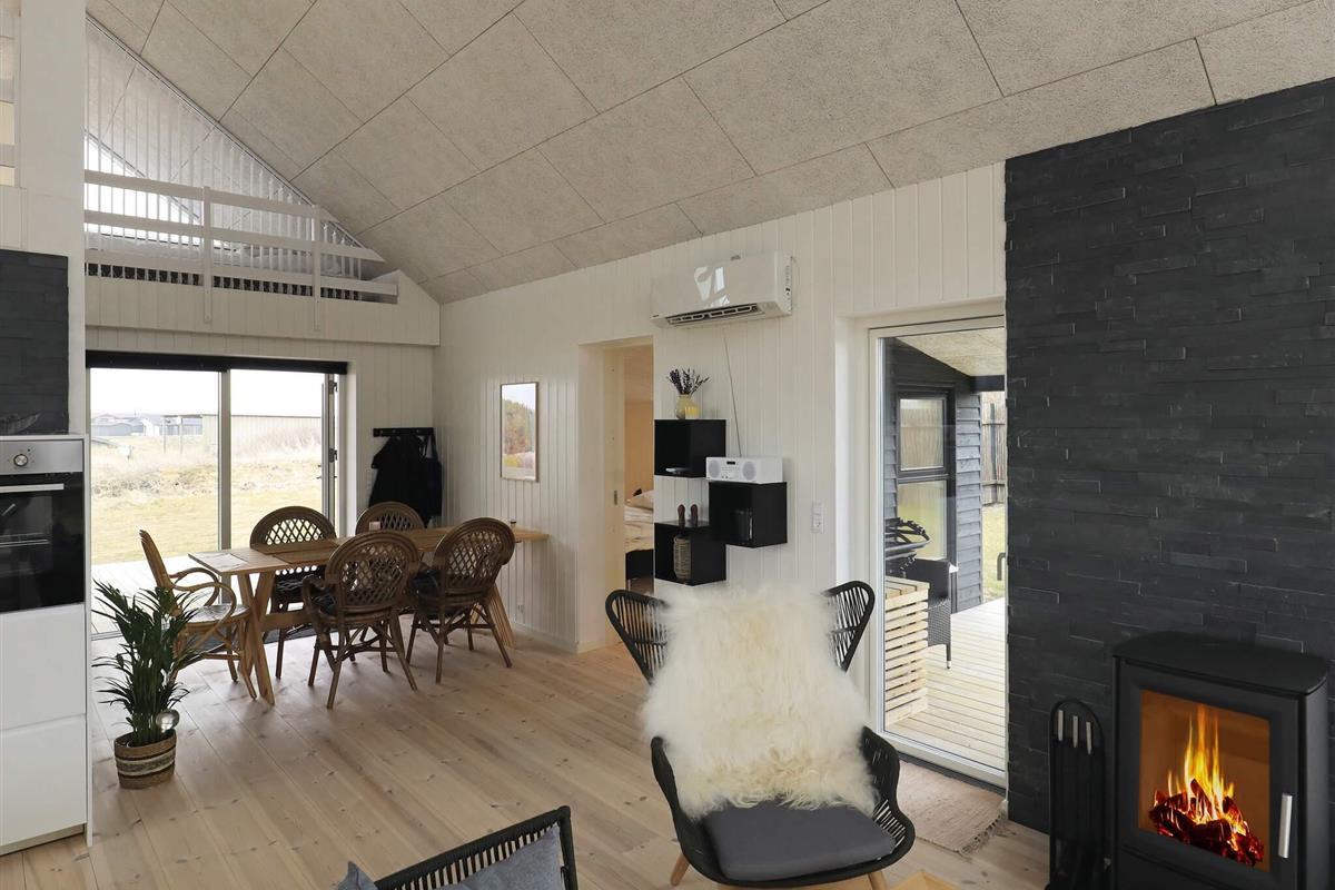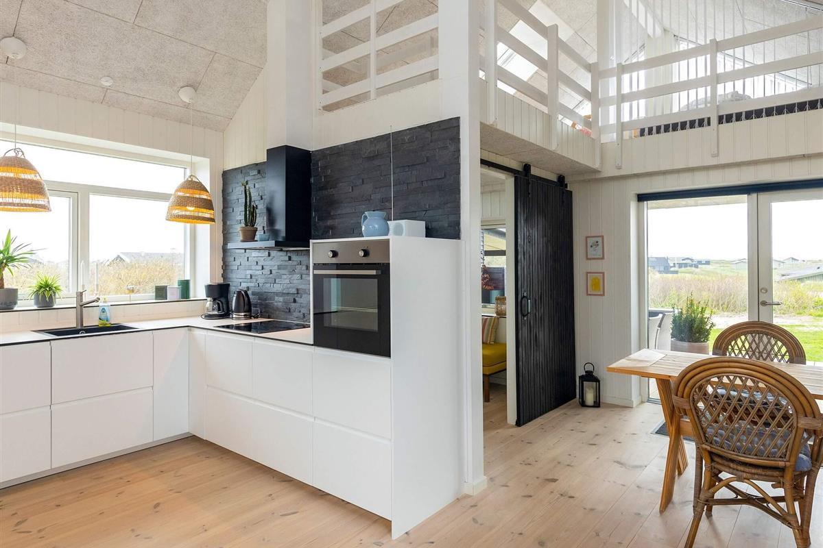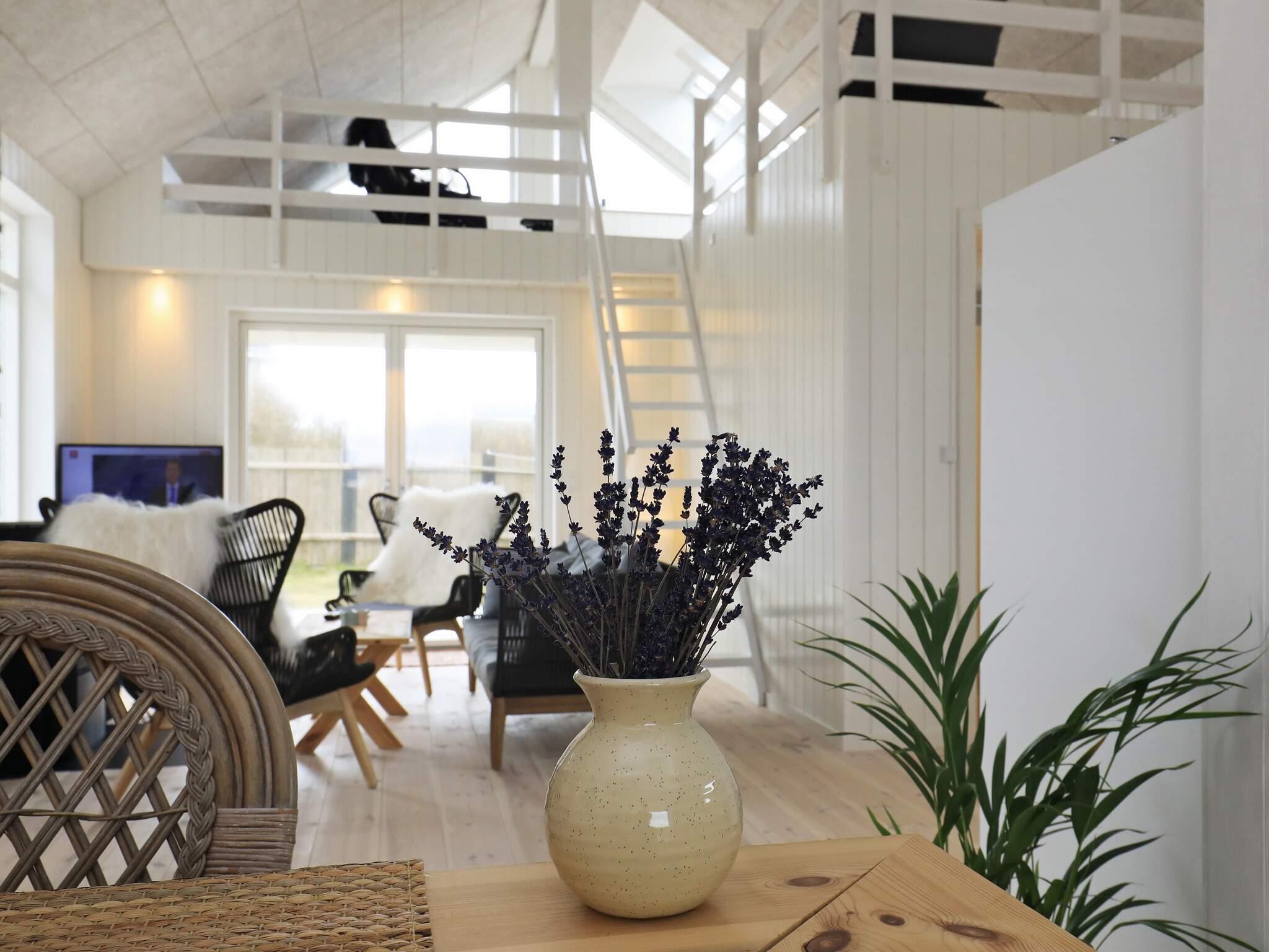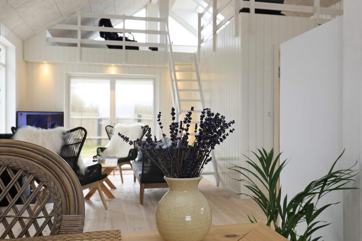 Ferienhaus mit Meerblick bei Løkken. Innen in hellem, typisch skandinavischem Stil eingerichtet. Entspannen Sie hier, ganz unabhängig von der Jahreszeit, mit Ihrer Familie in absolut fantastischer und erholsamer Umgebung am Wasser!