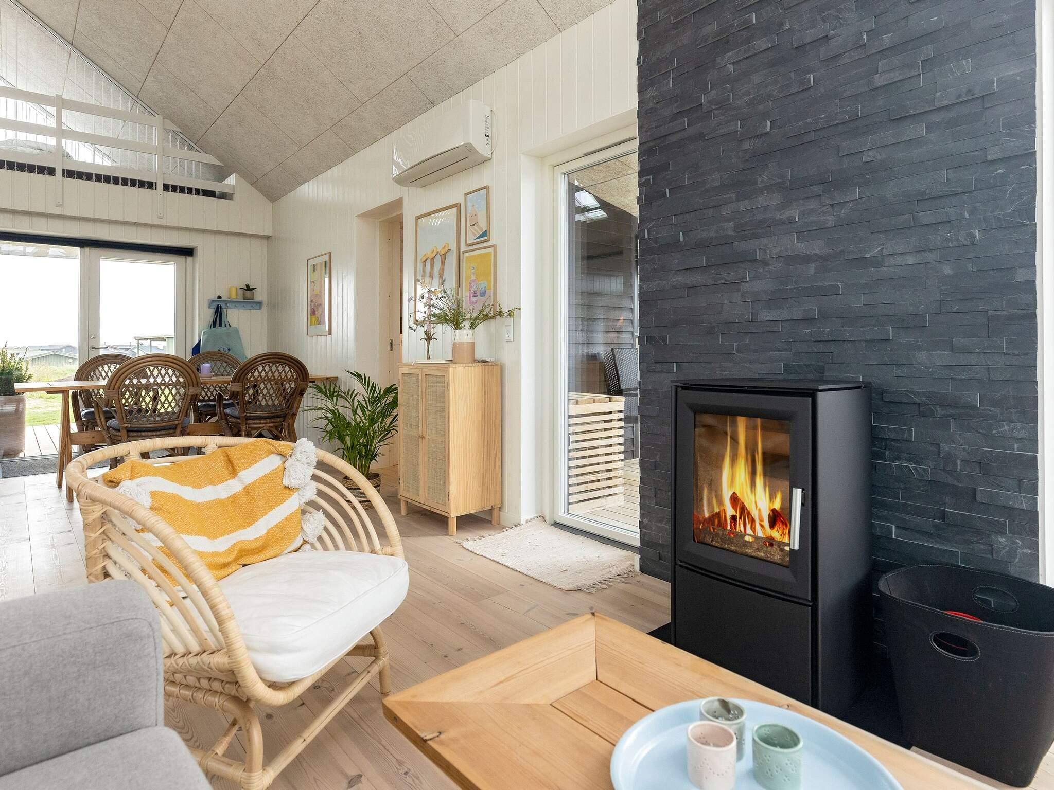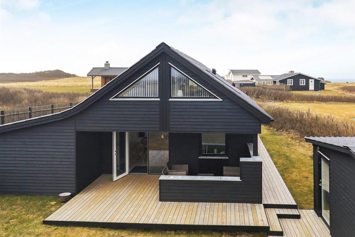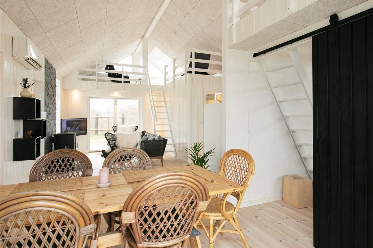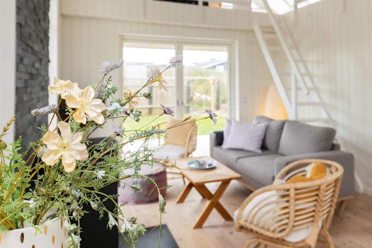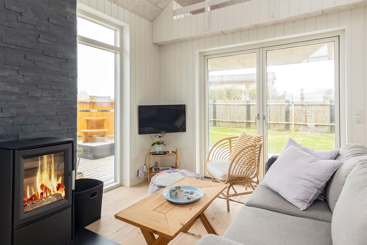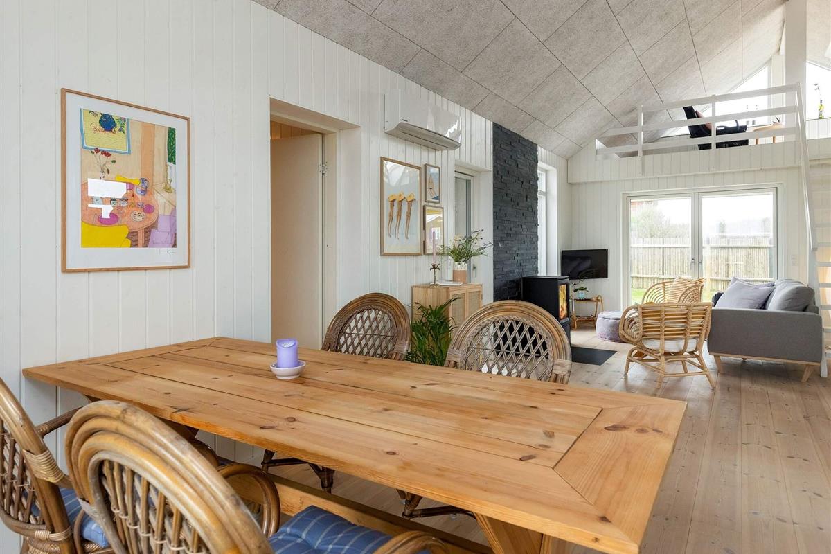 Ferienhaus mit Meerblick bei Løkken. Innen in hellem, typisch skandinavischem Stil eingerichtet. Entspannen Sie hier, ganz unabhängig von der Jahreszeit, mit Ihrer Familie in absolut fantastischer und erholsamer Umgebung am Wasser!