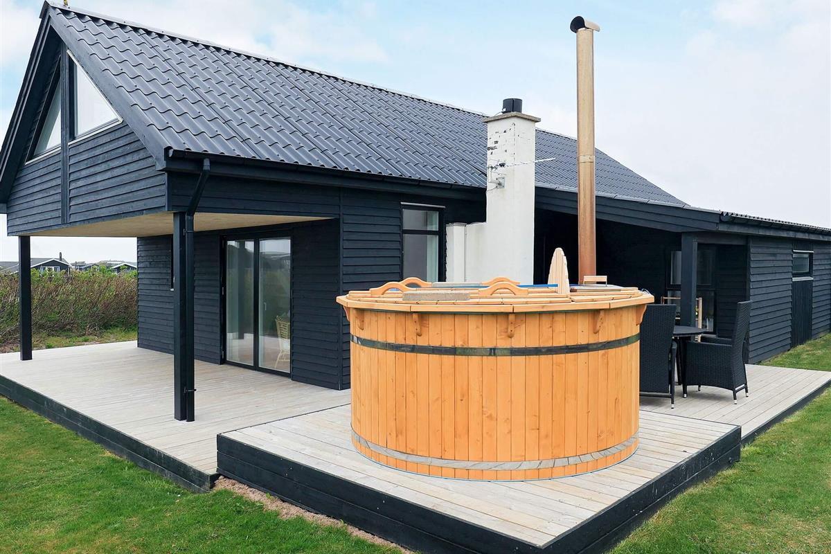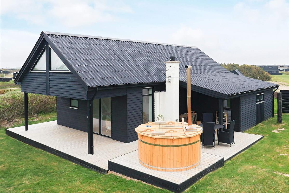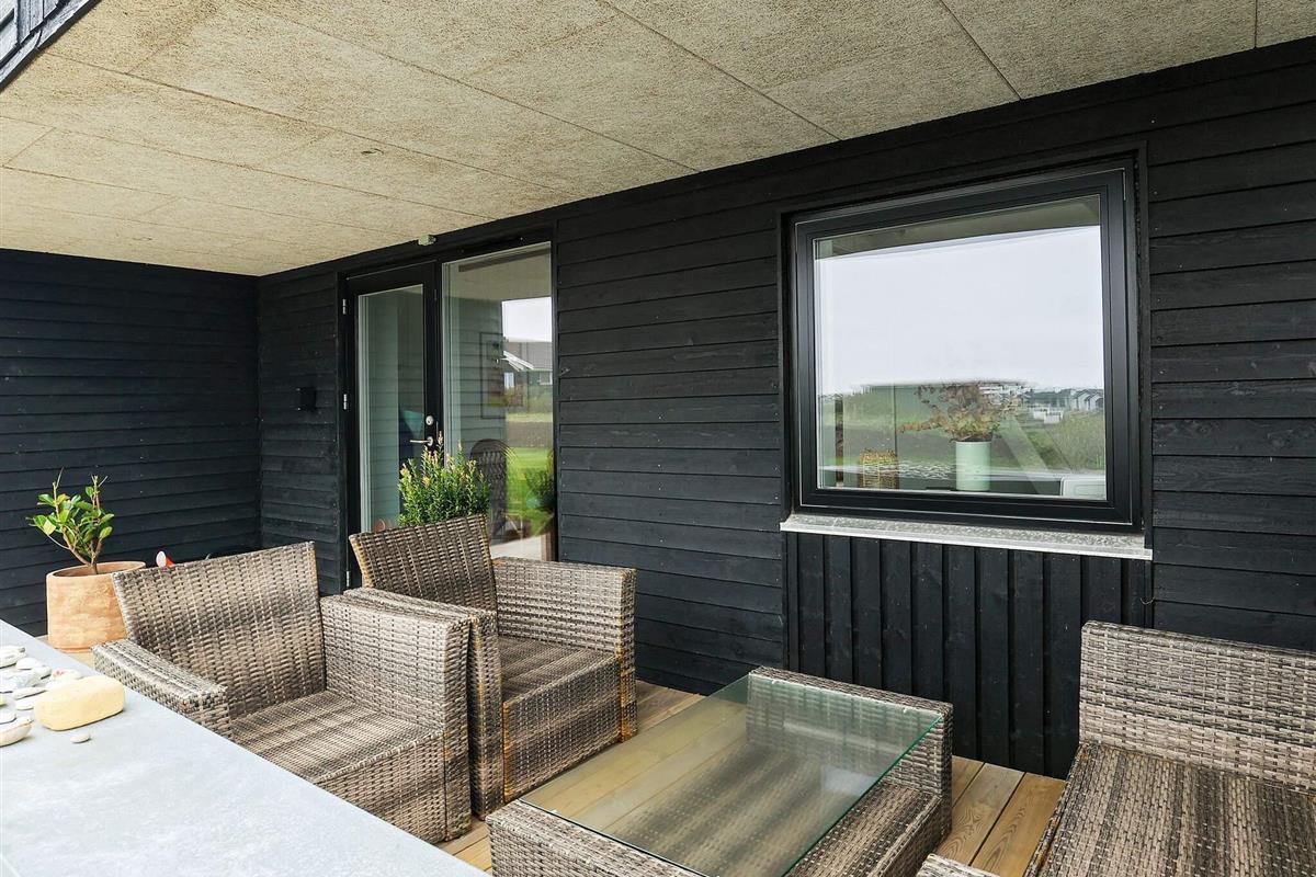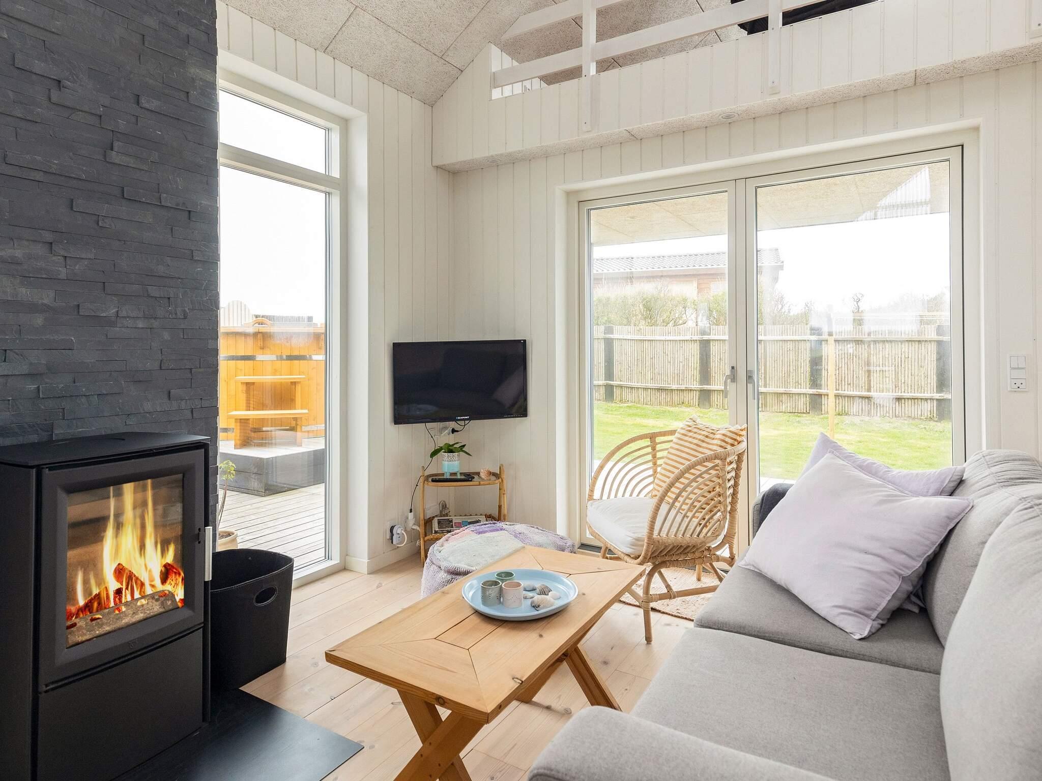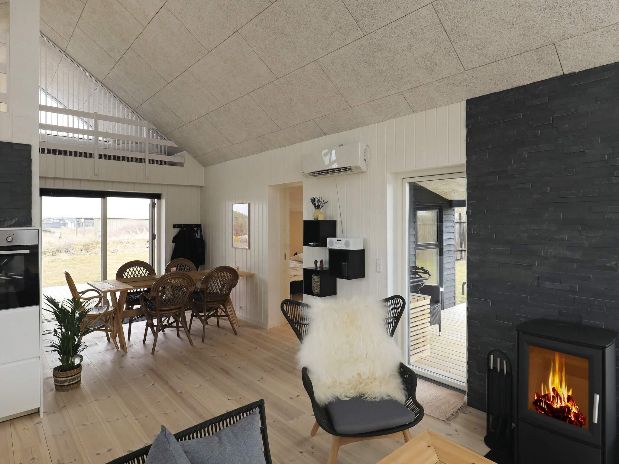 Ferienhaus mit Meerblick bei Løkken. Innen in hellem, typisch skandinavischem Stil eingerichtet. Entspannen Sie hier, ganz unabhängig von der Jahreszeit, mit Ihrer Familie in absolut fantastischer und erholsamer Umgebung am Wasser!