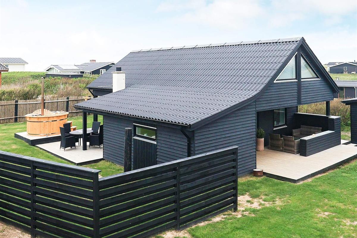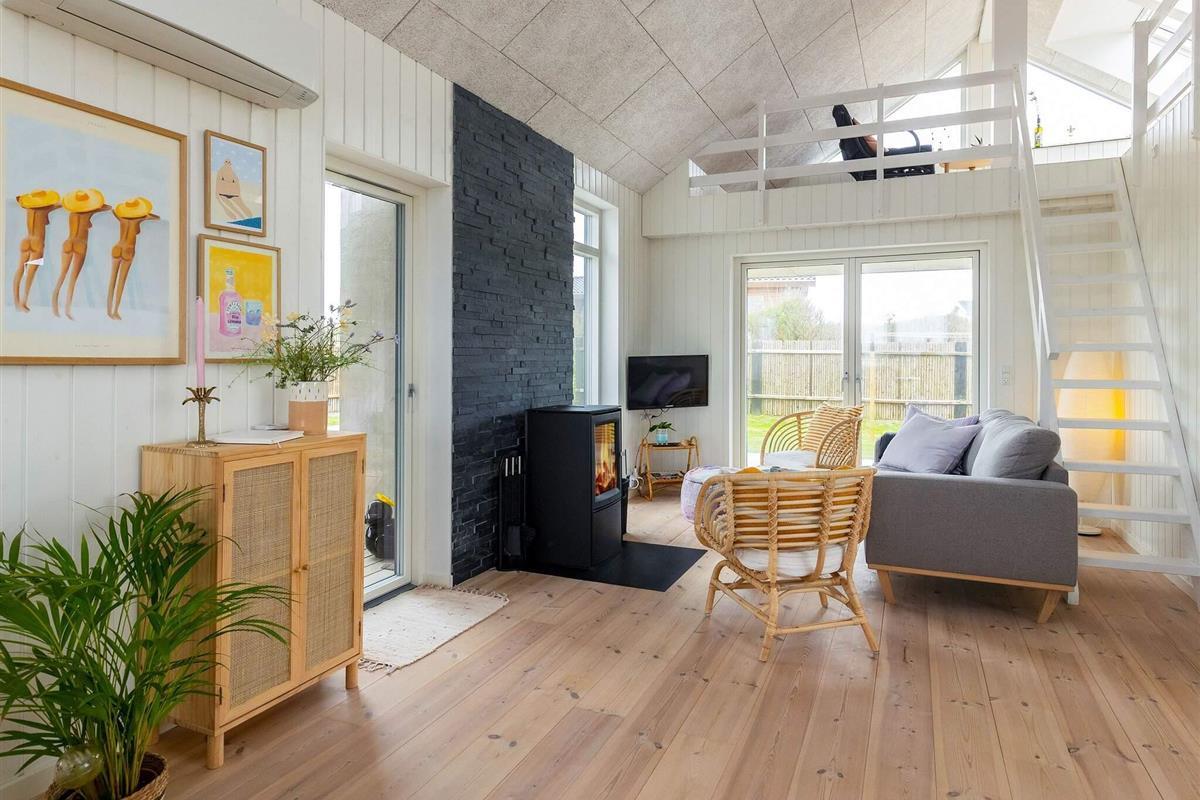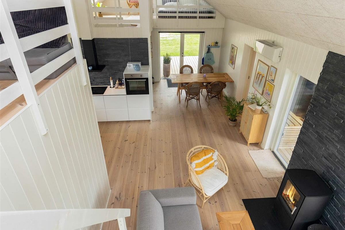 Im Ferienhaus selbst steht ein offener Küchen-/Wohnbereich für das Familienleben bereit, der mit seinen großen Fensterfläche optimales Tageslicht und zugleich schönen Ausblick bietet. Zur Verfügung hat man hier eine zeitgemäße Küchenausstattung, Sitz- und Essecke sowie einen Holzofen. Zudem klimafreundliche Wärmepumpe im Haus. Geräumiges Schlafzimmer und Hems oben unter der Dachschräge sowie ein modernes Badezimmer mit u.a. Dusche, Fußbodenheizung und Waschmaschine im Haus. Annex nebenan, zudem Carport auf dem Grundstück, in dem die Autos geschützt parken und das Gepäck trocken ins Haus gelangt. Wenn das Auto aufgeladen werden muss, gibt es sowohl ein schnelles als auch ein langsames Ladegerät.