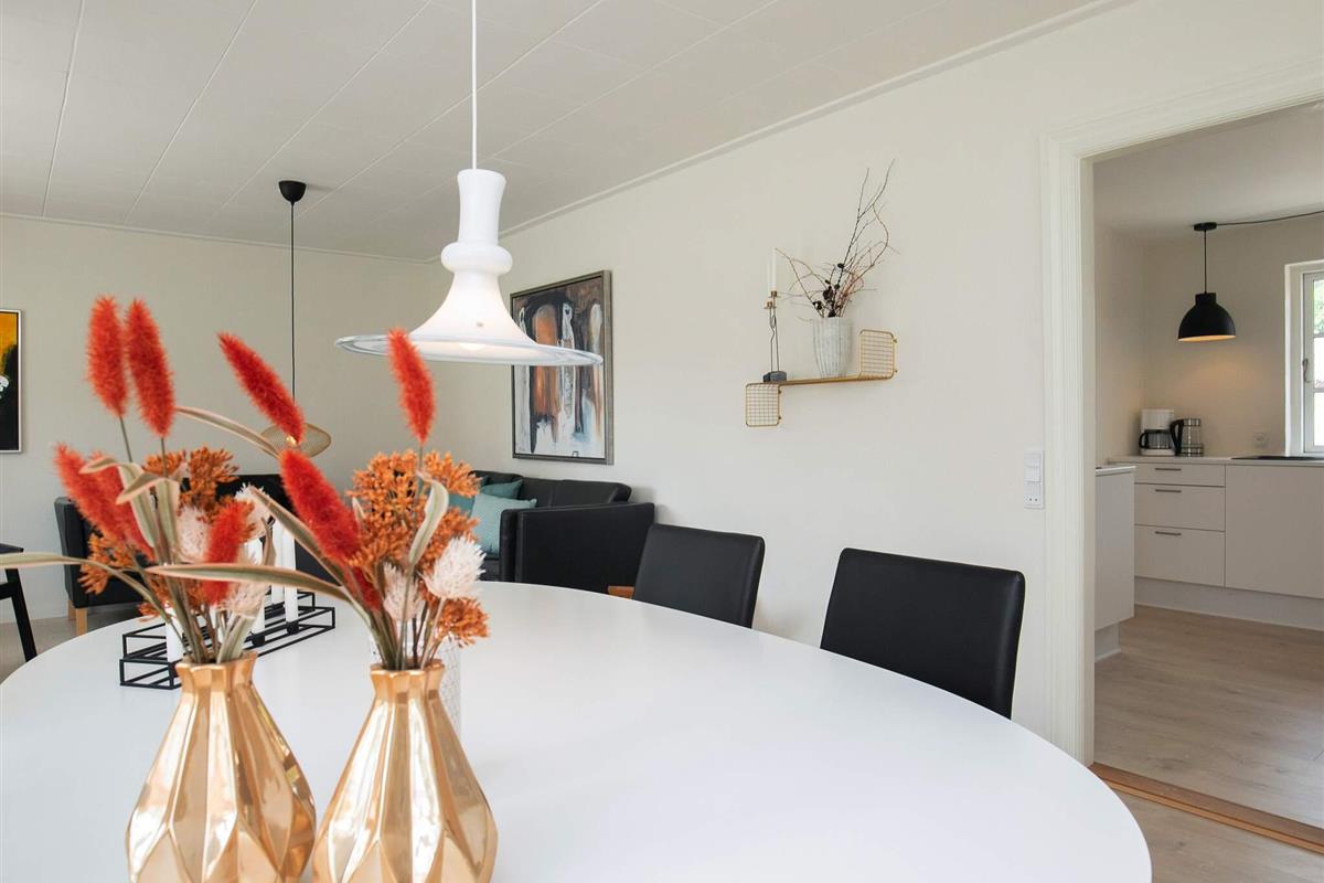 Das heutige Ferienhaus wurde 2021 komplett renoviert und bietet zwei Wohnebenen, die zu jeder Jahreszeit bewohnt werden können. Die nagelneue Küche (2021) des Hauses ist offen mit dem Wohnzimmer verbunden. Hier finden Sie auch eine Ess- und eine Sitzecke für das Familienleben. Im Haus auch freies WLAN sowie TV. Beim Kochen in der Küche ist es dennoch möglich, an der gemütlichen Unterhaltung im Wohnzimmer teilzunehmen. Das Ferienhaus verfügt zudem über drei gute Schlafzimmer mit jeweils einem Doppelbett.