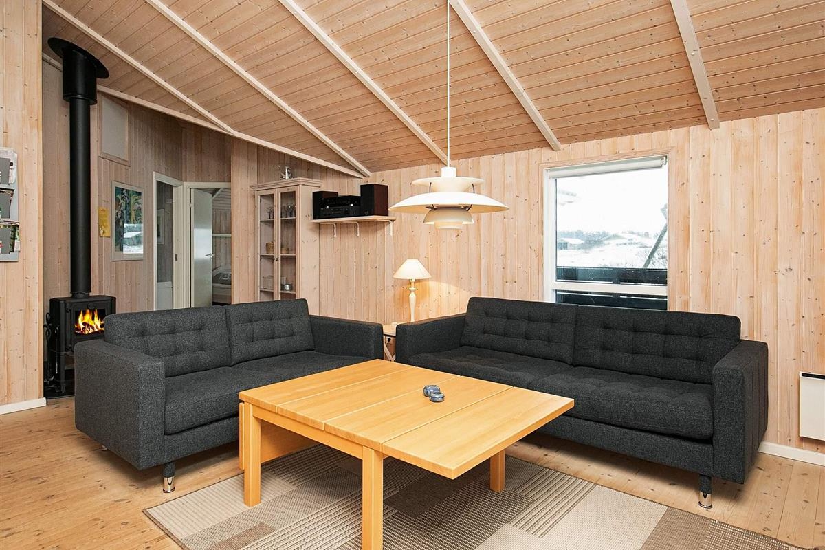 Die Raumaufteilung ist gut durchdacht, sodass man auch mit zwei Generationen oder Familien angenehm unter einem Dach wohnen kann. Die Türen sind mit einer Breite von 90 cm behindertengerecht. Sowohl überdachte als auch offene Terrassenfläche laden zum Entspannen an der frischen Luft ein. Wenn es zu kühl wird, kann man das knisternde Feuer im Holzofen genießen.