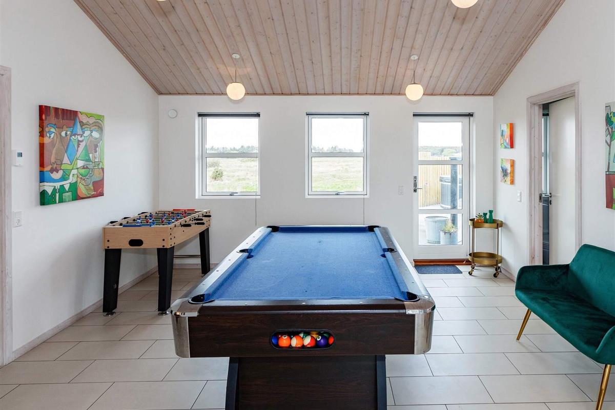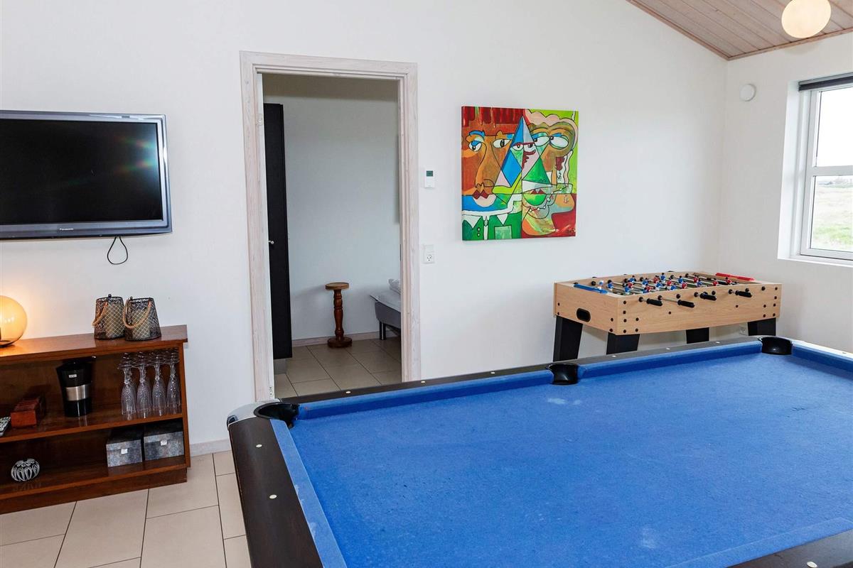 Geschmackvolles Mobiliar, hochwertig und in typisch dänischem Design. Für Abwechslung sorgen im Aktivitätsraum Billard und Tischfußball. Zudem geräumiger Wohnbereich mit schöner Sitzecke und Essbereich. Für die Jüngsten steht im Haus ein Hochstuhl bereit.
