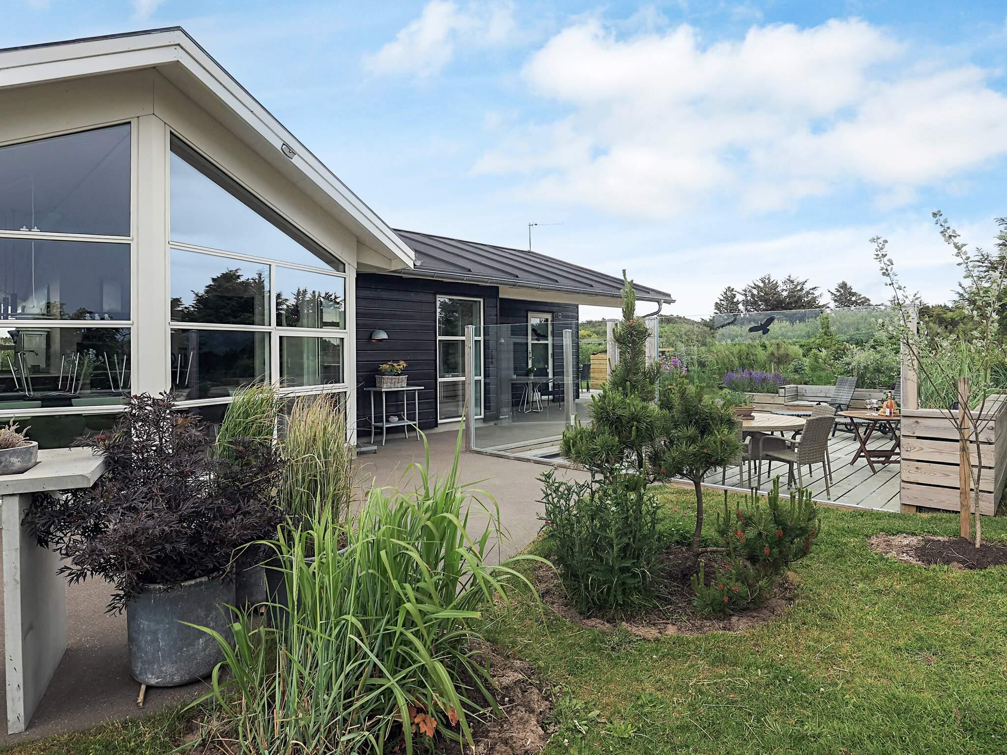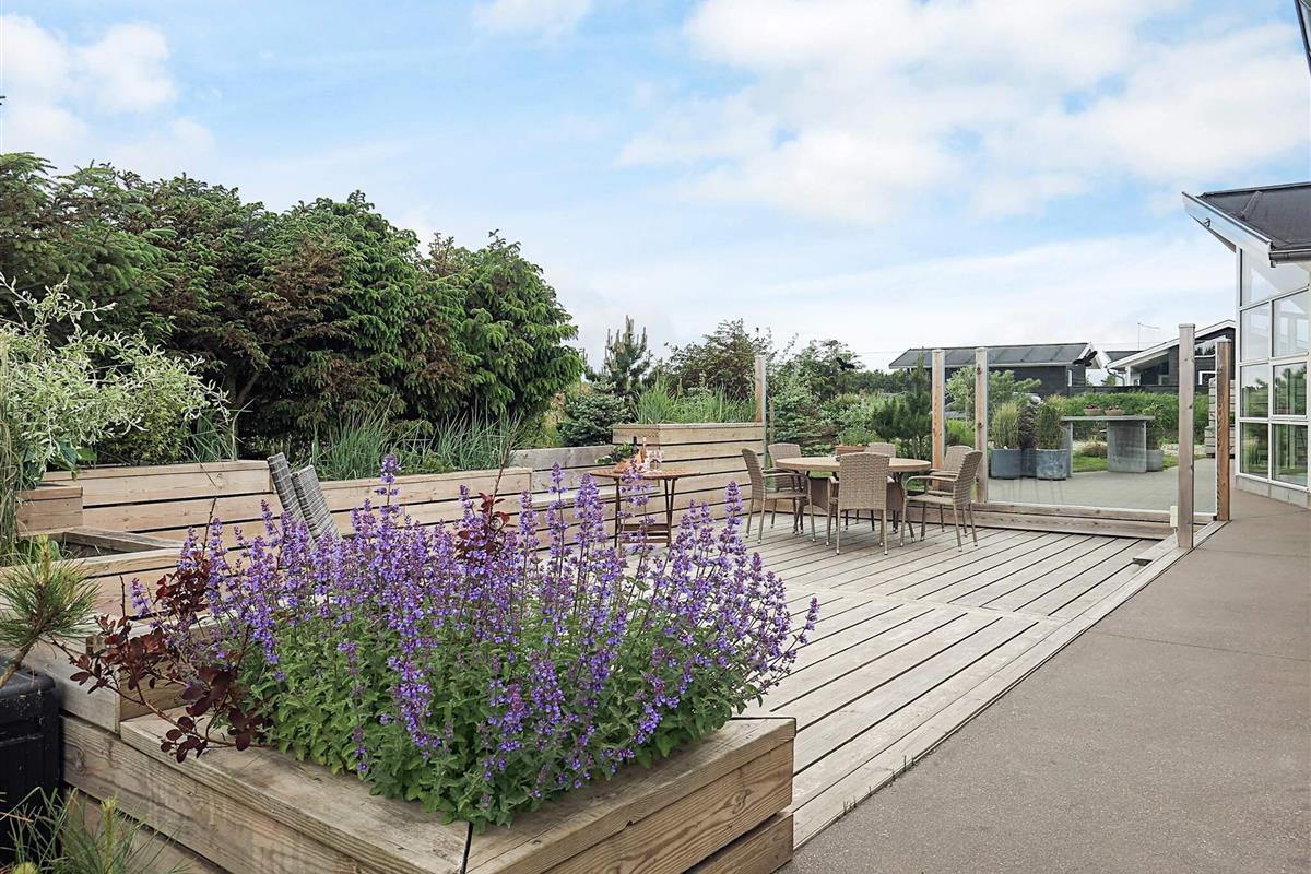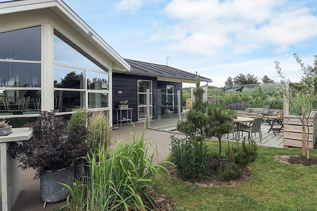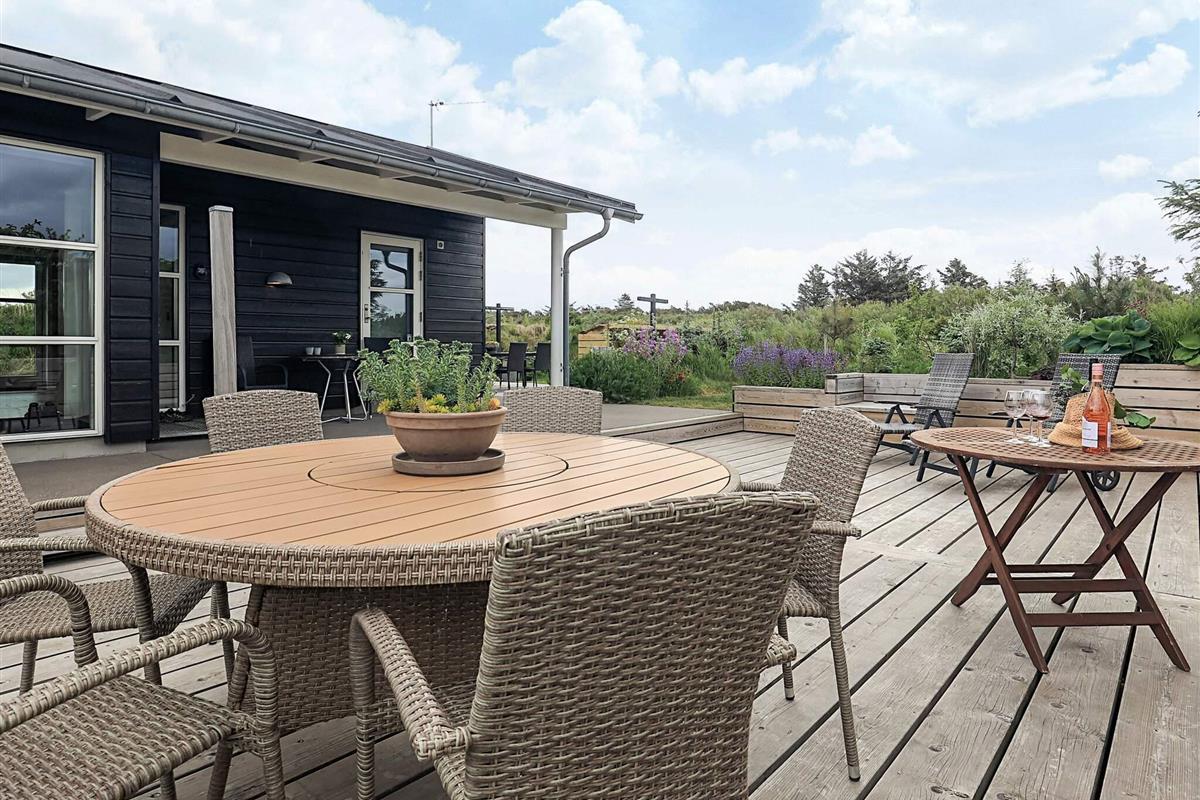 Das Wohnzimmer ist aufgeteilt in einen Wohnbereich mit Sesseln, Sofagruppe, Fernseher und einen Küchen-/Essbereich - beides mit viel Platz. Im Aktivitätsraum gibt es einen Fernseher, Billardtisch und Tischfußball. Die großen, teils bodentiefen Fenster sorgen den ganzen Tag über für absolut traumhafte Lichtverhältnisse. Das Mobiliar ist in modernem, typisch dänischem Stil und von höchster Qualität. Am Haus befinden sich Terrassenflächen nach Osten, Süden und Südwesten mit vielen Möglichkeiten für Outdooraktivitäten und Sonnentage im Freien. Zudem gibt es eine überdachte Terrasse. Das Grundstück ist ein Naturgrundstück mit ausgesuchter Bepflanzung.