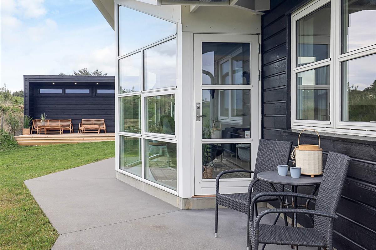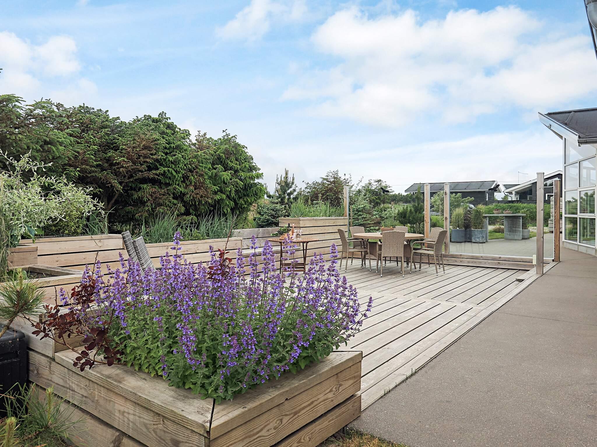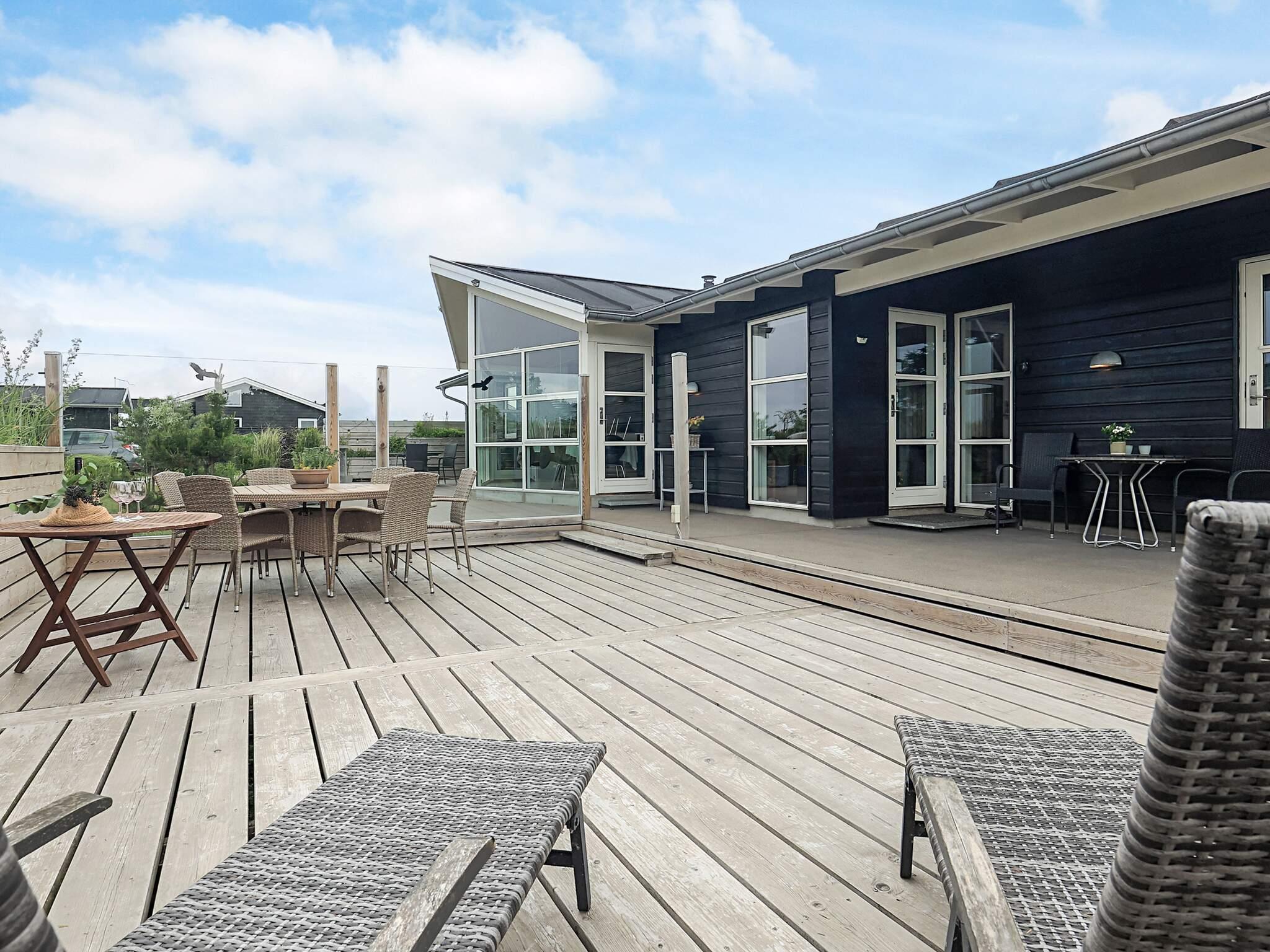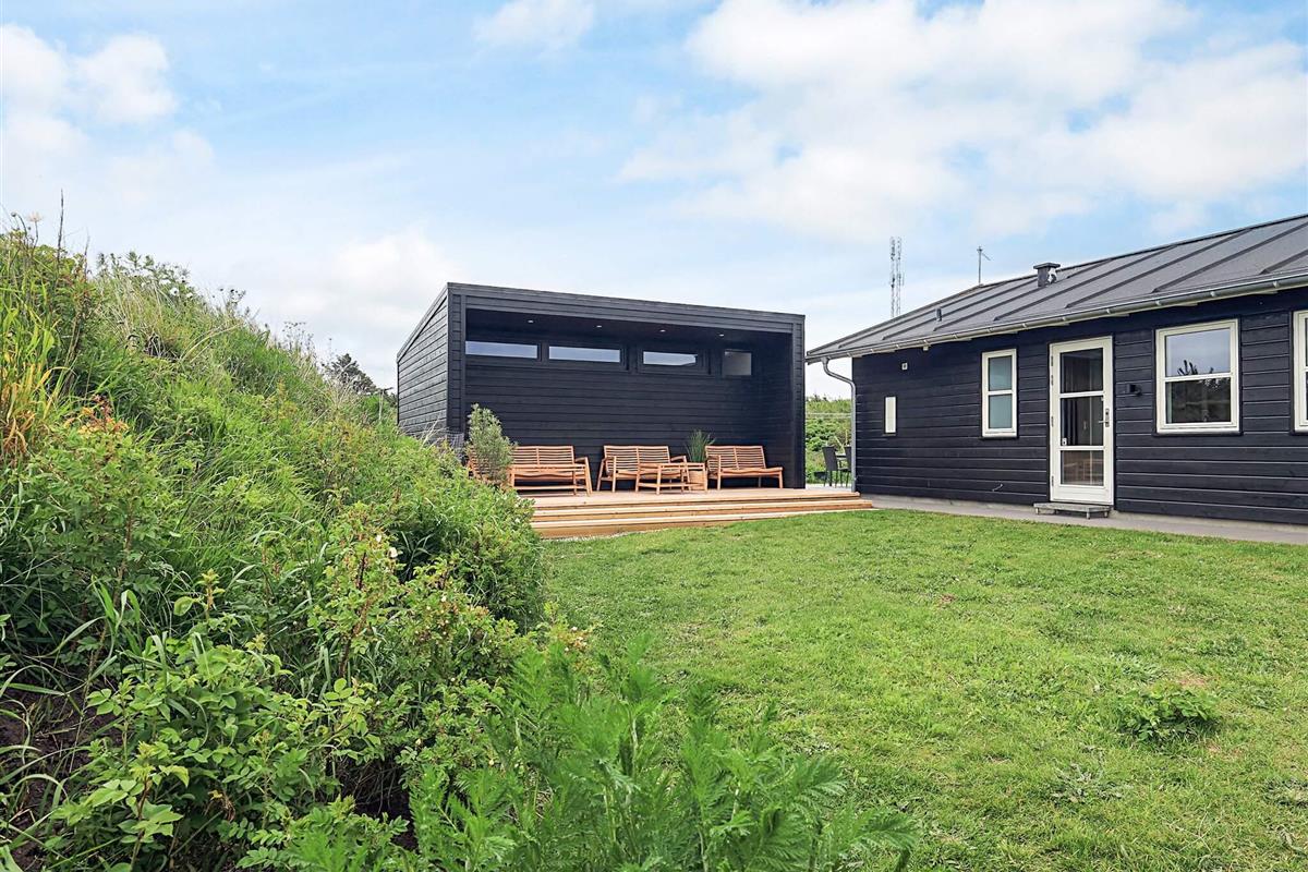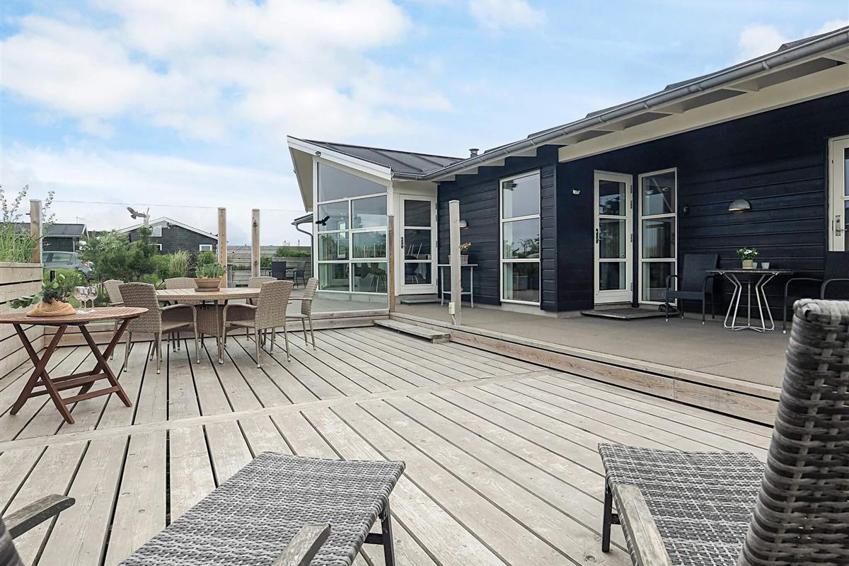 Das Wohnzimmer ist aufgeteilt in einen Wohnbereich mit Sesseln, Sofagruppe, Fernseher und einen Küchen-/Essbereich - beides mit viel Platz. Im Aktivitätsraum gibt es einen Fernseher, Billardtisch und Tischfußball. Die großen, teils bodentiefen Fenster sorgen den ganzen Tag über für absolut traumhafte Lichtverhältnisse. Das Mobiliar ist in modernem, typisch dänischem Stil und von höchster Qualität. Am Haus befinden sich Terrassenflächen nach Osten, Süden und Südwesten mit vielen Möglichkeiten für Outdooraktivitäten und Sonnentage im Freien. Zudem gibt es eine überdachte Terrasse. Das Grundstück ist ein Naturgrundstück mit ausgesuchter Bepflanzung.