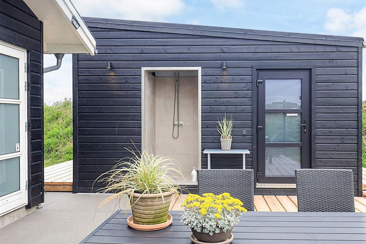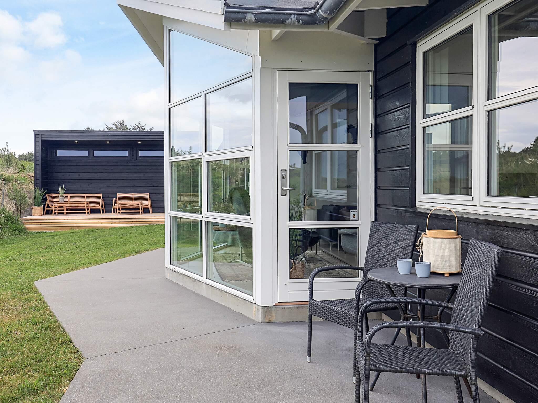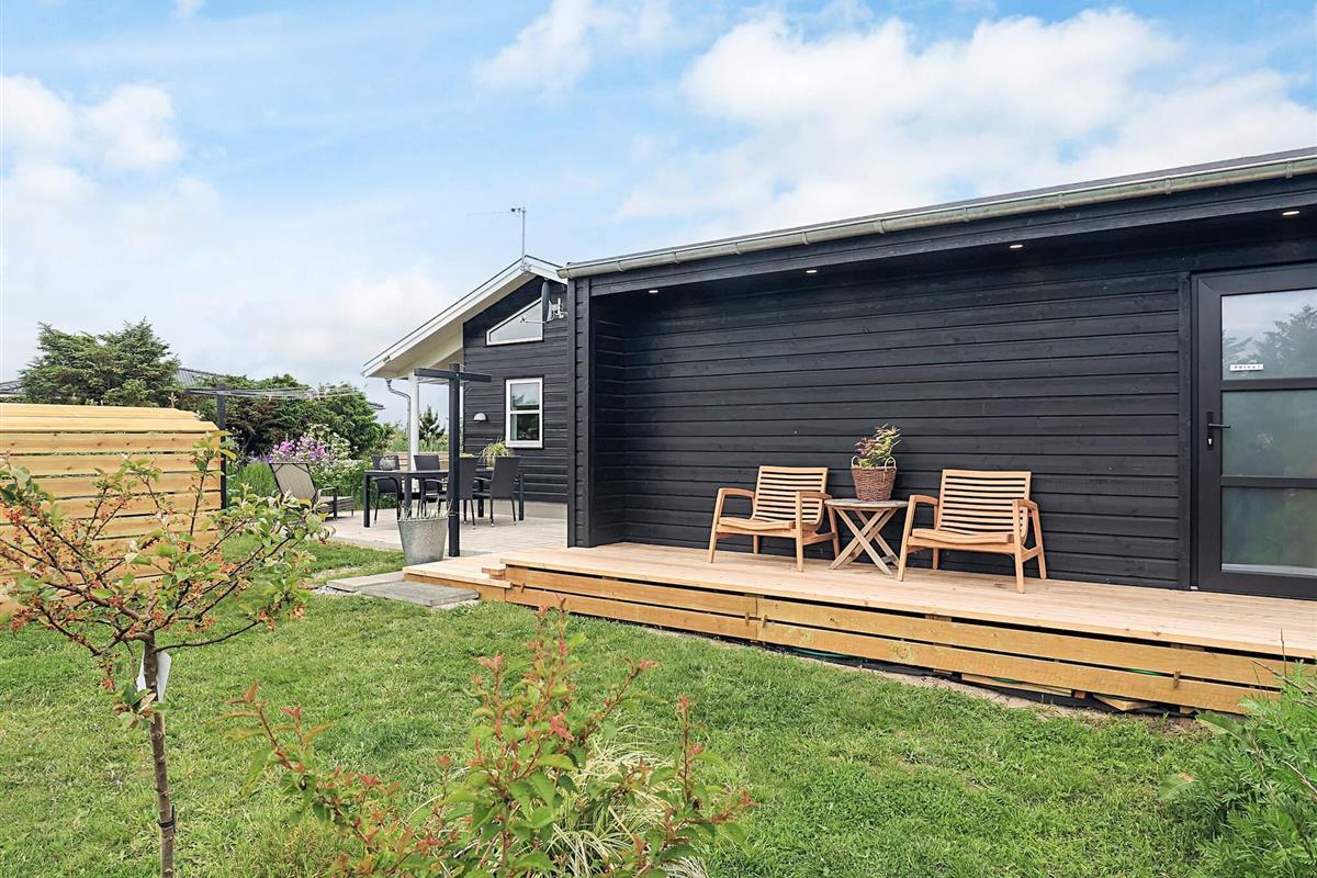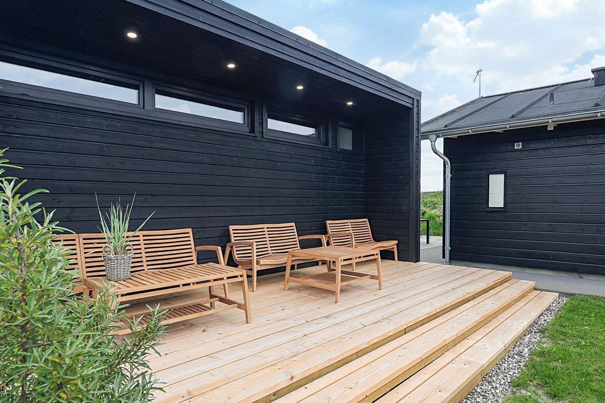 Das Wohnzimmer ist aufgeteilt in einen Wohnbereich mit Sesseln, Sofagruppe, Fernseher und einen Küchen-/Essbereich - beides mit viel Platz. Im Aktivitätsraum gibt es einen Fernseher, Billardtisch und Tischfußball. Die großen, teils bodentiefen Fenster sorgen den ganzen Tag über für absolut traumhafte Lichtverhältnisse. Das Mobiliar ist in modernem, typisch dänischem Stil und von höchster Qualität. Am Haus befinden sich Terrassenflächen nach Osten, Süden und Südwesten mit vielen Möglichkeiten für Outdooraktivitäten und Sonnentage im Freien. Zudem gibt es eine überdachte Terrasse. Das Grundstück ist ein Naturgrundstück mit ausgesuchter Bepflanzung.