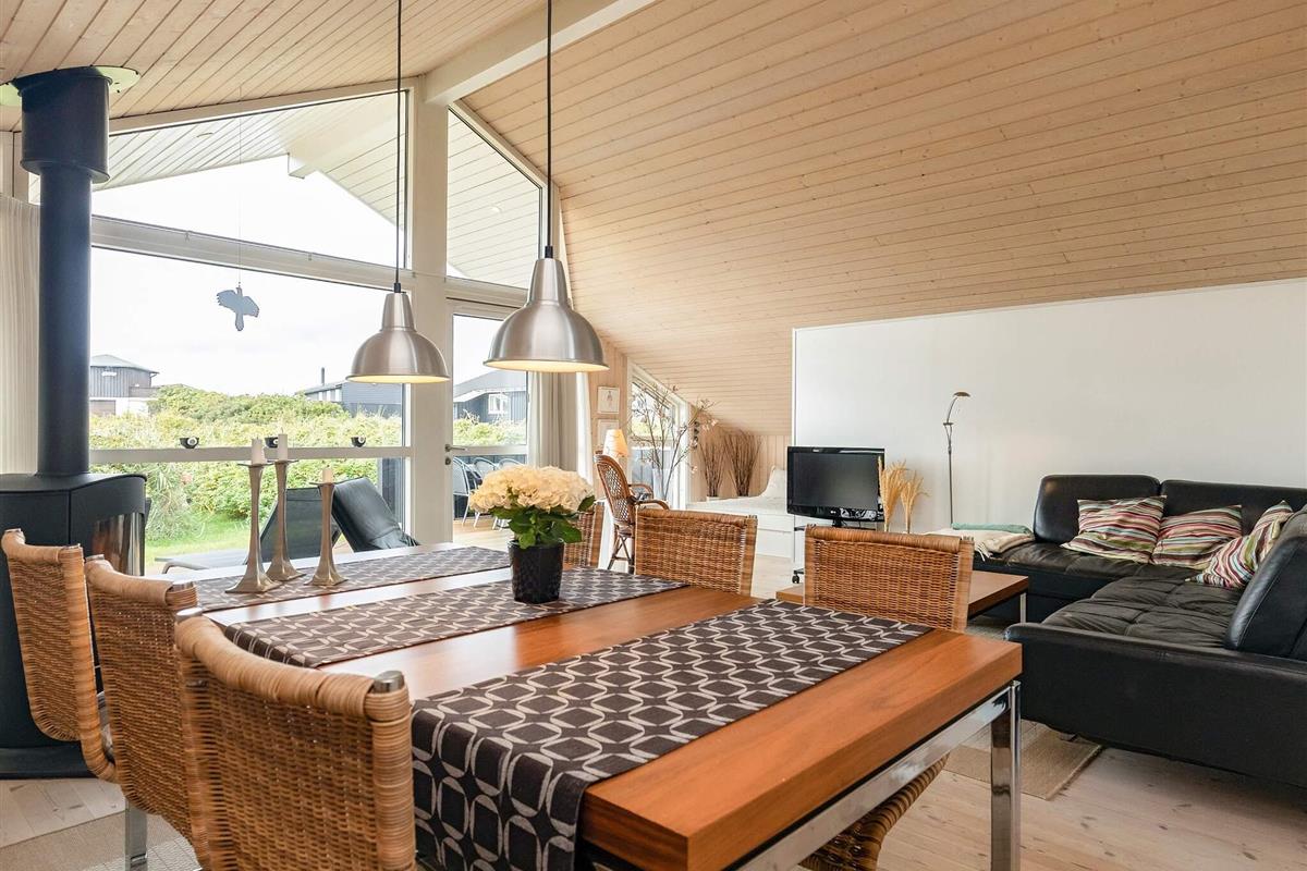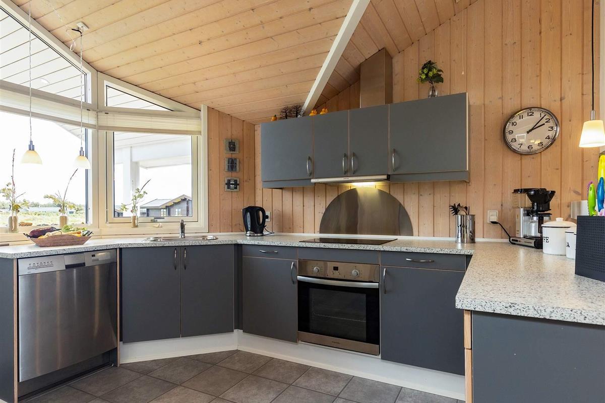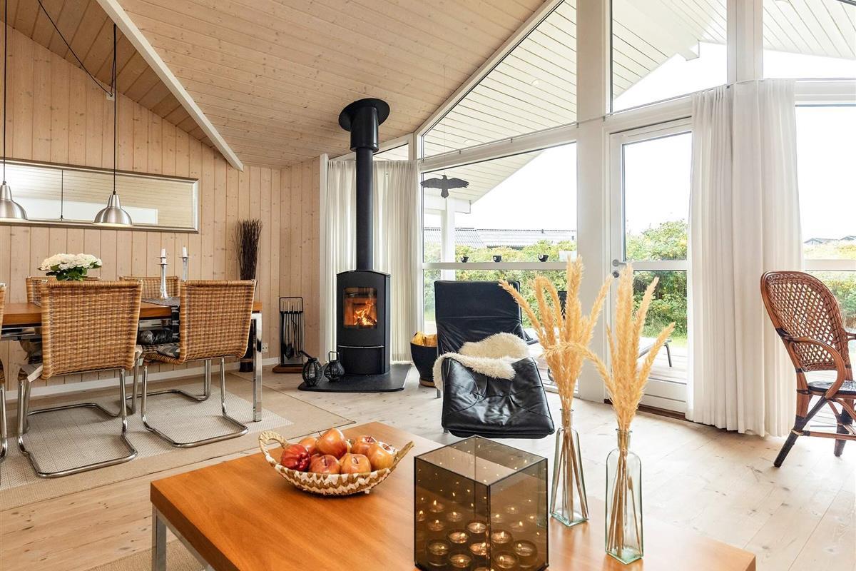 Dieses helle und einladende Ferienhaus liegt in der Nähe eines der schönsten Nordseestrände Dänemarks und nur wenige Schritte vom beliebten Ferienort Løkken entfernt. Das Haus verfügt über einen geräumigen, lichtdurchfluteten Wohnbereich, der zur Küche hin offen ist und so einen komfortablen Raum für das Familienleben schafft. Eine gemütliche Nische bietet zwei zusätzliche Schlafplätze, ideal für Kinder oder zusätzliche Gäste. Das Wohnzimmer ist außerdem mit einem Fernseher und einem wärmenden Holzofen ausgestattet – ideal für entspannte Abende nach einem Tag am Strand.