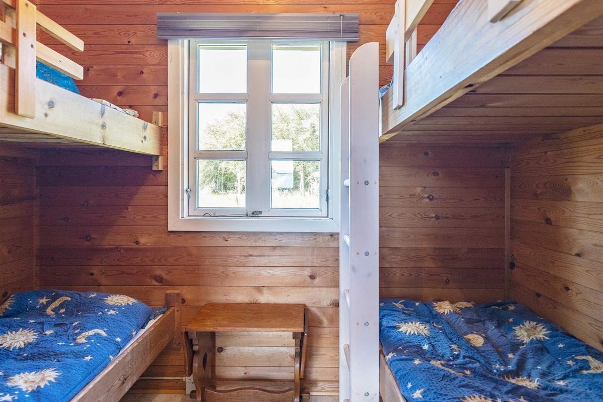 Das Haus verfügt über zwei Schlafzimmer: eines mit Doppelbett und eines mit zwei Etagenbetten. Insgesamt bietet es vier Schlafplätze und ist somit ideal für Familien oder kleine Gruppen. Die Einrichtung ist praktisch und komfortabel und ermöglicht allen einen angenehmen und entspannten Aufenthalt.