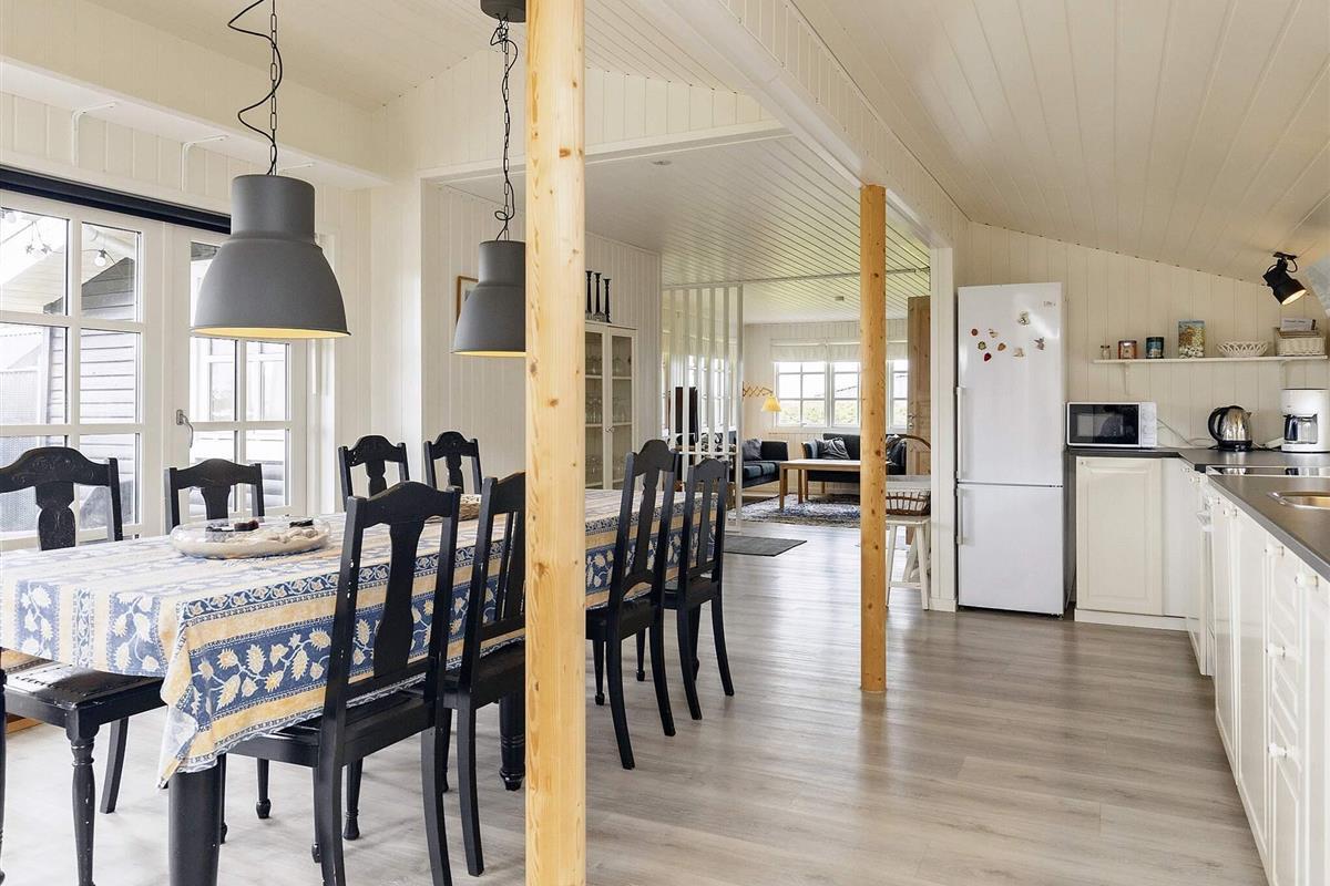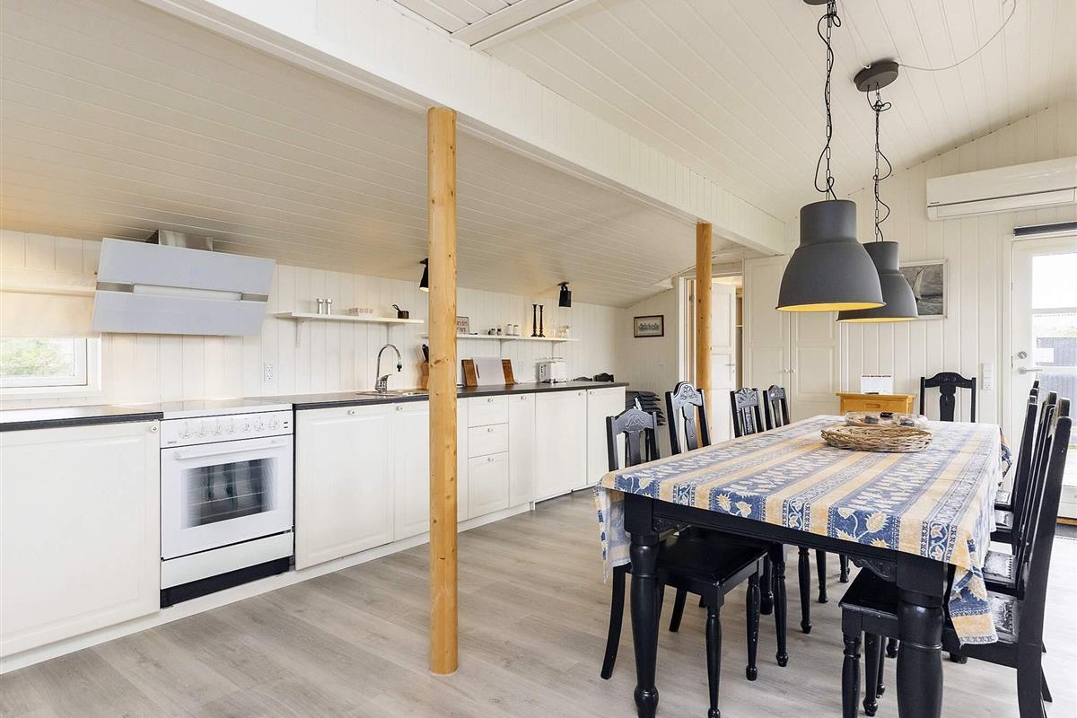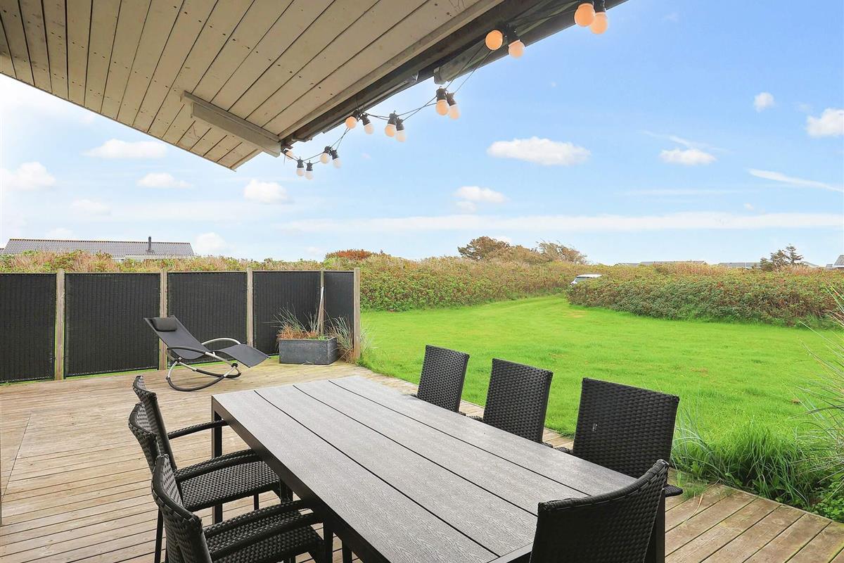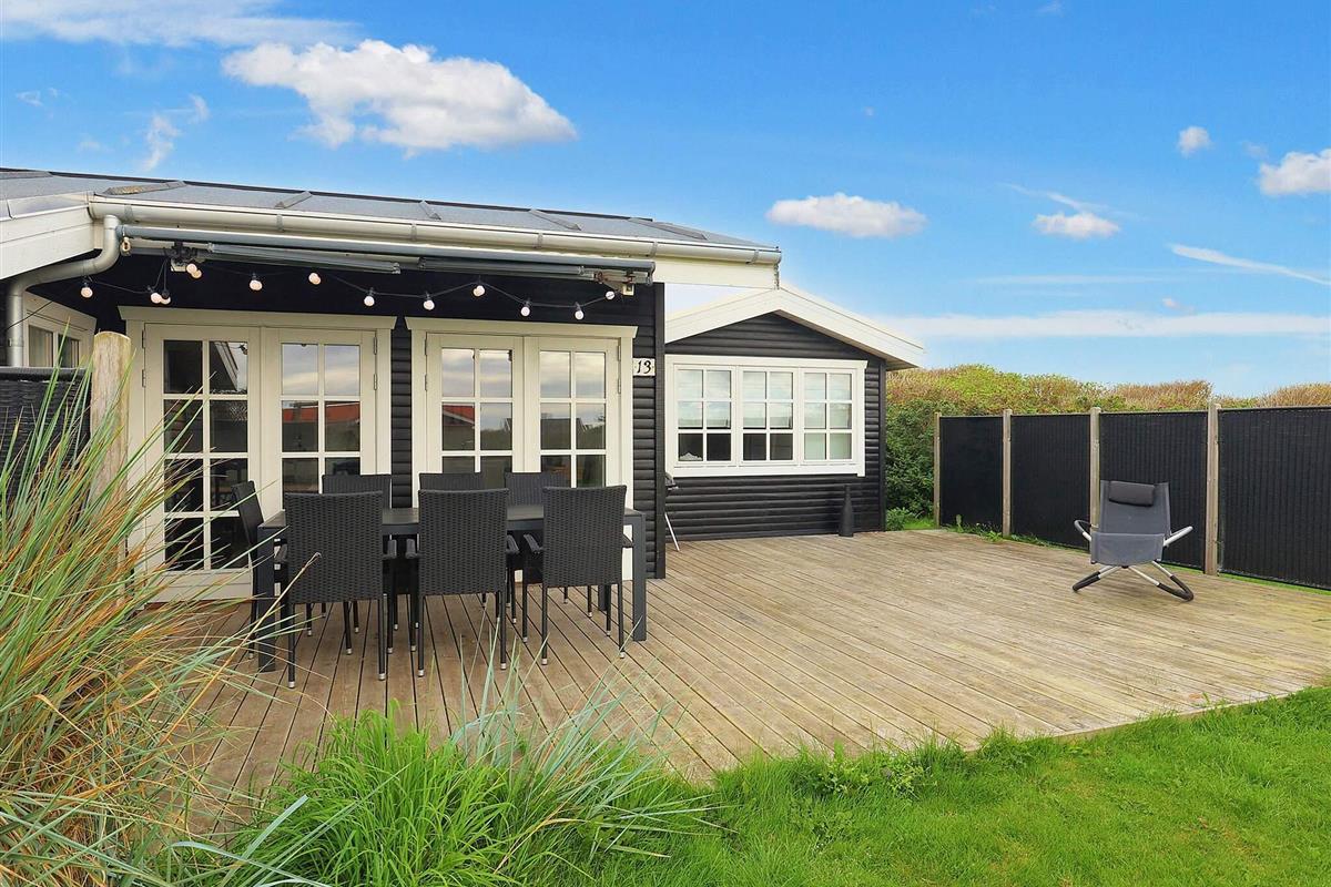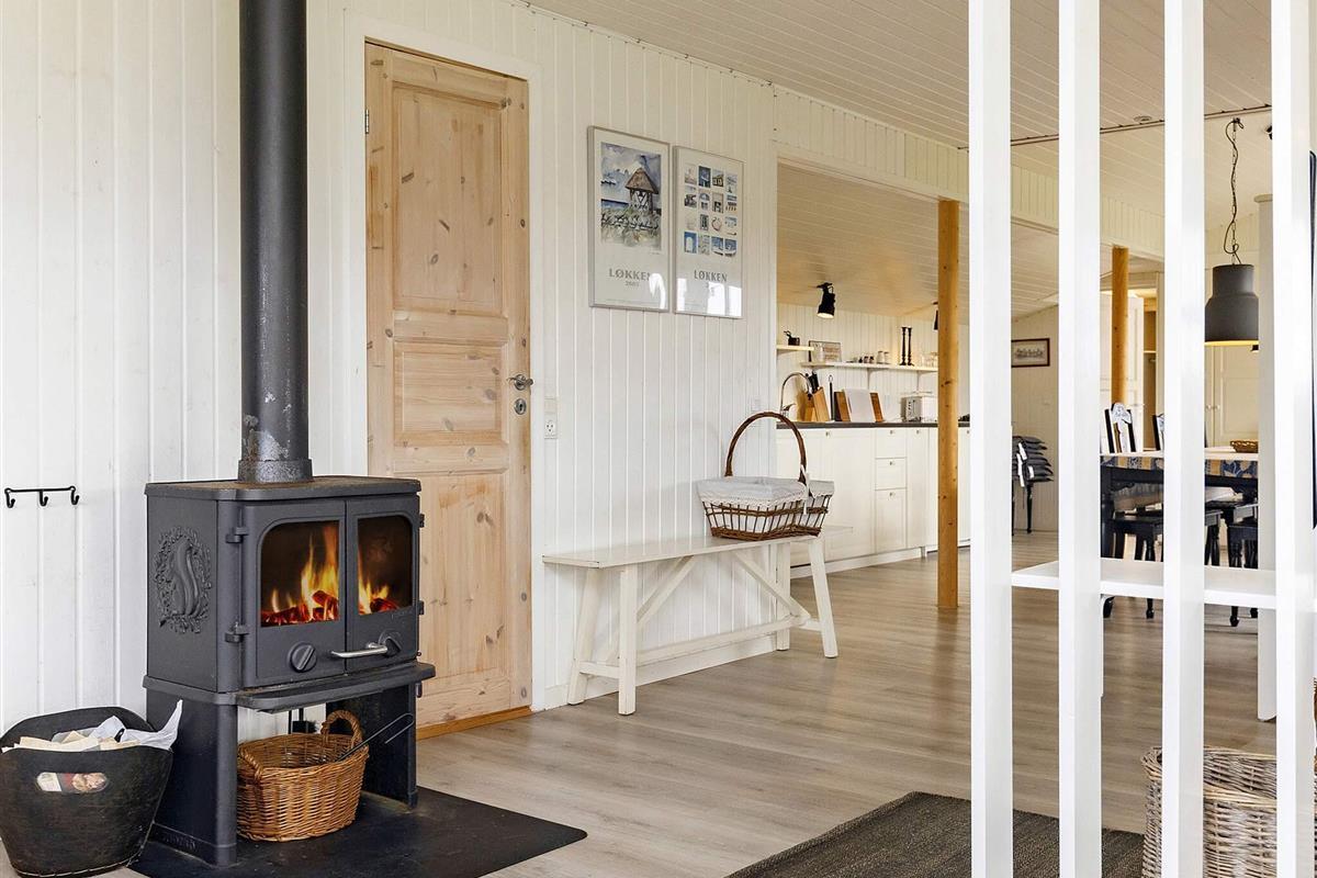 Helles Ferienhaus in Løkken, günstig gelegen in der Nähe von Stadt und Strand. Das Anwesen liegt auf einem großzügigen 3.000 m² großen Grundstück in einer ruhigen Ferienhaussiedlung und bietet viel Platz für Spaß, Spiele und gemeinsame Aktivitäten im Freien. Die Terrasse bietet sonnige und schattige Plätze sowie Schutz vor dem Wind und lädt zum gemeinsamen Essen und Entspannen am Gartengrill ein.