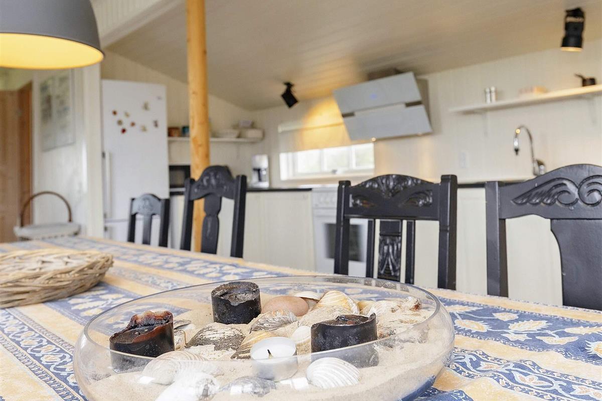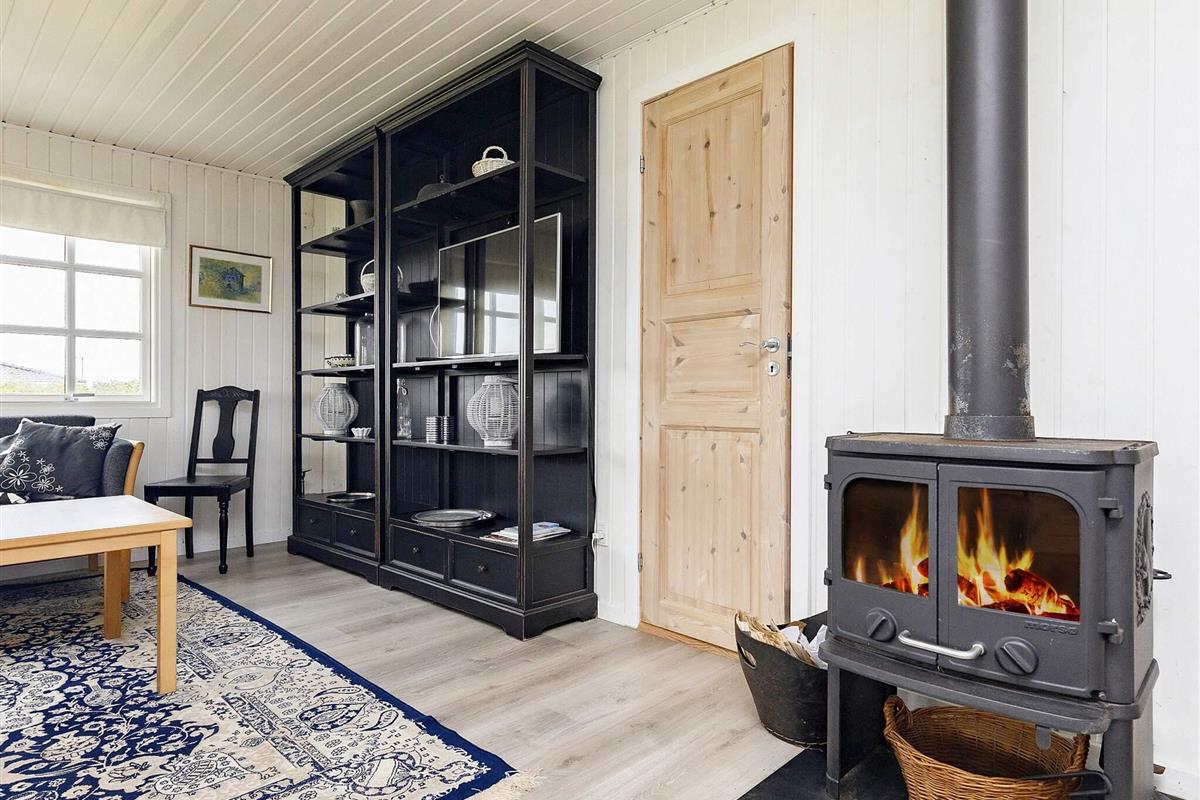 Im Inneren des Hauses herrscht eine warme und einladende Atmosphäre in Küche, Wohn- und Essbereich. Familien und Freunde können gemeinsam kochen, Brettspiele spielen oder einfach mit einem guten Buch am gemütlichen Holzofen entspannen. Im Wohnzimmer sorgt ein Fernseher für Unterhaltung und sorgt dafür, dass auch in der Freizeit jeder etwas zu tun hat.