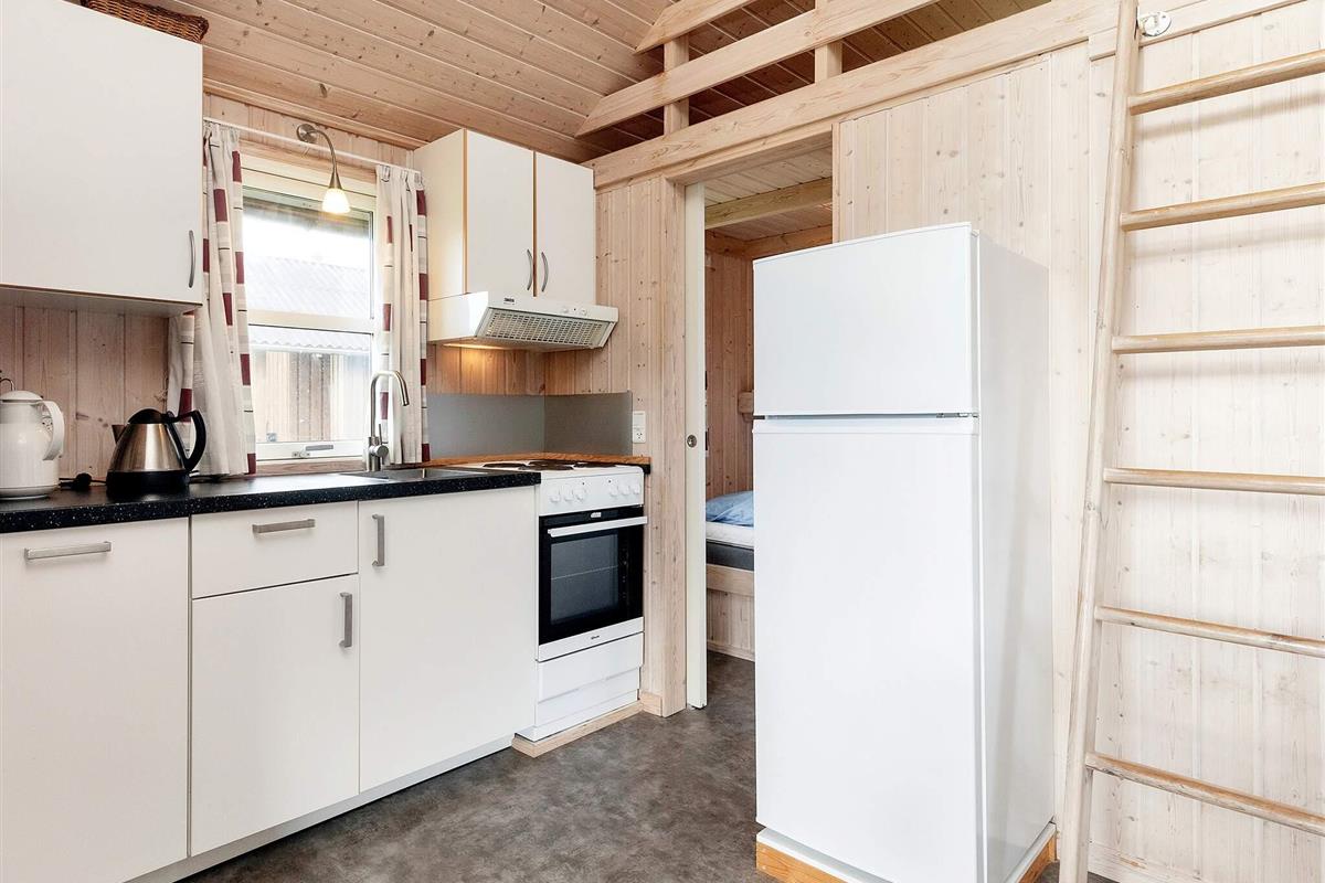 Das Ferienhaus in Dänemark ist für Familien und Gruppen geeignet und verfügt über zwei Doppelbetten und ein Etagenbett sowie ein gemeinsames Badezimmer, das von beiden Zimmern aus zugänglich ist, und eine teilweise überdachte Holzterrasse in Südlage. Das Ferienhaus kann bis zu 5 Personen gleichzeitig beherbergen, so dass Sie einen tollen Urlaub verbringen und sogar Ihre Haustiere zum Spielen mitbringen können. Der Gemeinschaftsbereich verfügt über einen Esstisch mit vier Sitzplätzen aus Holz neben einem luftigen Fenster, um das Abendessen mit einem herrlichen Blick nach draußen zu genießen.