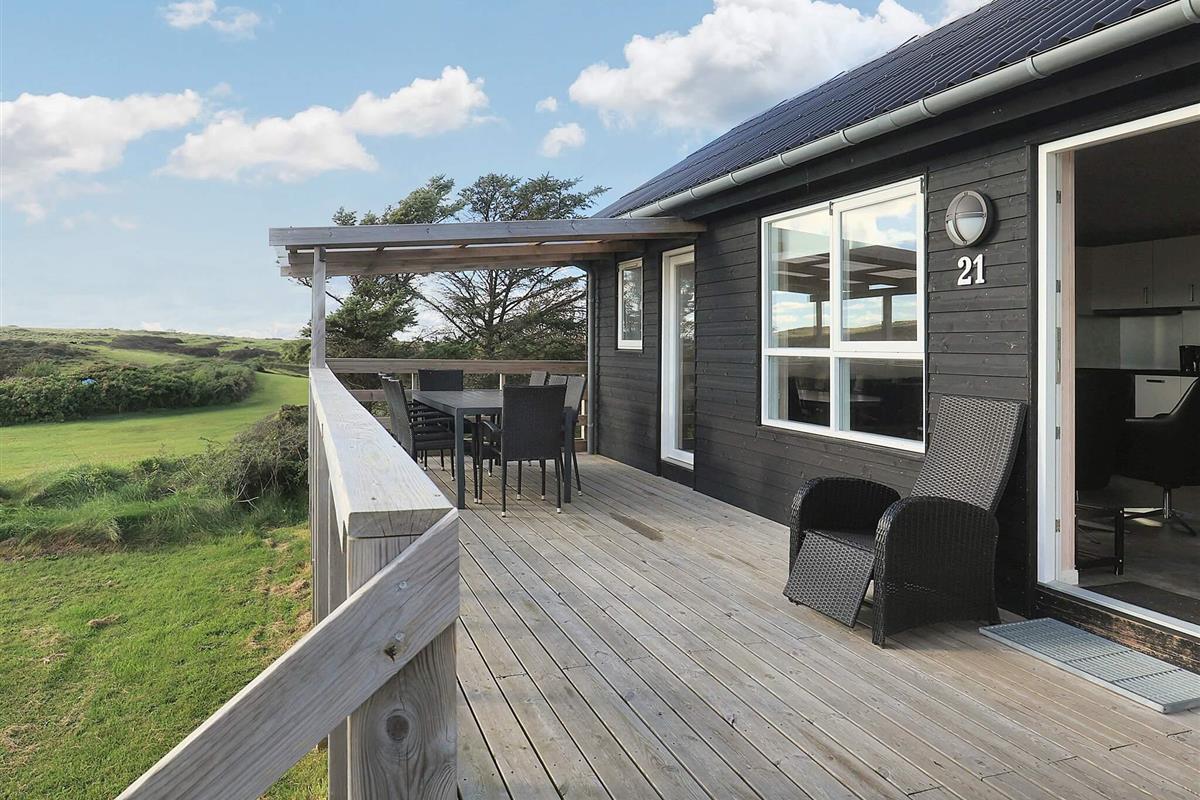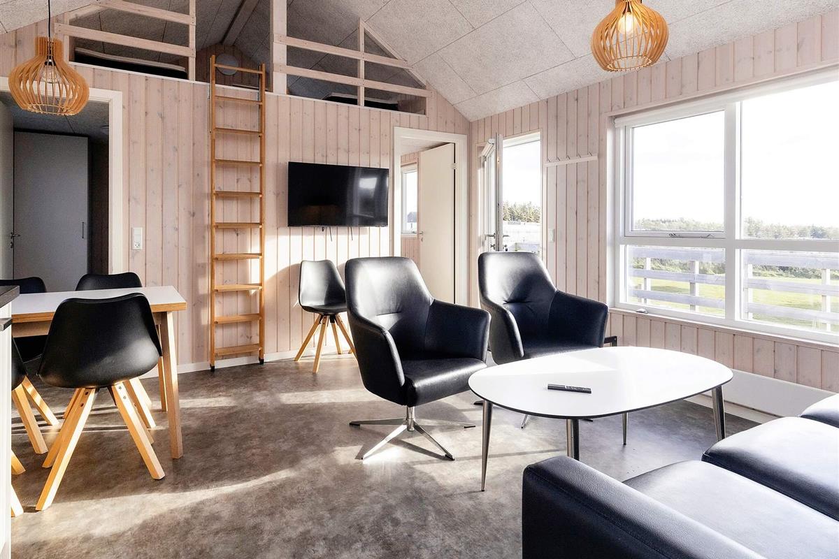Dieses Ferienhaus in Nordjütland, Dänemark, ist für 8 Personen geeignet und verfügt über zwei Doppelbetten, zwei Etagenbetten und zwei Zusatzbetten. Das minimalistisch gestaltete Wohnzimmer ist mit stilvollen Möbeln und einem Smart-TV mit WLAN ausgestattet, um Ihren Aufenthalt noch unterhaltsamer zu gestalten. Die vor kurzem renovierte, teilweise überdachte Terrasse bietet einen herrlichen Blick auf die üppige grüne Umgebung und macht den Aufenthalt noch entspannter.