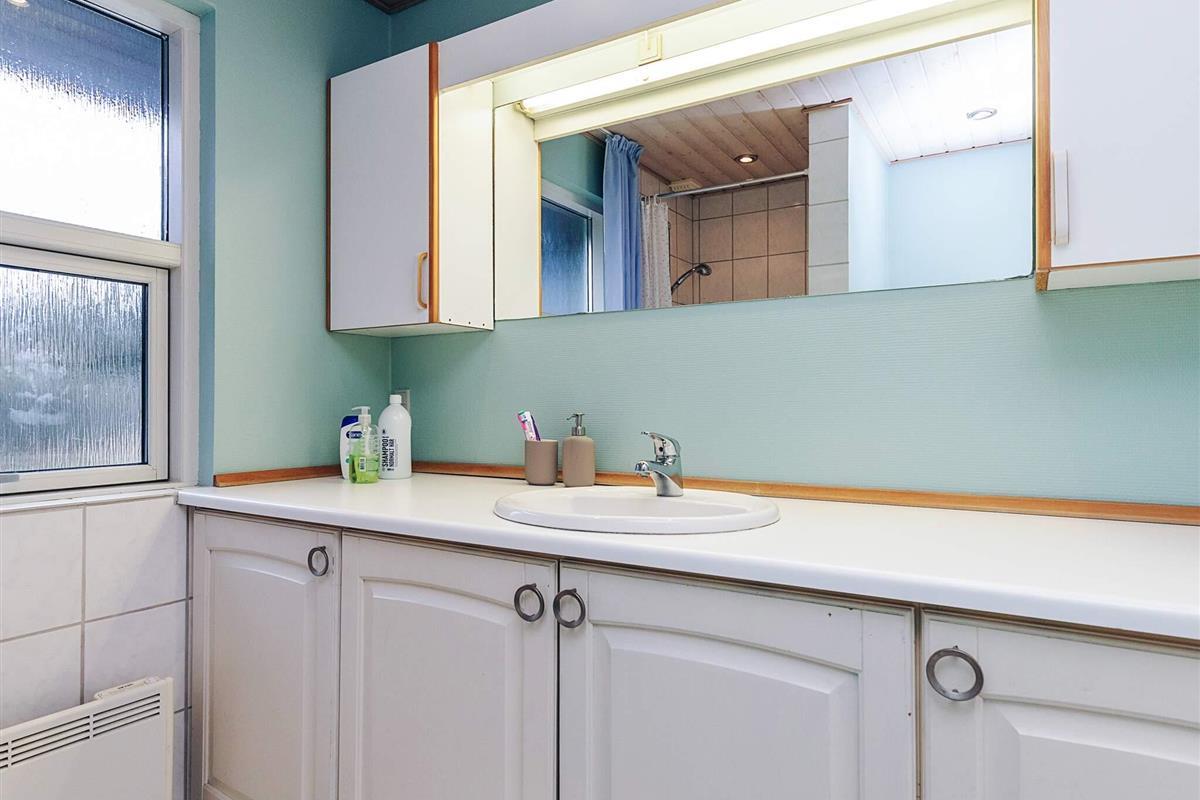 Das Haupthaus verfügt über zwei helle Schlafzimmer mit Doppelbetten, ein geräumiges Badezimmer, eine gut ausgestattete Küche und ein offenes Wohn-/Esszimmer, das einen gemütlichen Treffpunkt für alle bietet. Der offene Raum bietet viel Platz für gemeinsame Aktivitäten wie Brettspiele, Fernsehen und Gespräche. Die Küche ist mit allem ausgestattet, was man braucht, um leckere Mahlzeiten zuzubereiten, wenn man selbst etwas kochen möchte. Von einem kleinen Flur aus erreichen Sie die Schlafzimmer und das Badezimmer.