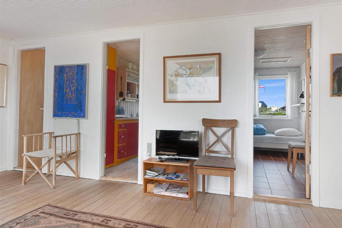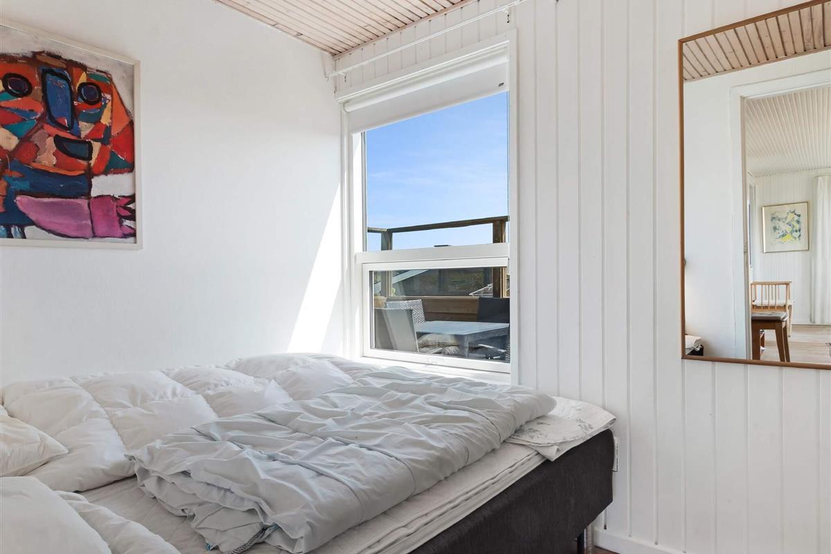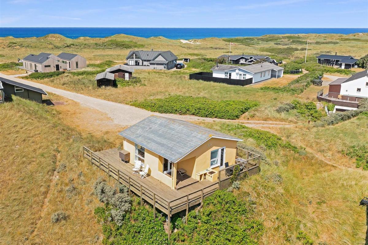 Dieses hübsche Ferienhaus ist kein modernes Monster, sondern ein echtes Cottage mit Platz für 5 Leute in 3 Schlafzimmern. Es ist ein traditionelles und echt gemütliches Haus, und wie gesagt, die Aussicht ist einfach beeindruckend, und die Lage ist nah an der Stadt und am Strand. Neben den drei Schlafzimmern sind auch die anderen Räume super gemütlich – Küche, Wohnzimmer/Familienzimmer und Toilette mit Dusche. Es gibt eine Terrasse, die fast um das ganze Haus herumgeht, wo du die tolle Natur der Jomfru-Hügel genießen kannst.