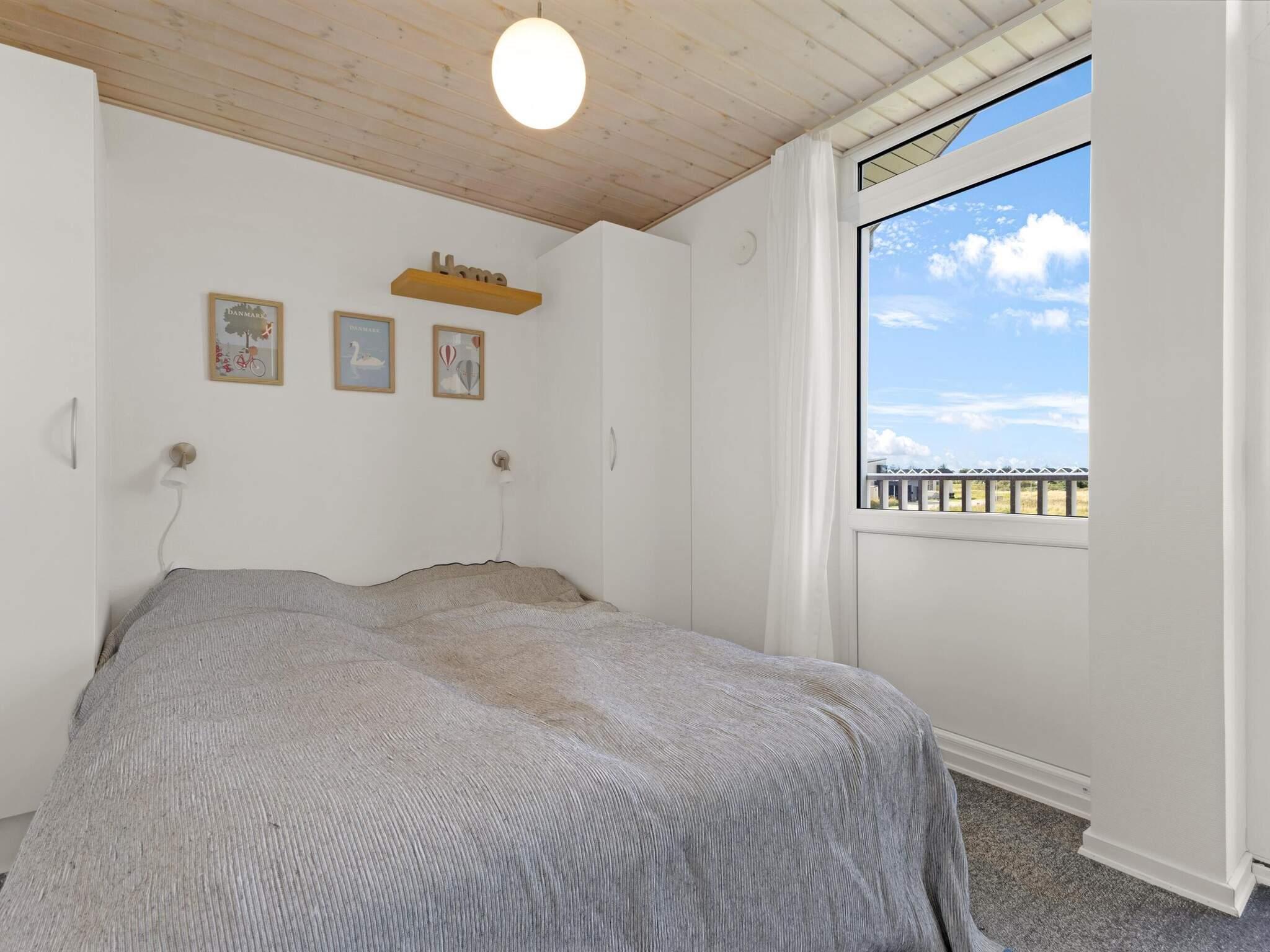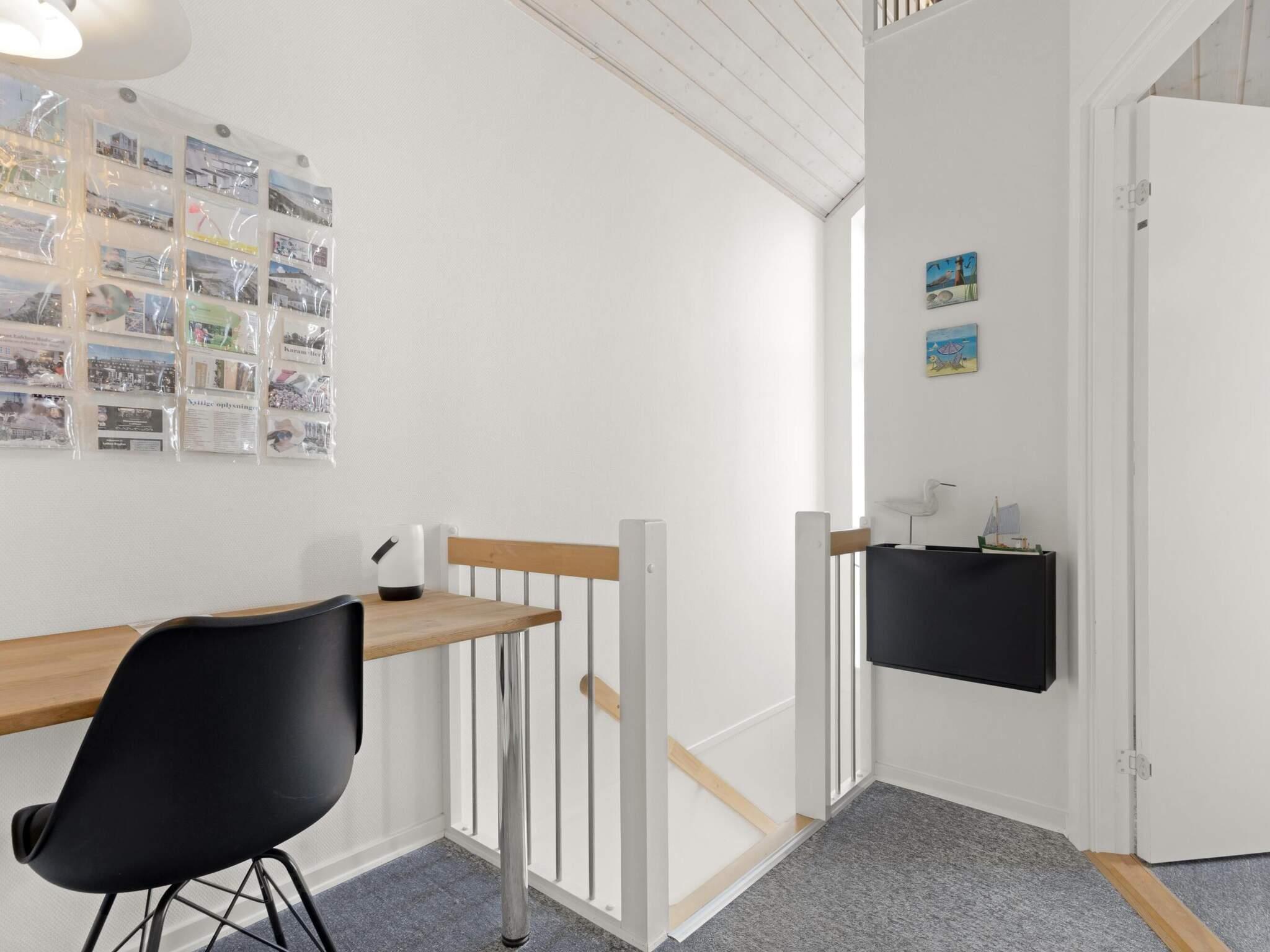 In der oberen Etage befinden sich die beiden Schlafzimmer mit Doppelbett und Zugang zu einem Balkon. Von dort hat man Ausblick zum Bolzplatz der Ferienhausanlage. Oben gibt es zudem einen offenen Hems mit zwei weiteren Schlafplätzen auf Matratzen.