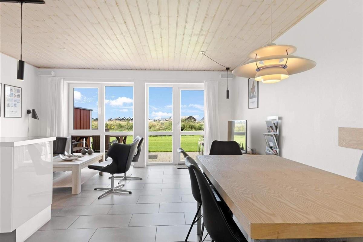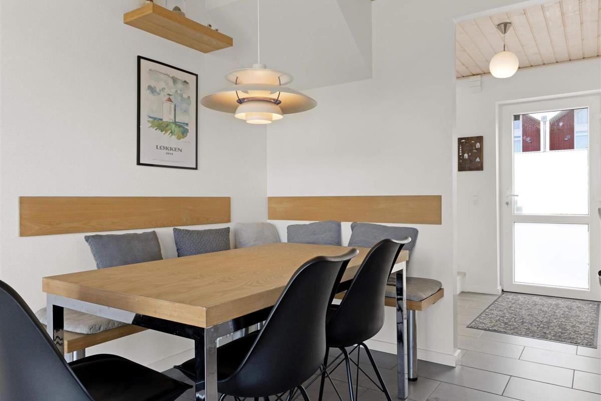 Außenbereich: Das Ferienhaus liegt neben anderen typischen zweistöckigen Häusern in einer ruhigen Gegend, sodass es keinen starken Verkehr oder ähnliche Störungen gibt. Der Strand ist etwa 1,2 Kilometer entfernt, Einkaufsmöglichkeiten und das Stadtzentrum von Løkken sind 500 Meter entfernt.