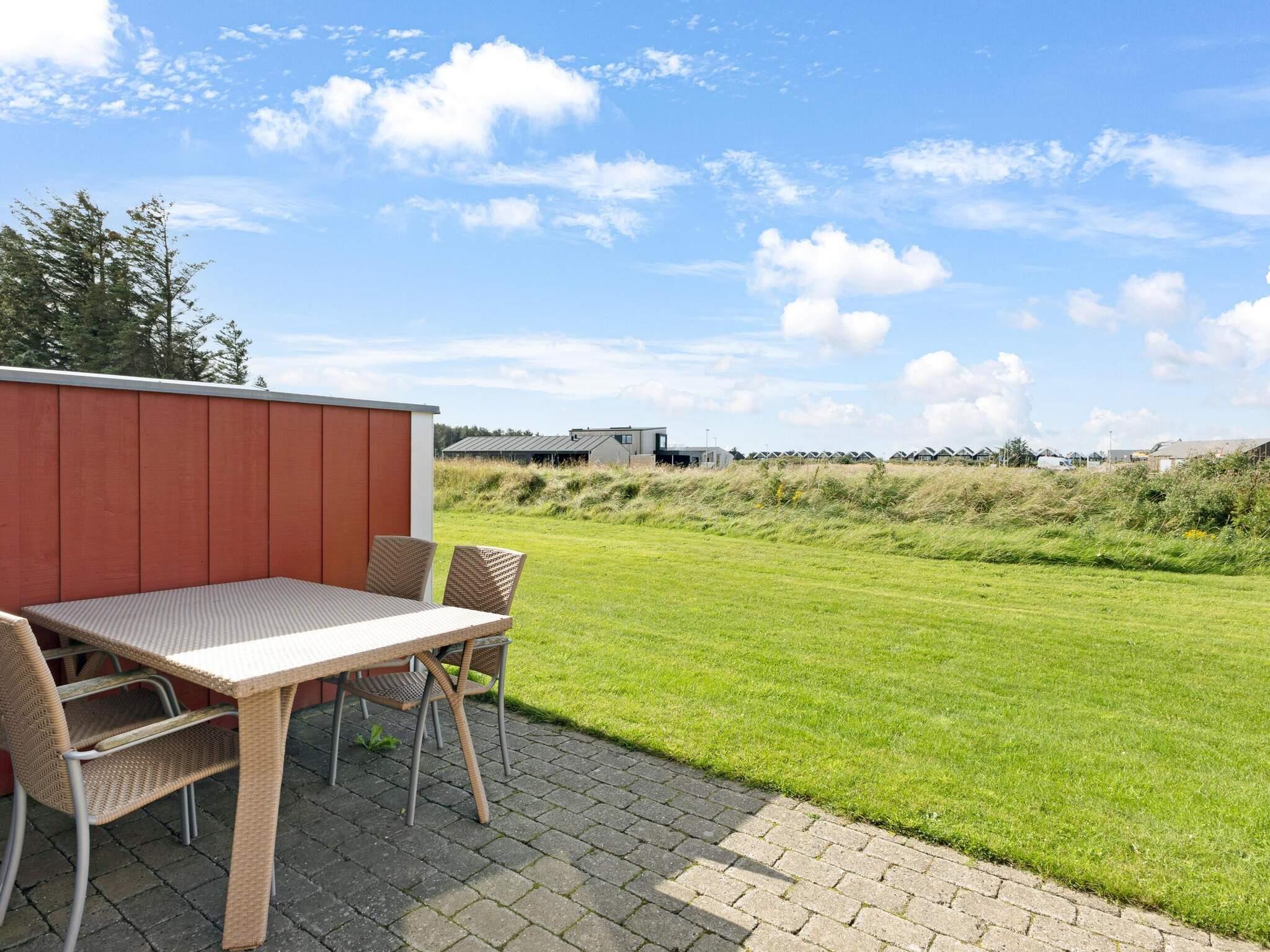 Das Ferienhaus steht zusammen mit den weiteren typischen, zweistöckigen Ferienhäusern in einer abgeschiedenen Nachbarschaft, sodass es keinen starken Verkehr oder ähnliches gibt. Ca. 1,2 km Entfernung zum Strand und 500 m zu Einkaufsmöglichkeiten und zum Zentrum von Løkken.
