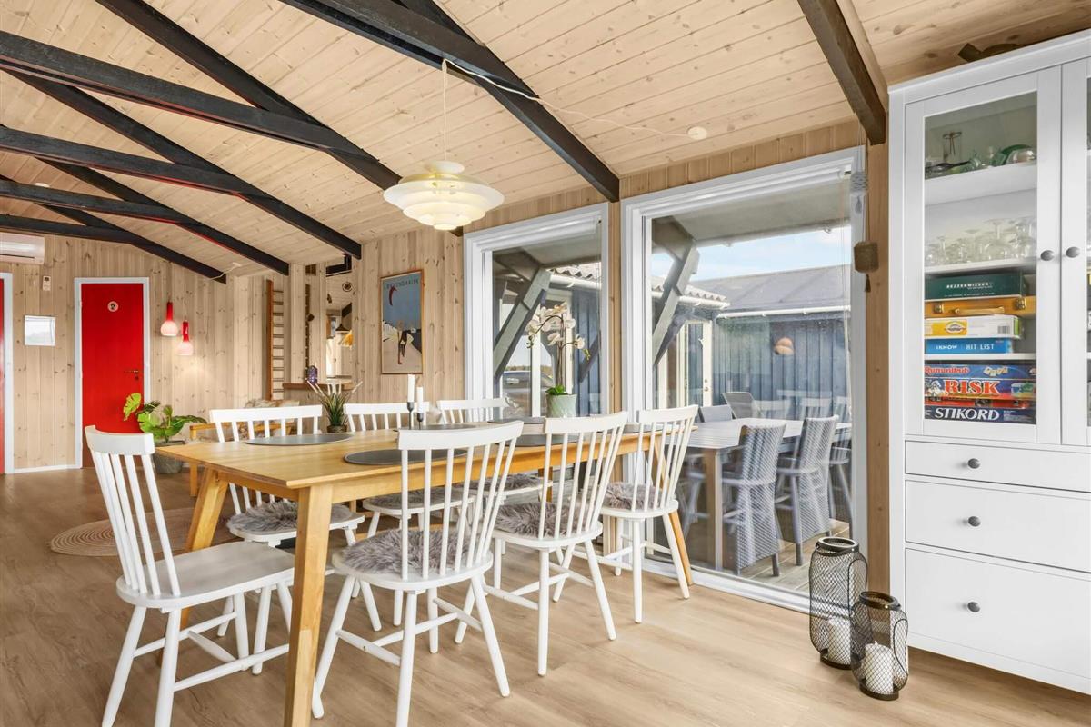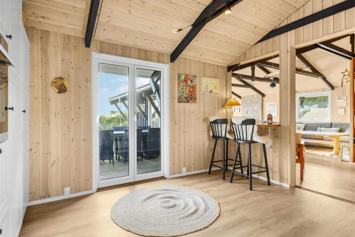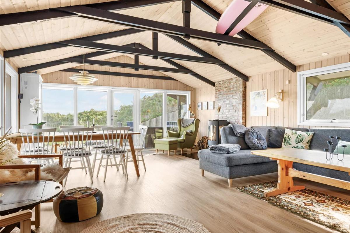 Dieses Ferienhaus bietet auf 125 Quadratmetern Platz für bis zu 10 Leute. Das Haus ist ein traditionelles Ferienhaus und hat 1 Badezimmer, 2 Toiletten, ein schwedisches Bad und eine Außendusche. Eine Sauna ist im Bau. Für alle, die bestimmte Serien verfolgen, gibt es zusätzlich zu Chrome Cast den Luxus von kostenlosem Netflix und HBO. Du kannst dich am Holzofen entspannen, und es gibt auch einen Heizlüfter. Das Haus liegt am Ende einer Sackgasse und hat gute Parkmöglichkeiten. Wie schon erwähnt, ist der Stil traditionell dänisch gemütlich, und es gibt viele Möglichkeiten, deinen Urlaub sowohl draußen auf den schönen Terrassen als auch drinnen zu genießen.