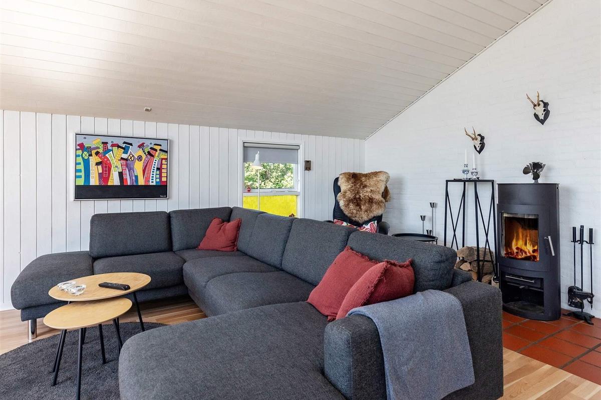 In diesem Ferienhaus finden Sie genau das vor, was Sie für einen Urlaub mit 8 Personen mitten im malerischen Nr. Lyngby! Das Haus verfügt über 4 Schlafzimmer mit 2 Doppelbetten und 4 Einzelbetten - plus 2 zusätzliche Schlafplätze oben auf dem gemütlichen Dachboden. Es gibt 2 Badezimmer, einen Whirlpool und eine Sauna im Haus. Die Essecke ist äußerst gemütlich und steht in offener Verbindung mit dem Wohnbereich, wo Sie vor dem Fernseher oder dem Holzofen – alternativ draußen auf der schönen Terrasse davor – entspannen können! Es ist ein Haus mit vielen gemütlichen Ecken, die zu einem wunderschönen Urlaub einladen!