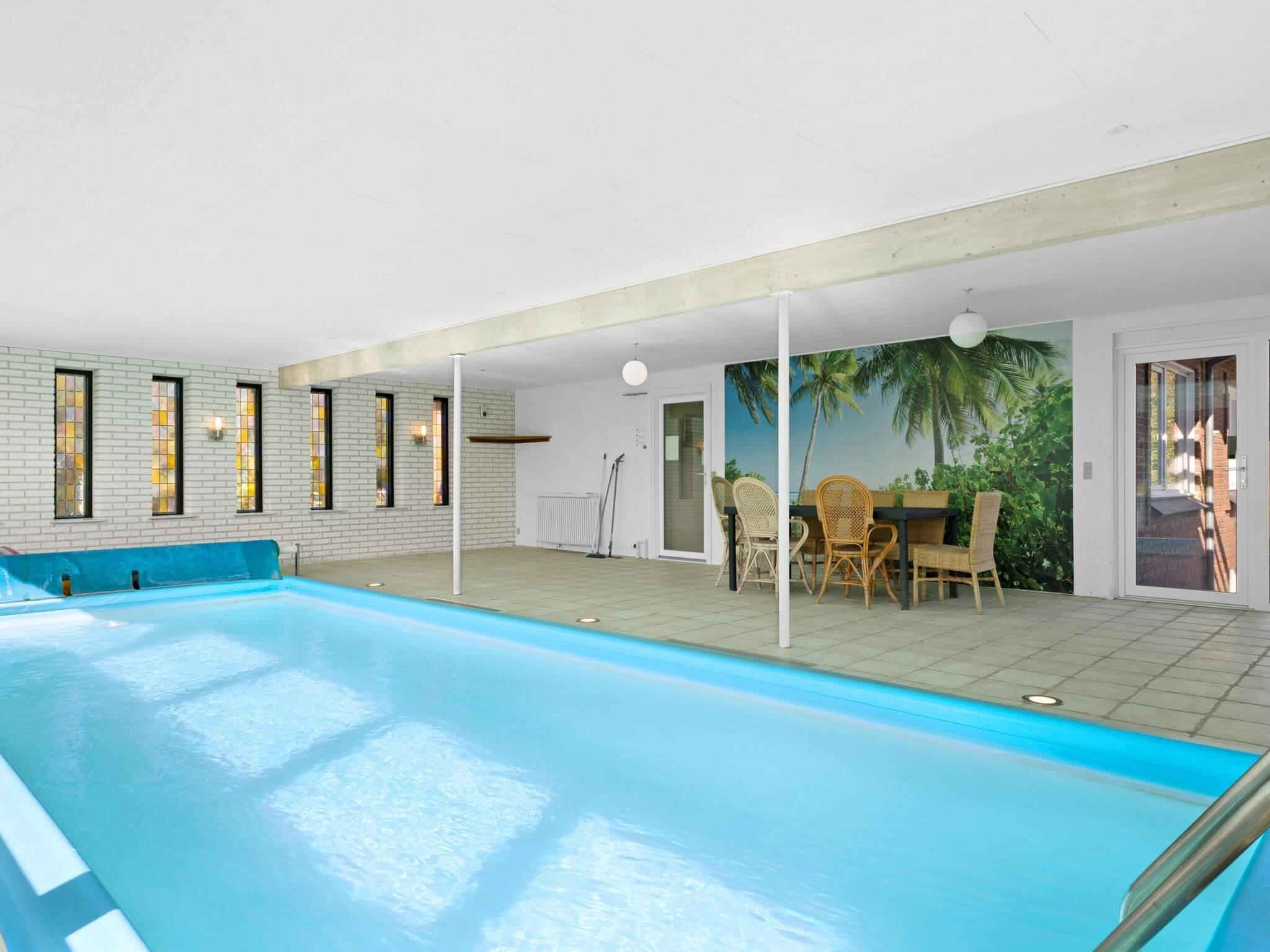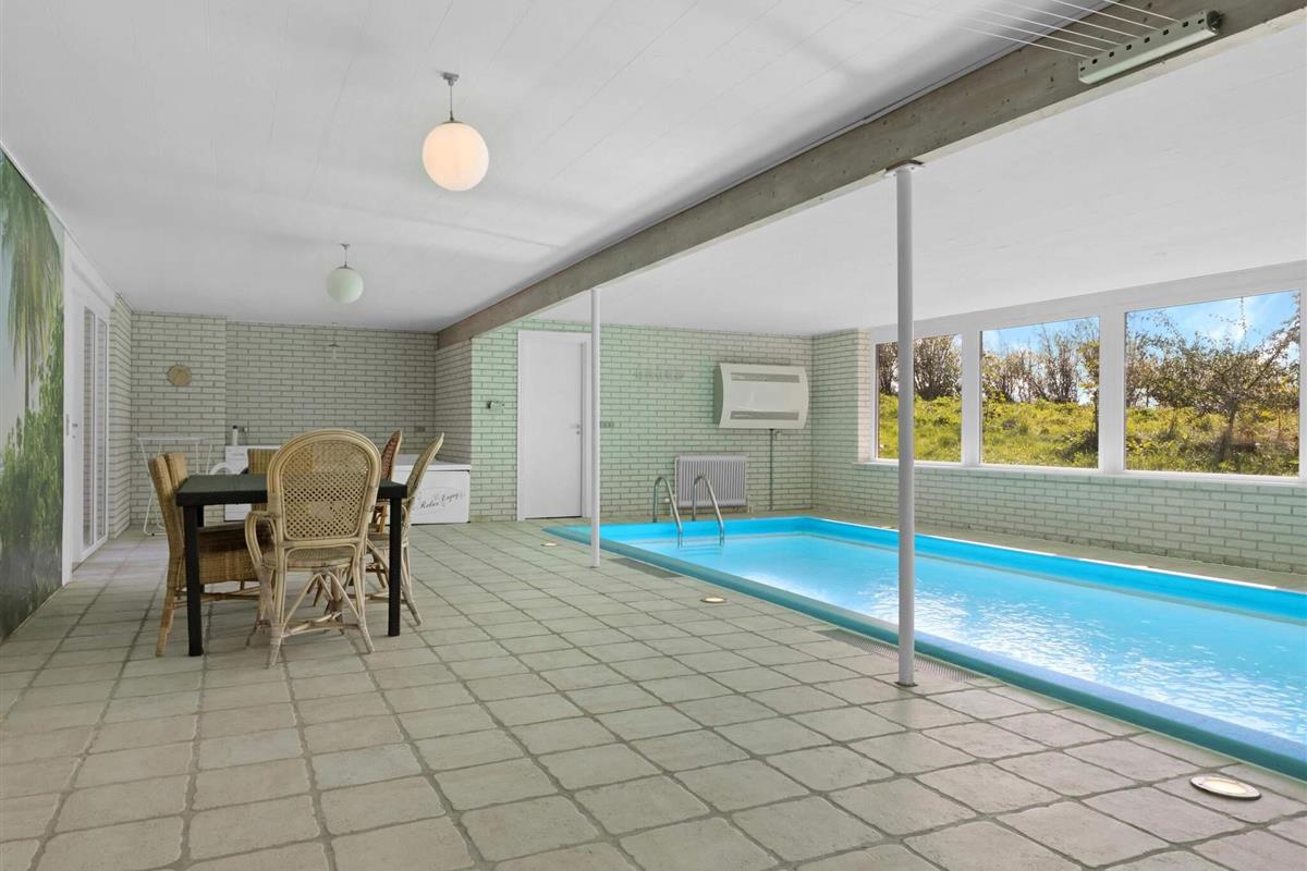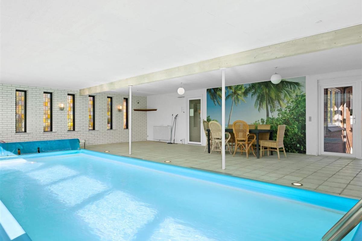Dieses große Ferienhaus mit Pool, Whirlpool und Sauna bietet auf zwei Etagen Platz für bis zu 12 Personen. Im Erdgeschoss gibt's einen Poolbereich mit Pool, Whirlpool, Sauna und Bad. Außerdem gibt's eine Küche, eine Toilette und einen großen Gemeinschaftsraum, wo man essen und chillen kann, sowie Schlafzimmer mit 2 Etagenbetten und 4 Doppelbetten. Im Dachgeschoss gibt's weitere Schlafzimmer, ein Badezimmer und einen Wintergarten. Das Haus ist nicht modern oder minimalistisch, aber sehr gemütlich und komfortabel. Der große Pool ist das Herzstück für Badespaß und Familienleben!