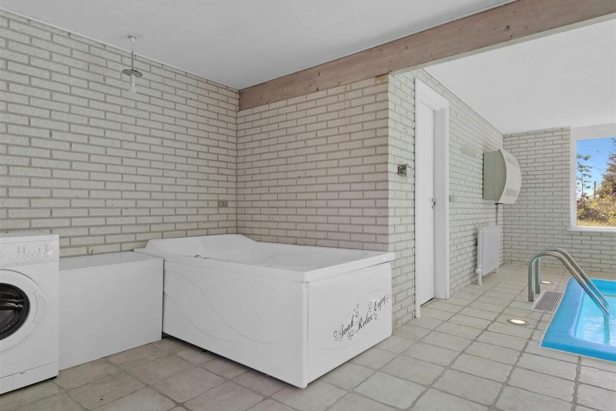 Dieses große Ferienhaus mit Pool, Whirlpool und Sauna bietet Platz für bis zu 12 Personen, verteilt über zwei Etagen des Hauses. Das Erdgeschoss besteht aus einem Poolbereich mit Pool, Whirlpool, Sauna und Badezimmer. Außerdem Küche, WC und einem großen Gemeinschaftsraum mit Platz zum Essen und geselligen Beisammensein sowie Schlafzimmern. Im Dachgeschoss befinden sich weitere Schlafzimmer und ein Badezimmer sowie ein Wintergarten. Das Haus ist kein modernes und minimalistisches Haus, dafür sehr gemütlich und wohnlich. Der große Pool bildet den Mittelpunkt für Badespaß und Familienleben!