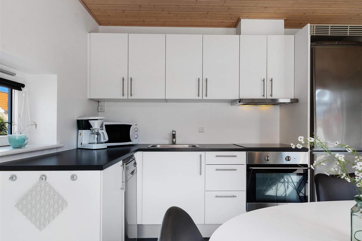 Ferienwohnung im Zentrum des Ferienortes Løkken. Die Ferienwohnung ist 74 m2 groß und erstreckt sich über zwei Etagen. Ein Schlafzimmer mit Doppelbett sowie eine doppelte Schlafcouch im Wohnzimmer bieten Platz für insgesamt 4 Personen. Im Parterre der Wohnung befinden sich das Badezimmer und die schöne Küche. Oben im ersten Stock gibt es ein wirklich schönes Wohnzimmer. Außerhalb der Wohnung findet man eine schöne, geschützte Terrassenfläche, auf der Sie den Urlaubstag in der Sonne verbringen können.