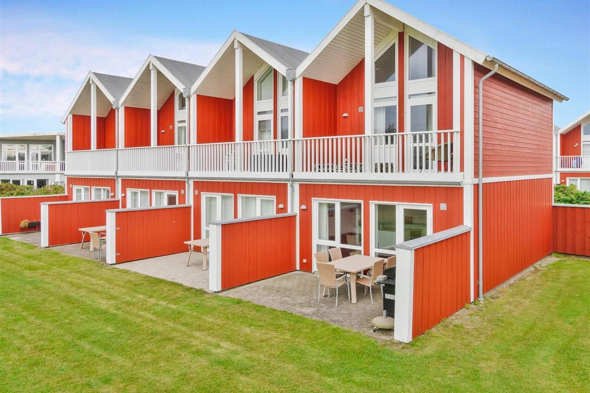 Außenbereich: Das Ferienhaus liegt zusammen mit den weiteren Reihenhäusern dieses Typs in einer abgeschiedenen Nachbarschaft ohne Durchgangsverkehr o.Ä. Es sind etwa 1,2 km zum nächsten Strandufer und nur ca. 500 m zu Einkaufsmöglichkeiten und zum Zentrum von Løkken.