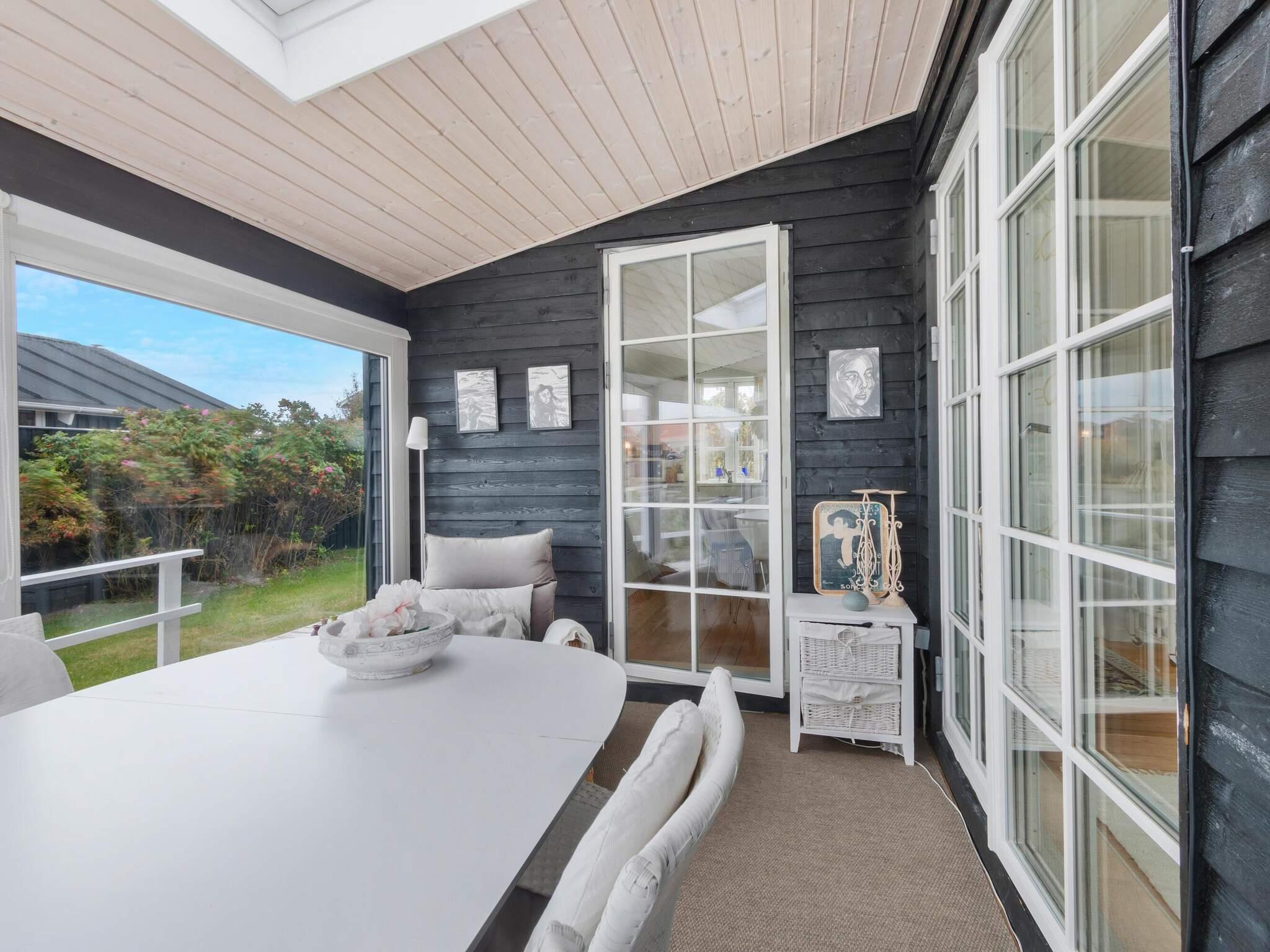 Im Inneren des Hauses gibt es eine schöne Raumaufteilung mit einem offenen Küchen-/Wohnbereich für das Familienleben sowie einem hellen Wintergarten, wo Sie unter Dach sitzen und die Aussicht genießen können. Es gibt 2 Schlafzimmer mit Platz für 4 Personen0 und ein Bad mit angenehmer Fußbodenheizung. Das Ferienhaus ist in einem schönen, hellen Stil gehalten. Zudem sind zwei Stellplätze am Haus vorhanden.
