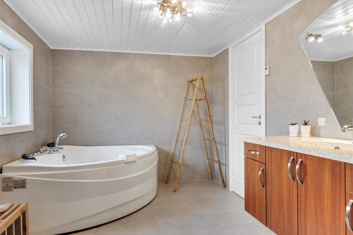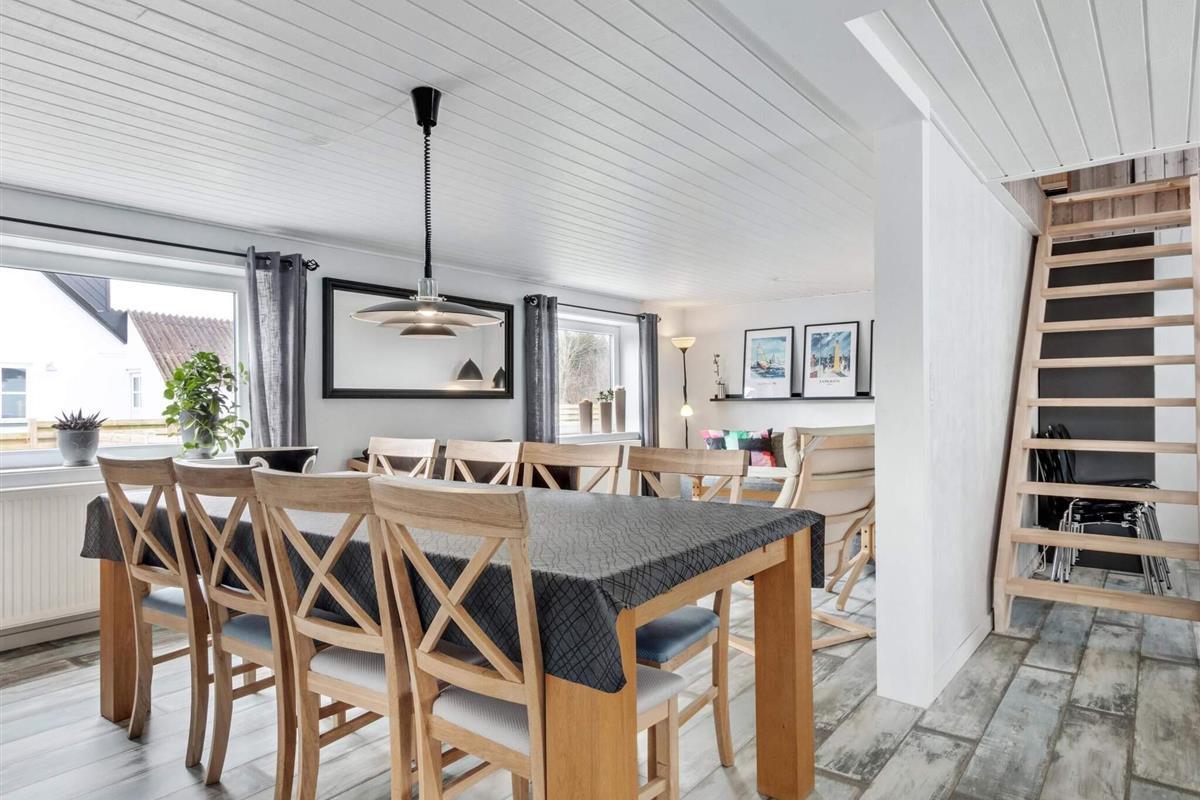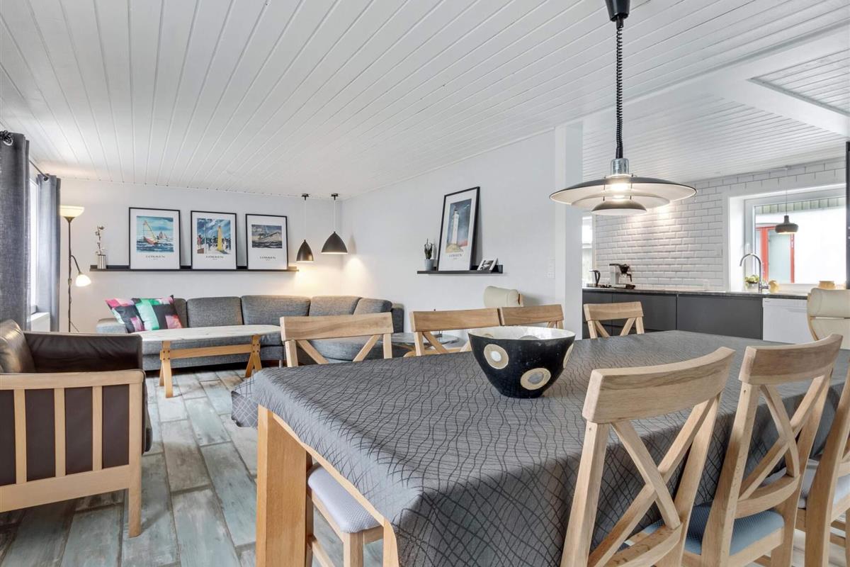 Dieses große und frisch renovierte Ferienhaus im gemütlichen Ingstrup bietet viel Platz und moderne Annehmlichkeiten für einen komfortablen Aufenthalt. Auf 130 Quadratmetern gibt's vier Schlafzimmer, drei Toiletten und zwei Badezimmer, von denen eins mit einem entspannenden Spa ausgestattet ist. Das Haus wird mit Fernwärme beheizt, die in Ingstrup günstig ist und das ganze Jahr über für Komfort sorgt. Die offene Küche und das Familienzimmer, die nahtlos mit dem Ess- und Wohnbereich verbunden sind, schaffen eine einladende Atmosphäre, in der sich alle treffen und die Gesellschaft der anderen genießen können.