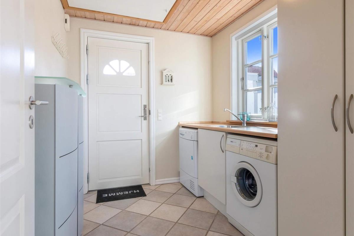 Es gibt ein schönes Schlafzimmer im Erdgeschoss und zwei Schlafzimmer im ersten Stock des Hauses, wo es auch charmante schräge Wände gibt. Im ersten Stock gibt es eine Gästetoilette und im Erdgeschoss eine Toilette in Verbindung mit dem Badezimmer des Hauses. Du kannst bequem durch den Hauswirtschaftsraum eintreten – egal, ob du Sand oder Schnee nicht mit ins Haus bringen möchtest, oder du kannst den super charmanten Eingangsbereich neben der Haustür nutzen. Das Haus bietet Platz für bis zu 6 Personen und zwei Haustiere sind erlaubt.