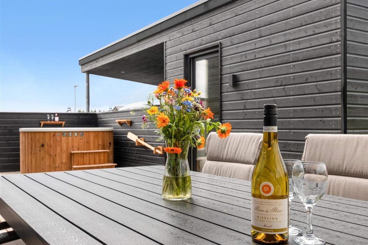 Außenbereich: Von der Küche und dem Wohnzimmer aus hat man Zugang zur schönen, großen Terrasse des Hauses, wo Sie die sonnigen Tage in vollen Zügen genießen können. Die Lage des Hauses, ganz in der Nähe des Zentrums von Løkken und der Nordsee, bedeutet, dass Sie kurze Wege haben und dennoch in guter Entfernung vom Verkehr und dem Lärm des Stadtlebens wohnen. Natürlich gibt es Gartenmöbel und einen Grill am Haus, dazu einen Badezuber.