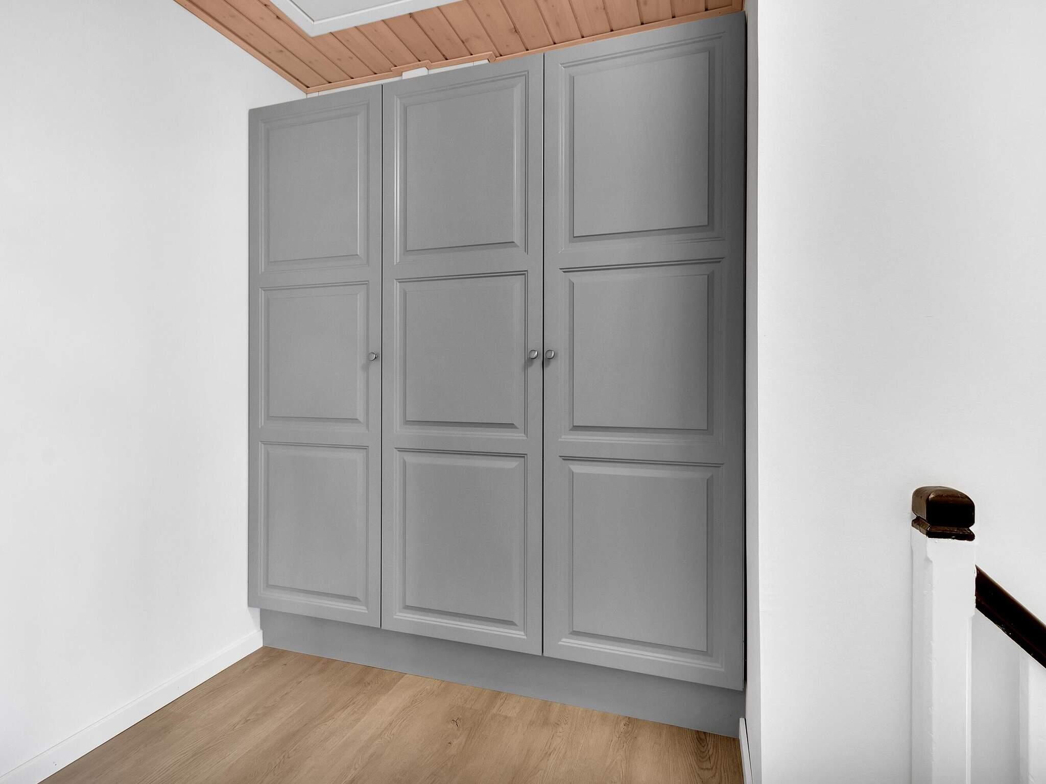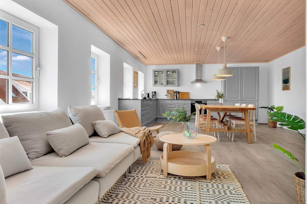 Die Wohnung hat drei Schlafzimmer mit Doppelbett in jedem Zimmer. Eines der Zimmer bietet Zugang zu einem kleinen Balkon. Es gibt ein Bad mit Dusche sowie eine schöne, helle und offene Wohnküche, die mit dem Wohnzimmer offen verbunden ist. Die Wohnung ist 109 m2 groß und befindet sich im ersten Stock.