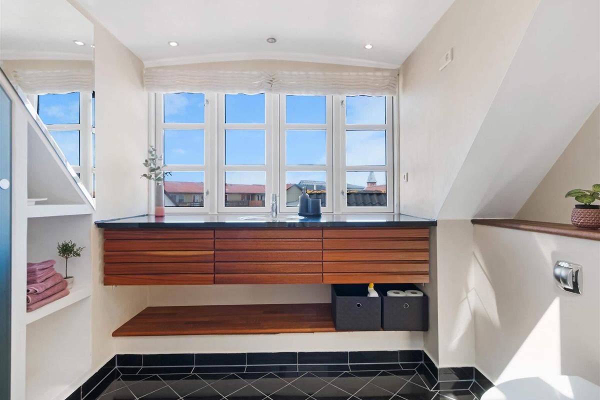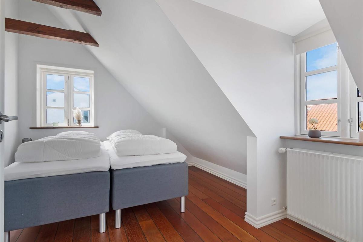 Doppeltüren von der Küche führen auf eine große Terrasse und in einen relativ privaten Garten, der sich perfekt eignet, um den dänischen Sommer zu genießen. Trotz seiner zentralen Lage ist das Haus in angenehmer Entfernung zum Verkehr und Lärm, während du den Strand, Geschäfte und Restaurants bequem erreichen kannst.