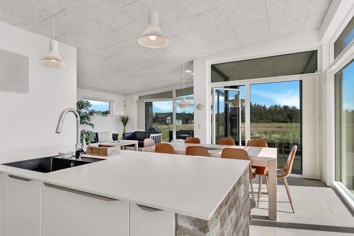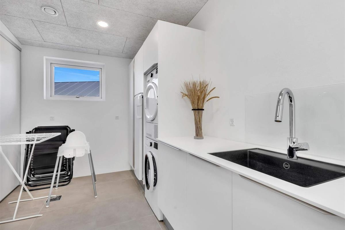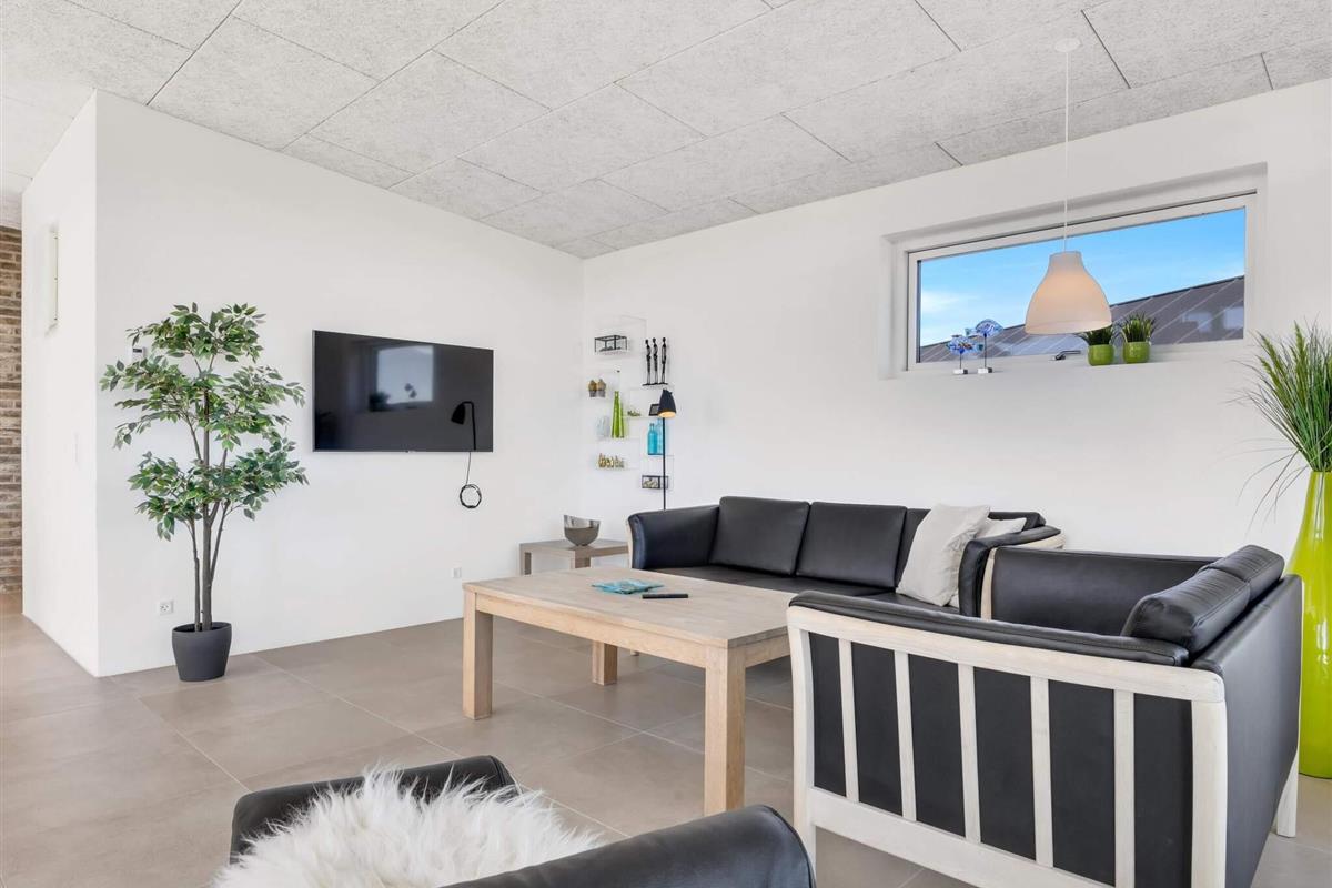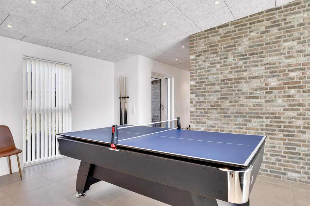 Attraktives, modernes Ferienhaus von 2022 für bis zu 8 Personen und 1 Kind unter 3 Jahren. Innen erwarten Sie helle Räumlichkeiten und der typisch skandinavische, schlichte und helle Stil mit wohnlicher Atmosphäre. Die beiden Badezimmer sind geräumig und modern. Die Küche und der Wohnbereich sind offen und somit ideal für das Familienleben. Dazu gibt es einen Aktivitätsraum mit Billard und Tischtennis für den Freizeitspaß.