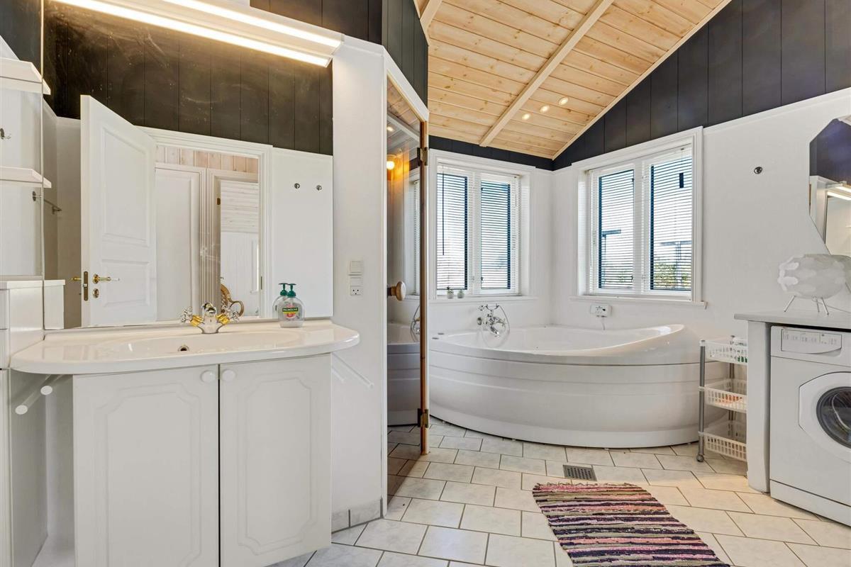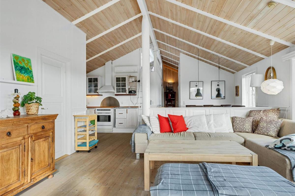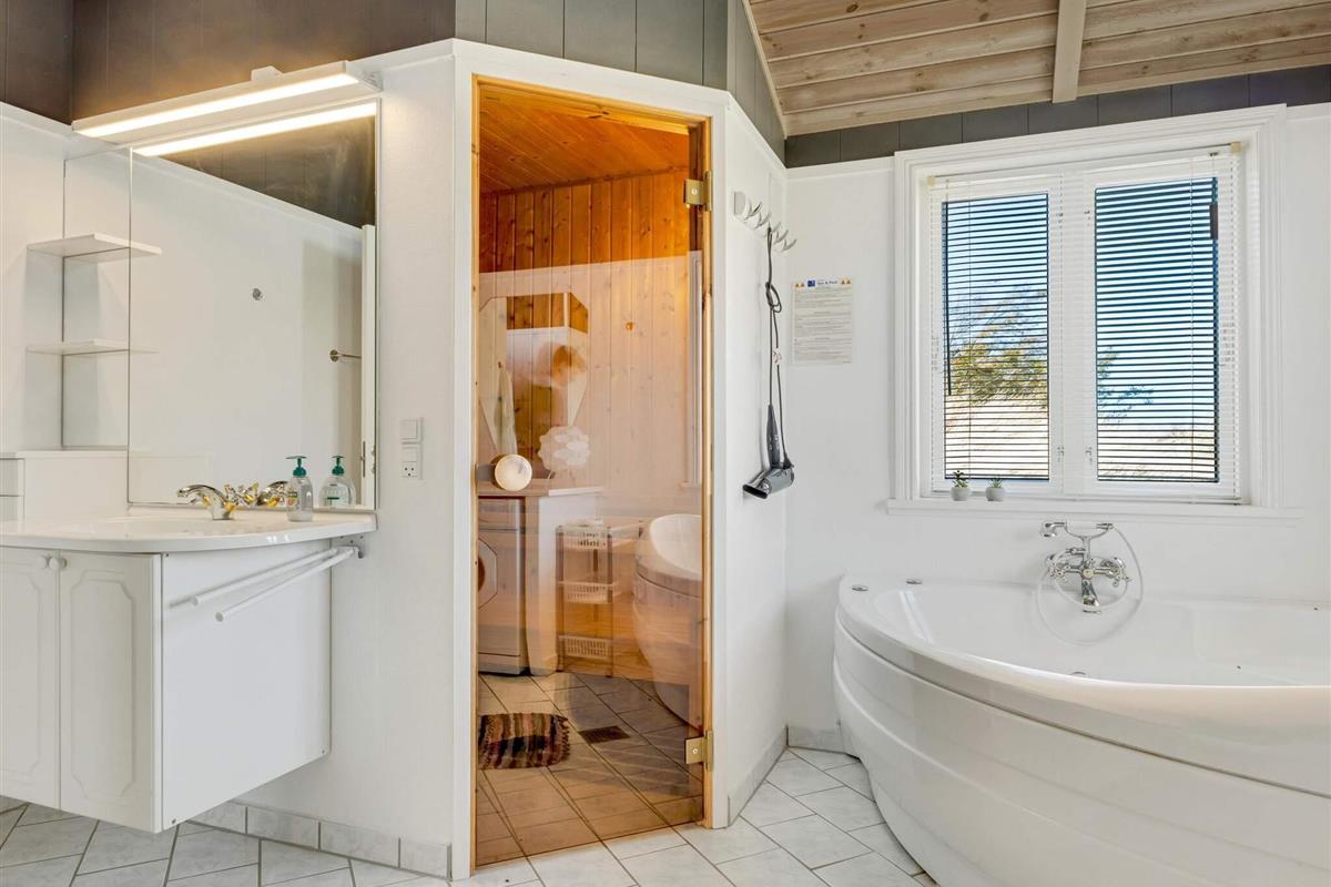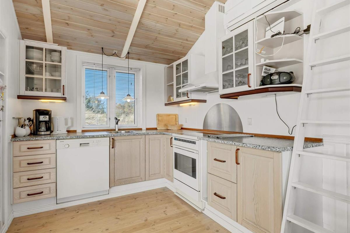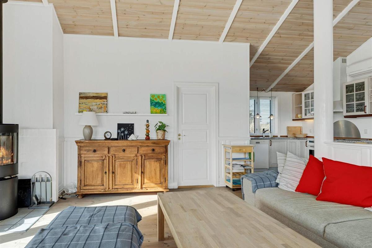 Außenbereich: Das Ferienhaus befindet sich auf einem 2.674 m2 großen und hügeligen Naturgrundstück. Die Umgebung ist ruhig und erholsam und der Strand ist nur 375 m entfernt. Wenn Grønhøj Strand Købmand geöffnet ist, haben Sie Einkaufsmöglichkeiten im Umkreis von ca. 350 m. Das Ferienhaus bietet schöne Terrassen, von denen eine überdacht ist, und hier können Sie stundenlang verweilen.
