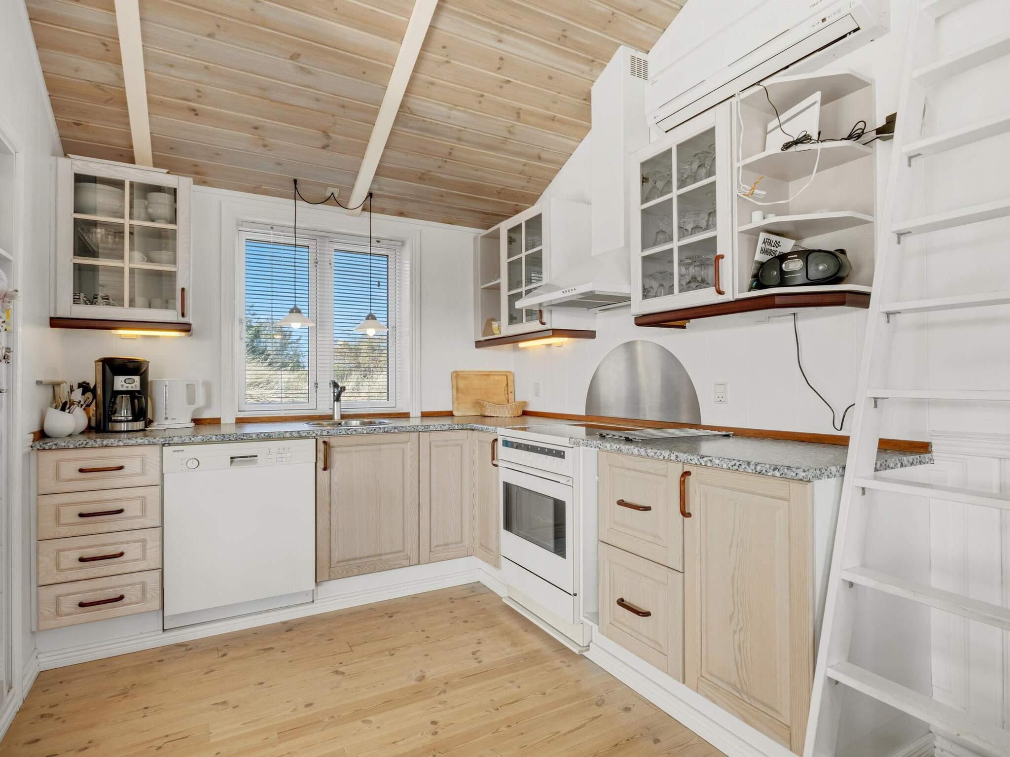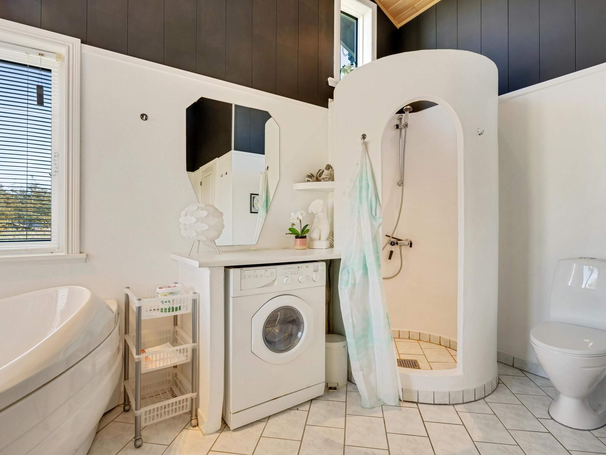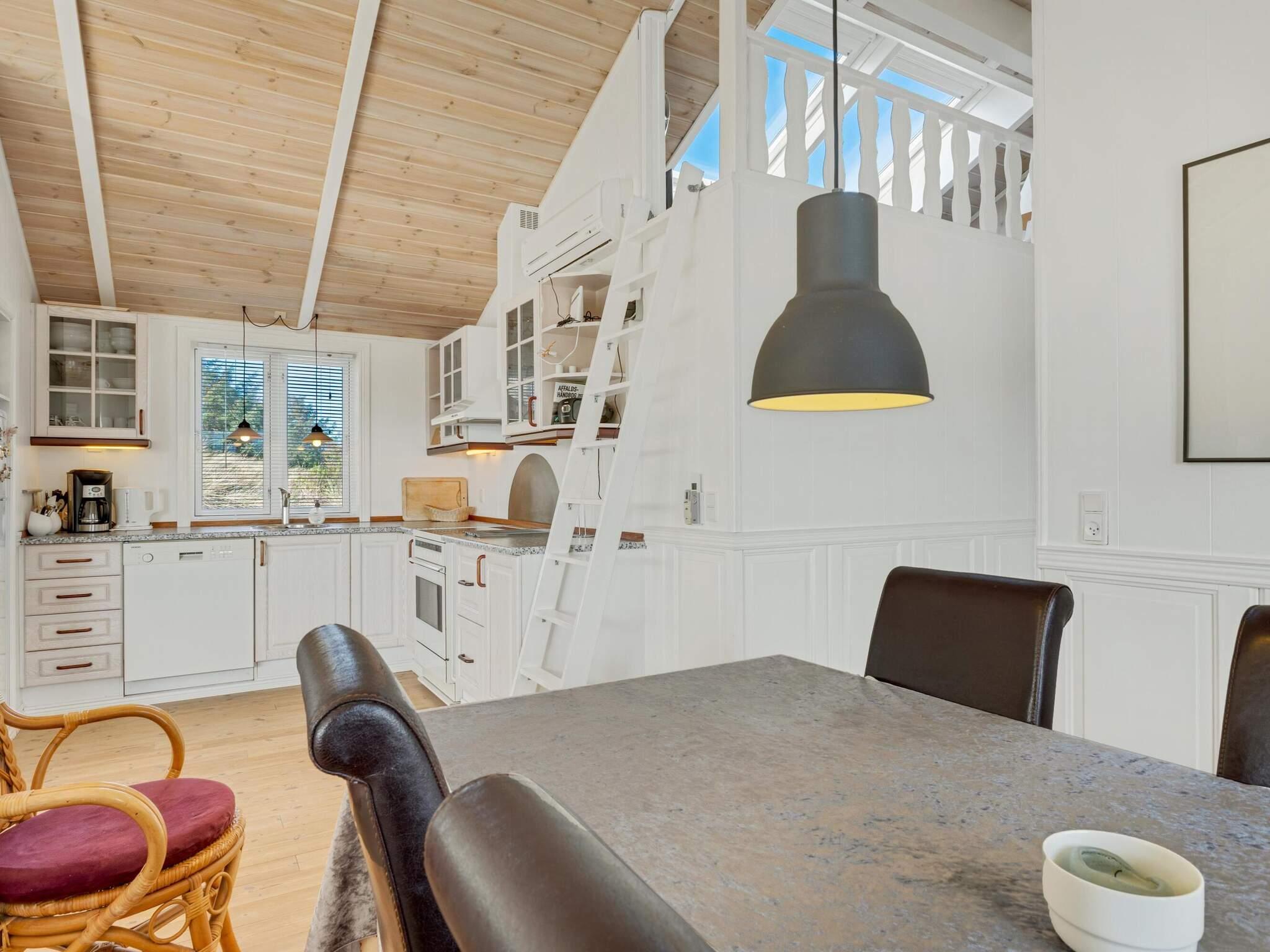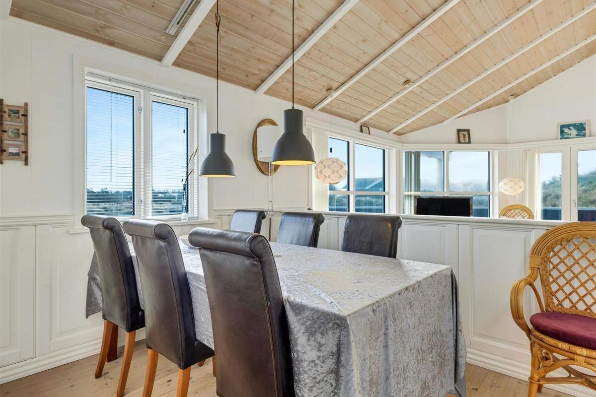 Außenbereich: Das Ferienhaus befindet sich auf einem 2.674 m2 großen und hügeligen Naturgrundstück. Die Umgebung ist ruhig und erholsam und der Strand ist nur 375 m entfernt. Wenn Grønhøj Strand Købmand geöffnet ist, haben Sie Einkaufsmöglichkeiten im Umkreis von ca. 350 m. Das Ferienhaus bietet schöne Terrassen, von denen eine überdacht ist, und hier können Sie stundenlang verweilen.