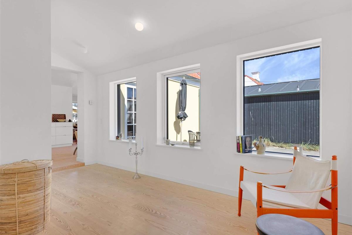 Nordre Strandvej 3A – wunderschönes Sommerhaus mitten in Løkken Es liegt nicht nur 100 Meter vom Strand entfernt und mitten im Zentrum, sondern hat auch eine super charmante Treppe und einen schönen Eingangsbereich. Danach kommt ein echt gemütliches Wohnzimmer mit heller, offener Küche, Familienzimmer und Wohnzimmer. Die Aufteilung des ganzen Hauses lädt sowohl zu gemeinsamen als auch zu individuellen Aktivitäten ein – von gemütlichen Fernseh-Ecken bis hin zum einladenden Loungebereich im 1. Stock. Es gibt auch einen schönen Loungebereich im Freien in Form einer sonnigen Terrasse, die vom Nordre Strandvej weg zeigt und herrlich privat ist. Das Sommerhaus bietet Platz für 6+1 Personen.