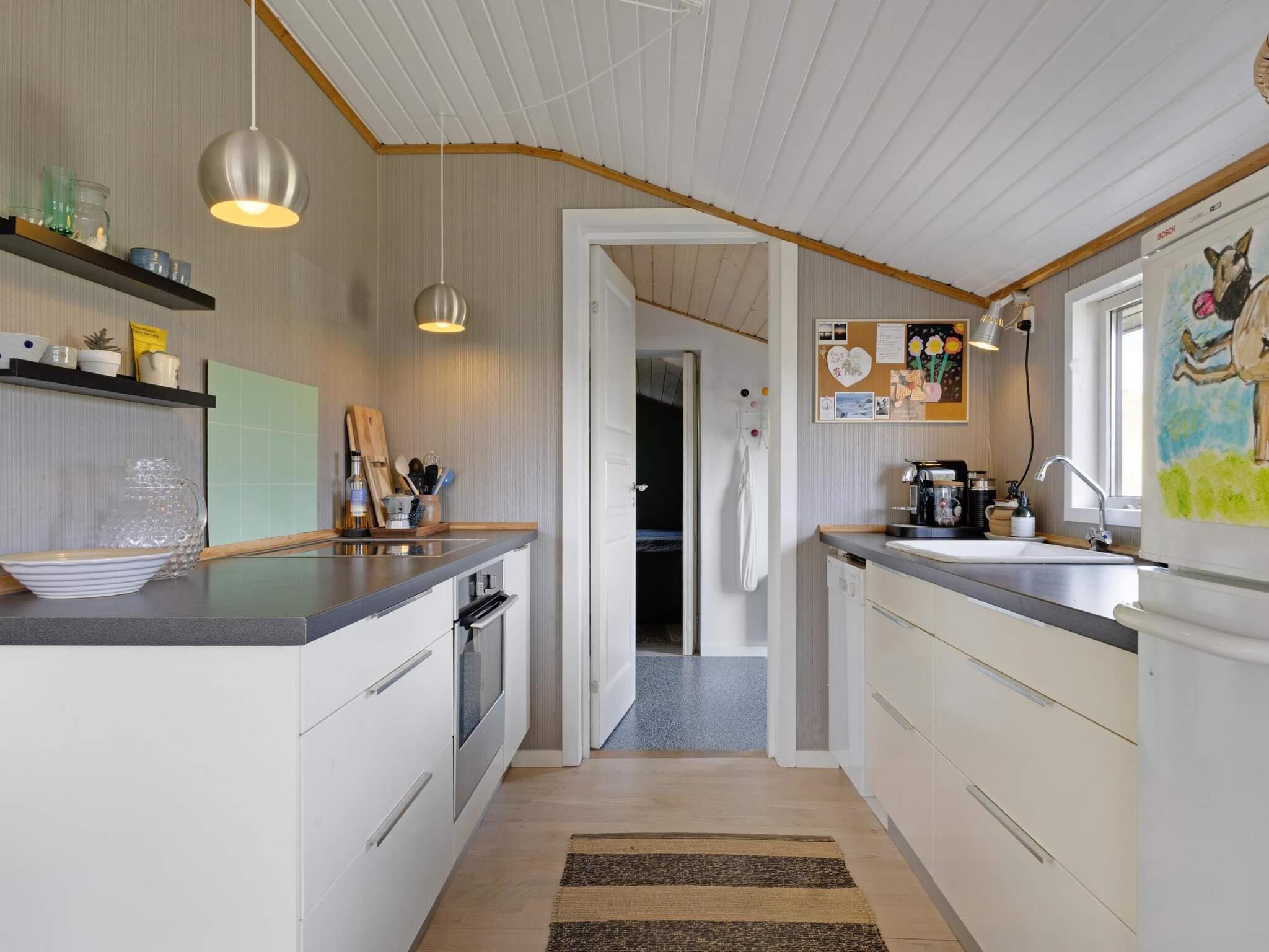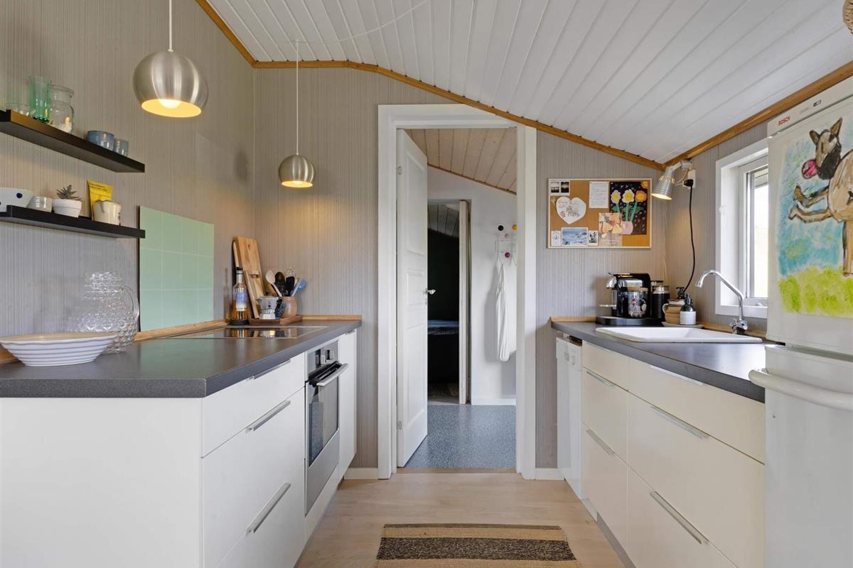 Dieses Ferienhäuschen bietet auf seinen 51 hellen Quadratmetern Platz für bis zu 5 Personen. Das Haus ist traditionell eingerichtet und verfügt über zwei Schlafzimmer, ein Badezimmer, ein schönes Wohnzimmer in offener Verbindung mit der Küche und eine überdachte Terrasse, auf der Sie die malerische Umgebung genießen können. Es gibt reichlich Gelegenheit über den Weg, der am Haus entlangführt, einen kurzen Ausflug zum Strand zu machen und sich anschließend am Holzofen aufzuwärmen. Sie können am Haus parken, das am Ende einer ruhigen Sackgasse liegt. Der Stil des Hauses bietet klassischen dänischen Ferienhauskomfort mit reichlich Möglichkeiten, den Urlaub sowohl draußen als auch drinnen zu genießen.