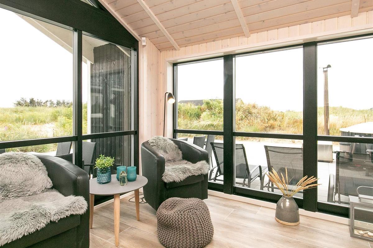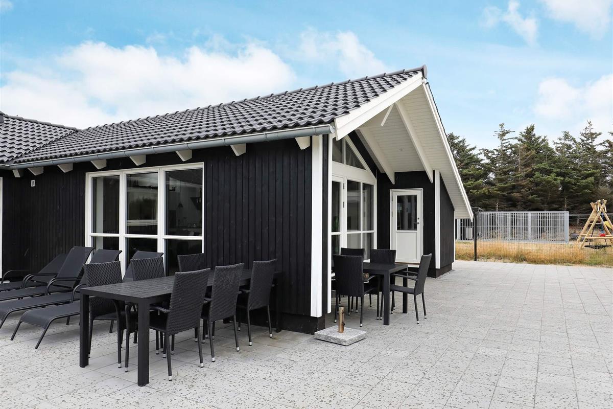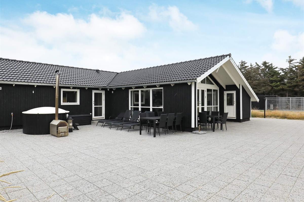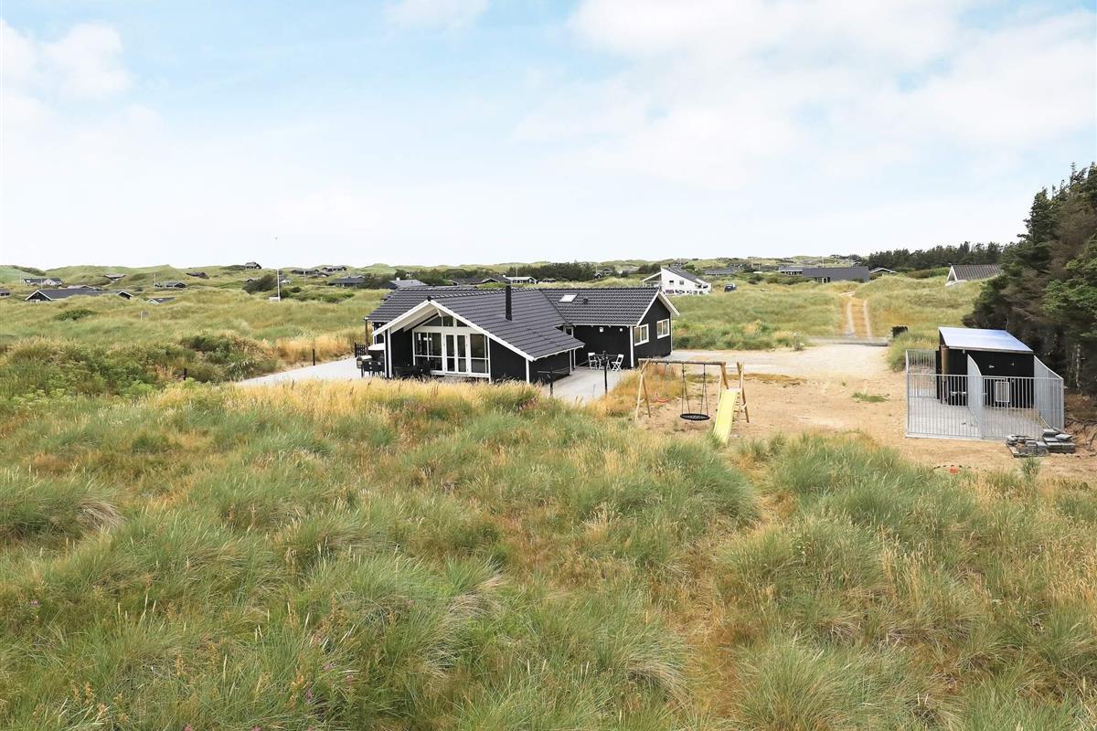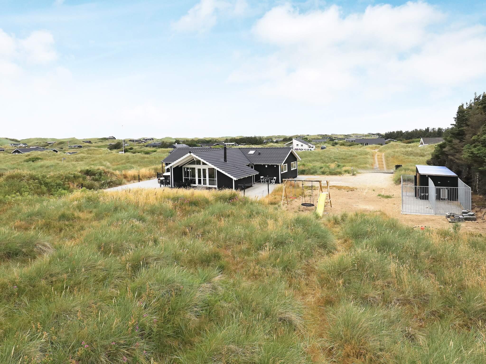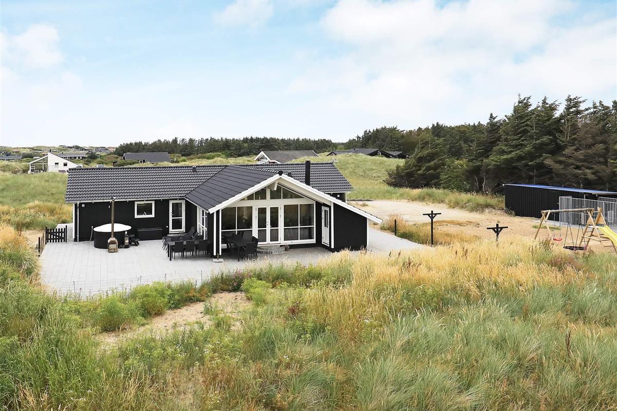 Modernes Ferienhaus mit Aktivitätsraum und Whirlpool innen und außen, auf einem großen Dünengrundstück in landschaftlich attraktiver Umgebung gelegen. Von Haus und Terrasse bietet sich ein schöner, weiter Blick auf die Dünenlandschaft.