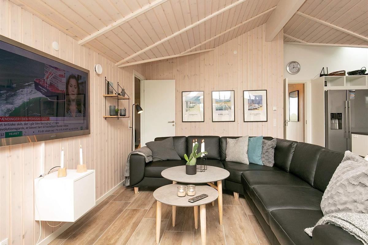 Das Haus beinhaltet einen Küchen-Ess-Wohnbereich, vier Schlafzimmer, einen Alkoven, ein Aktivitätsraum und zwei Badezimmer, eines davon mit Sauna und Whirlpool. Die Einrichtung ist modern und gediegen, es wurden qualitativ hochwertige Materialien eingesetzt und alles ist farblich aufeinander abgestimmt. Der amerikanische Kühlschrank liefert Eiswürfel für den Urlaubsdrink.