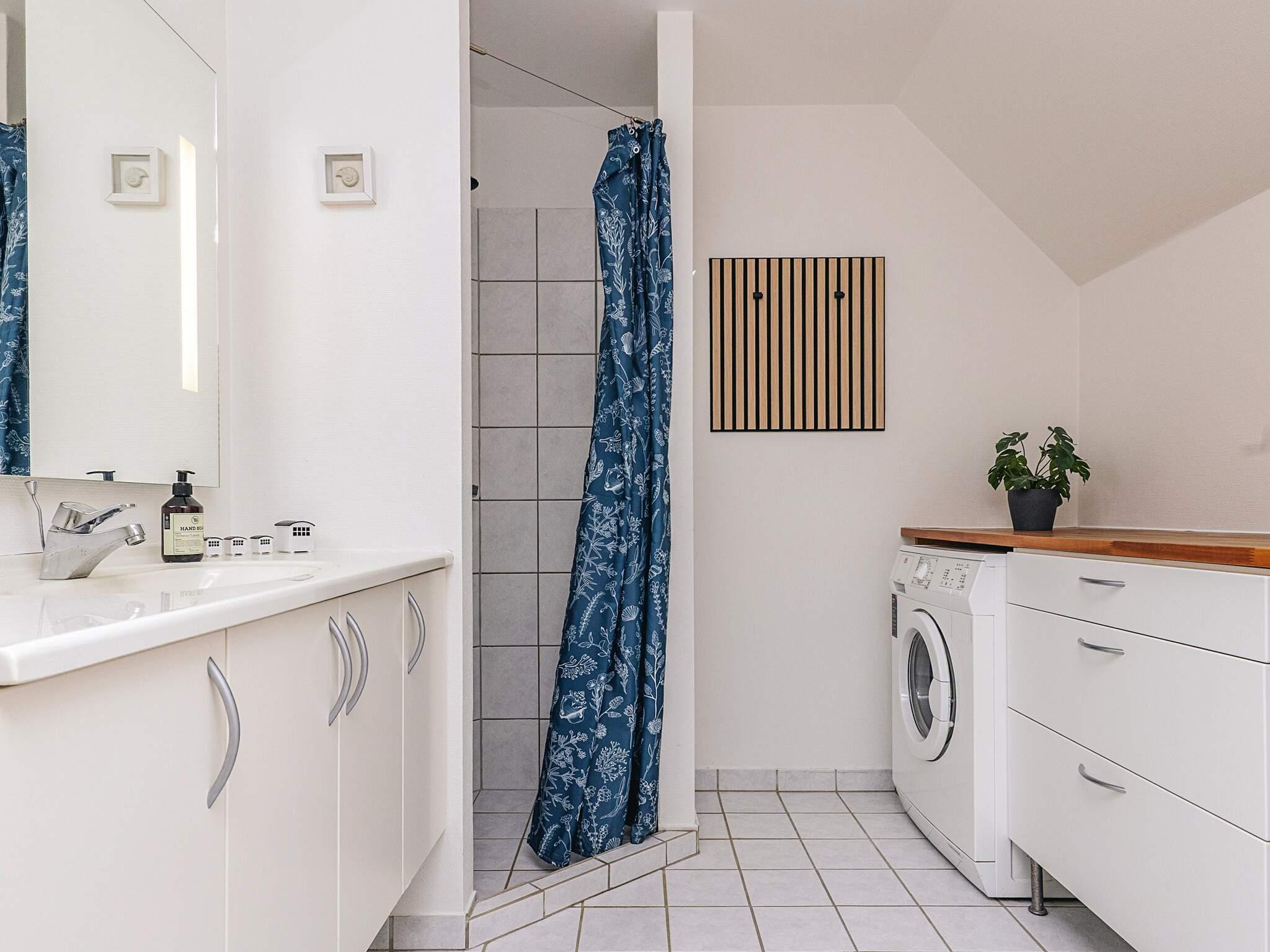 Es gibt ein Badezimmer mit Dusche und WC sowie Fußbodenheizung im Badezimmer.
