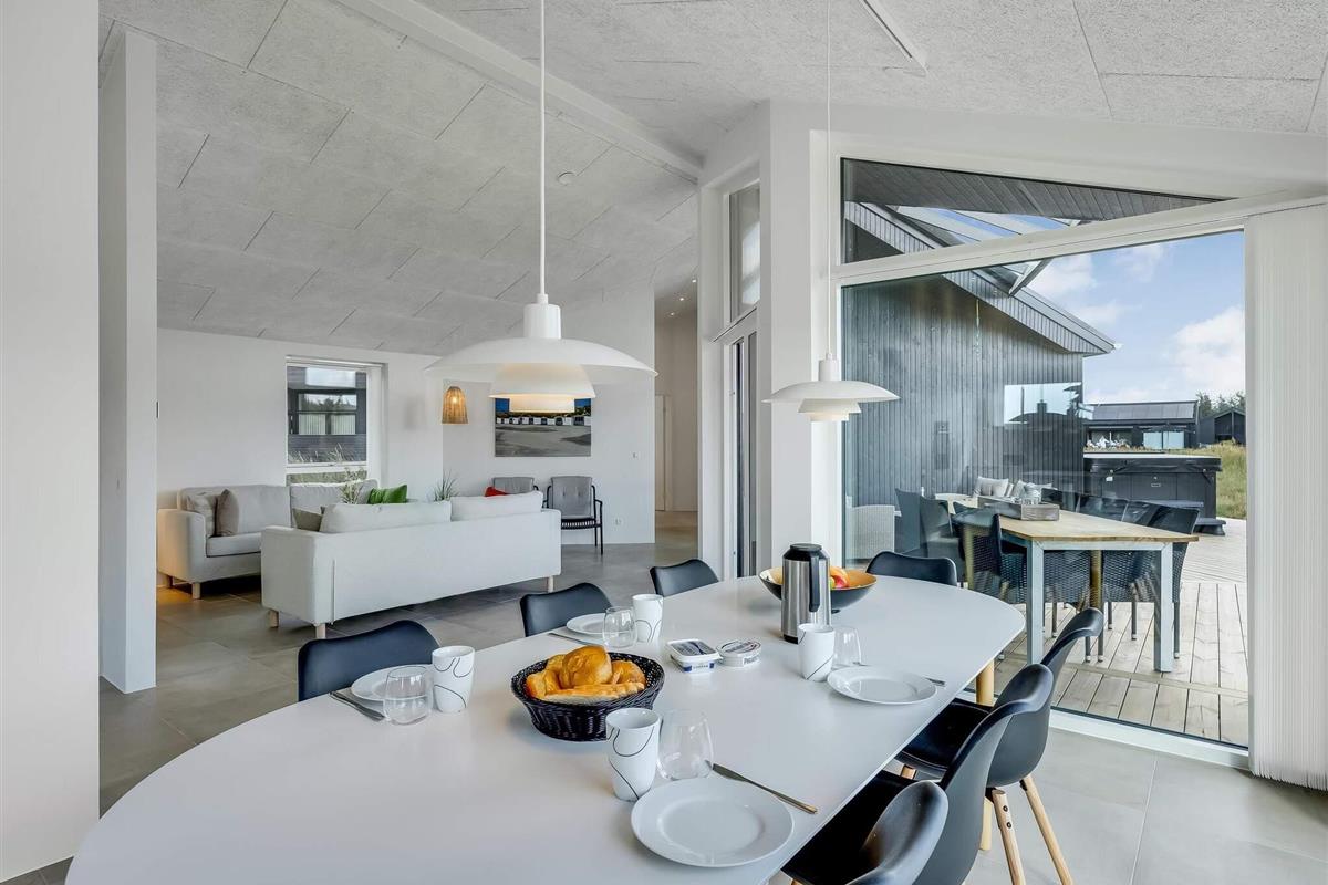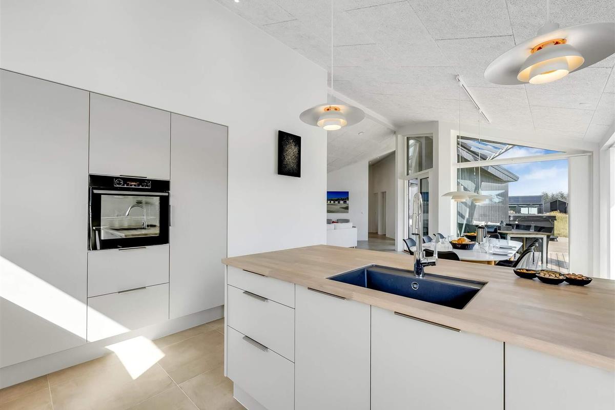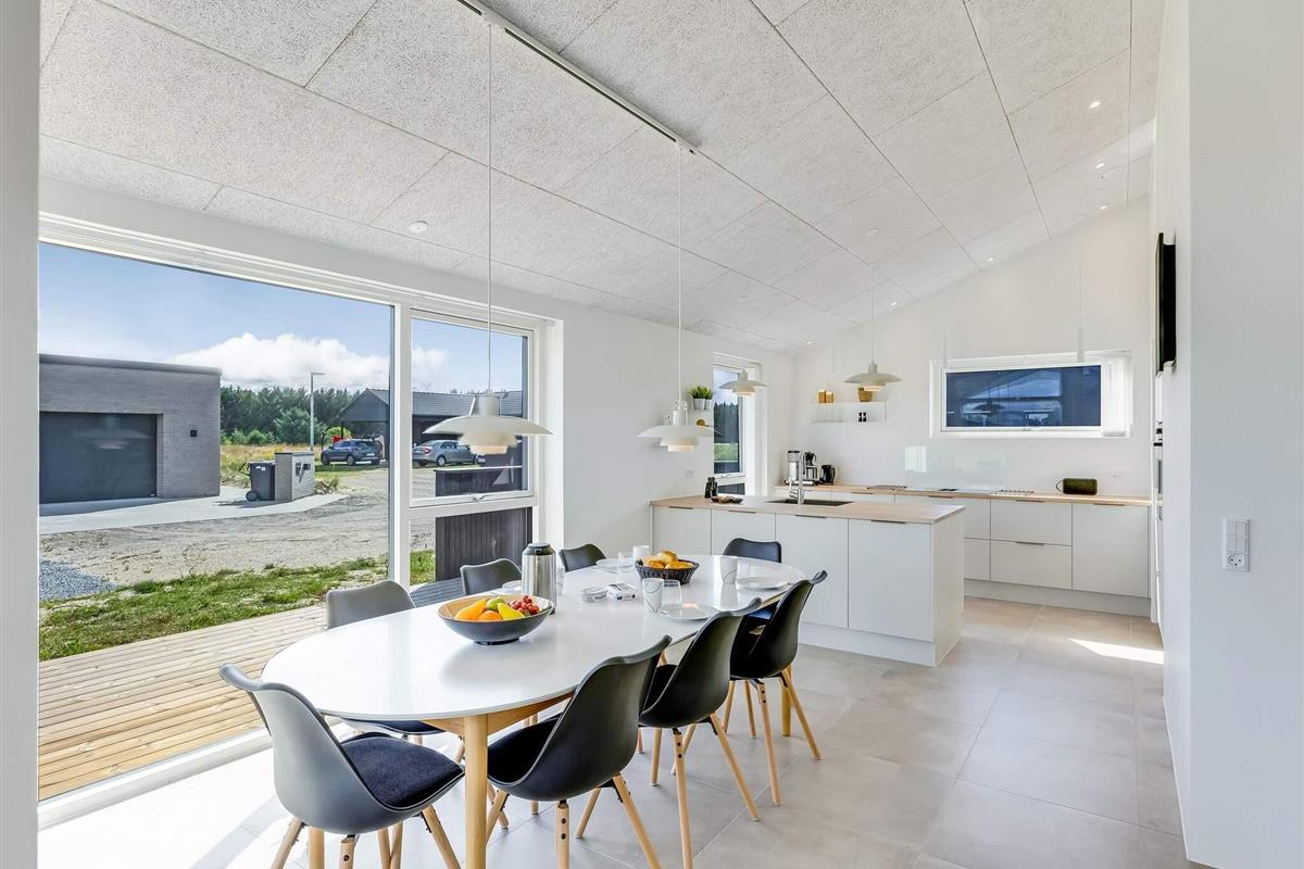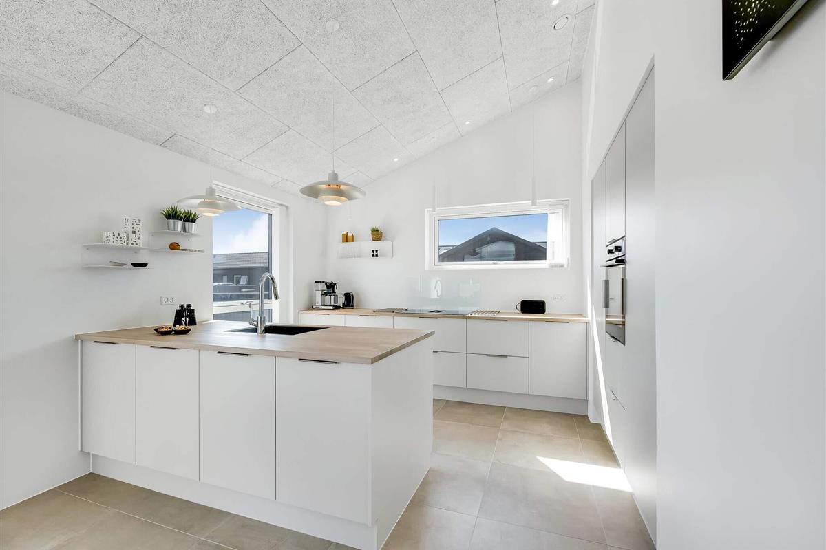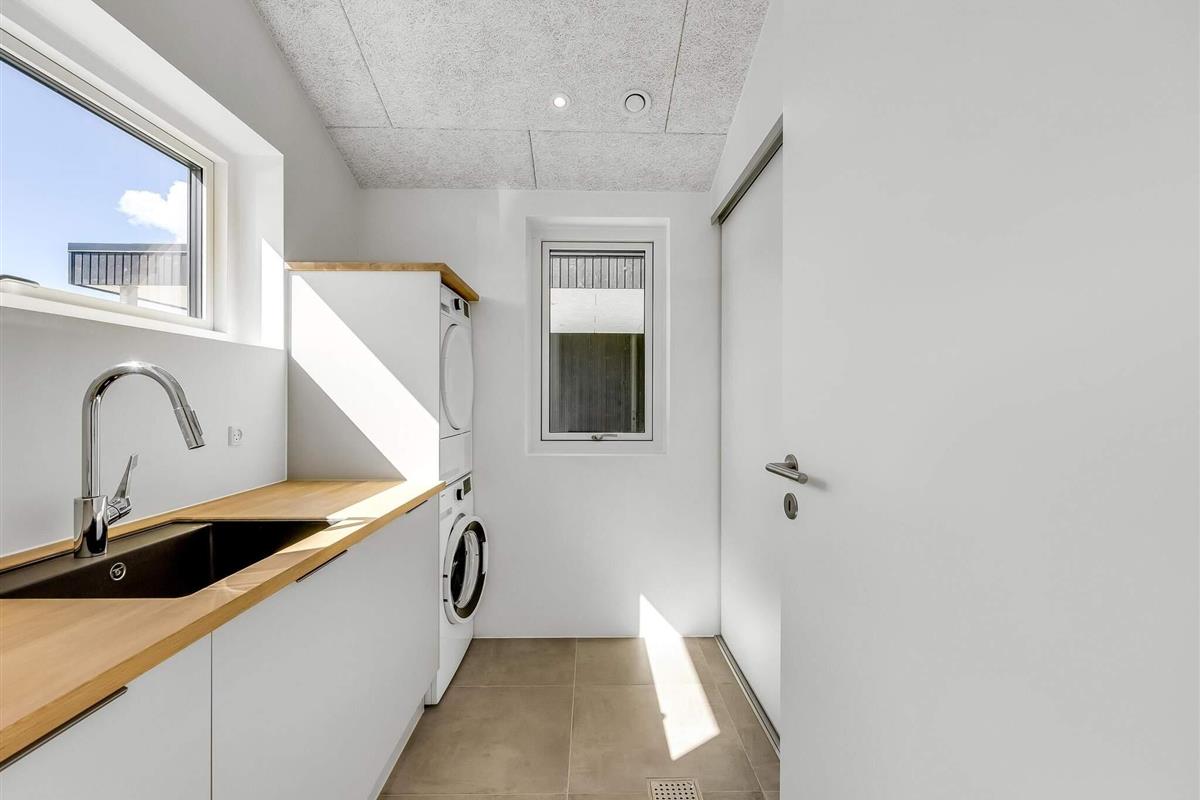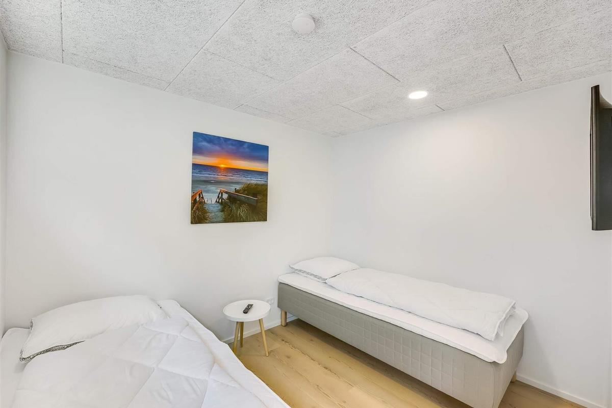 Hovedhuset har plads til 6 personer, og i det hyggelige anneks er der yderligere 2 sovepladser samt eget bad – i alt 8 sengepladser fordelt på 3 dobbeltsenge og 2 enkeltsenge. Her får du en bolig med et flot, åbent køkken-alrum i forlængelse af stuen, hvor indretningen er lys og gennemtænkt. Badeværelserne er rummelige og stilfulde, og ved indgangen ligger et praktisk bryggers. Selvom huset ligger i et nybyggerkvarter, er det velplaceret med fokus på privatliv.