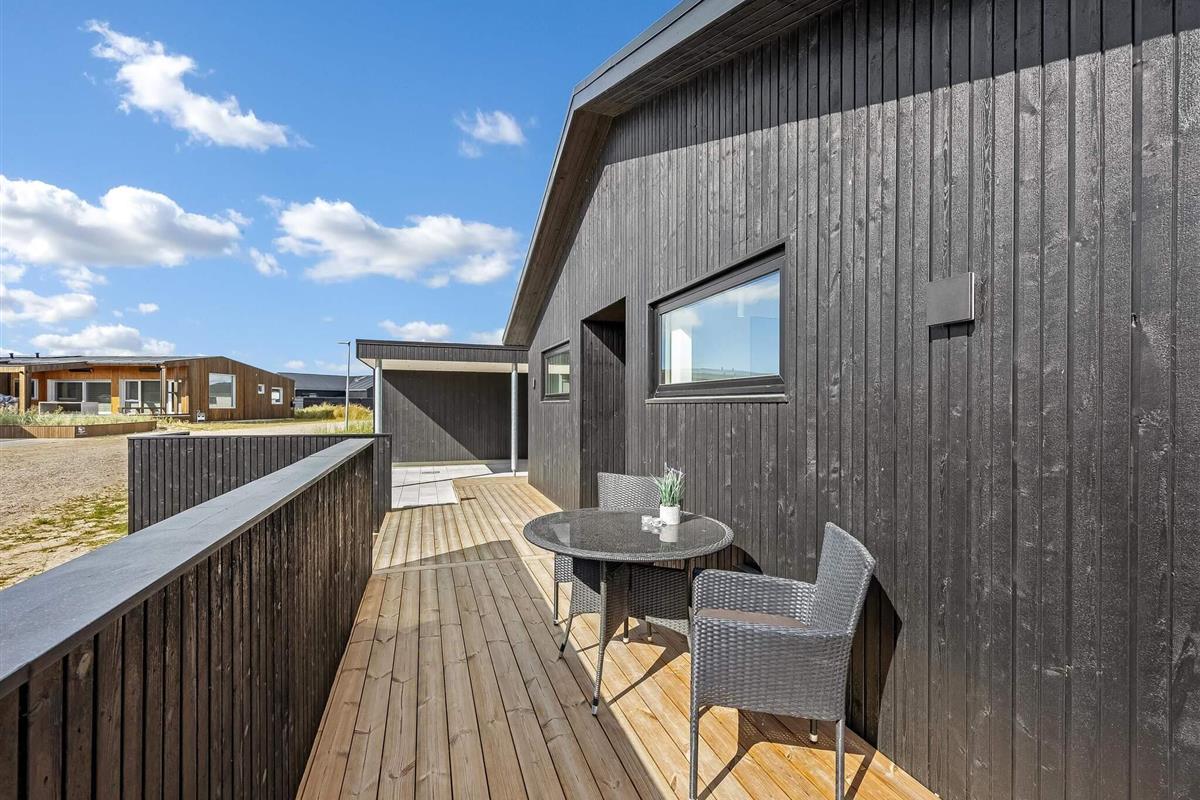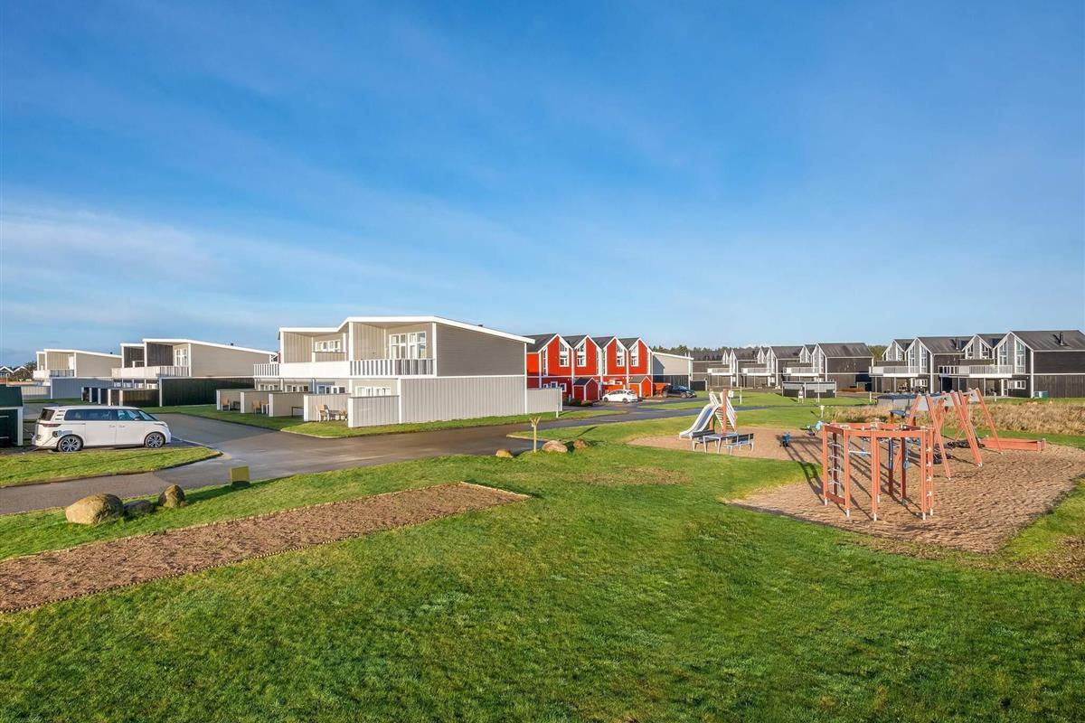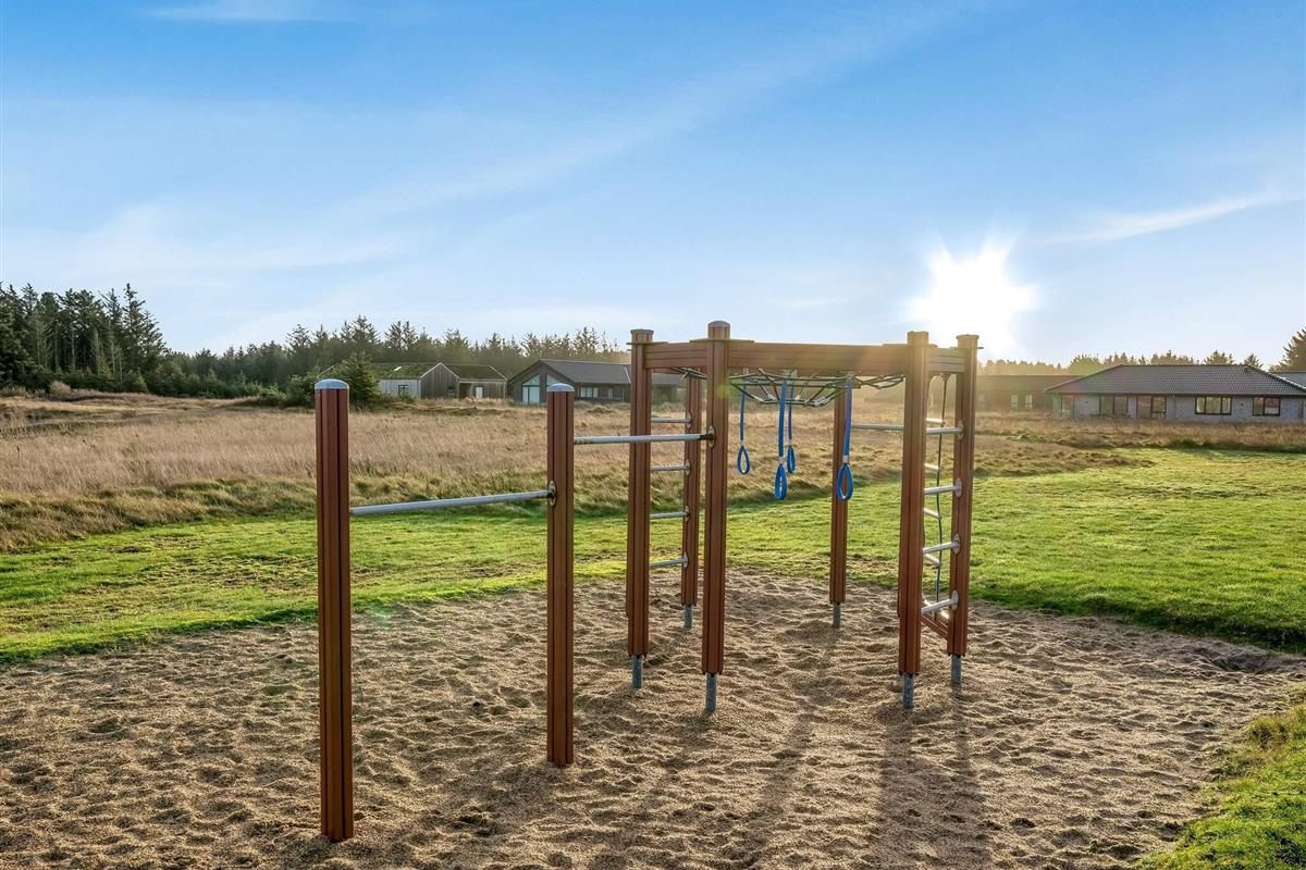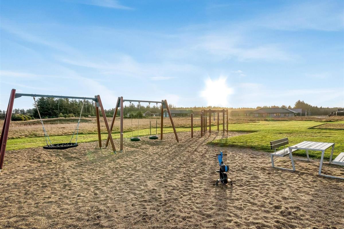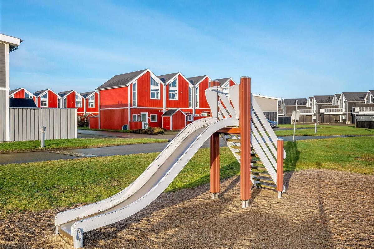 Haven og terrassen inviterer til både afslapning og aktivitet – uanset tidspunktet på dagen. Med flere terrasser, herunder en overdækket del, er det let at finde læ og sol. Der er god plads til leg og hygge, og fra huset er der kort afstand til både strand, by og indkøb – alt ligger inden for cirka en kilometer.